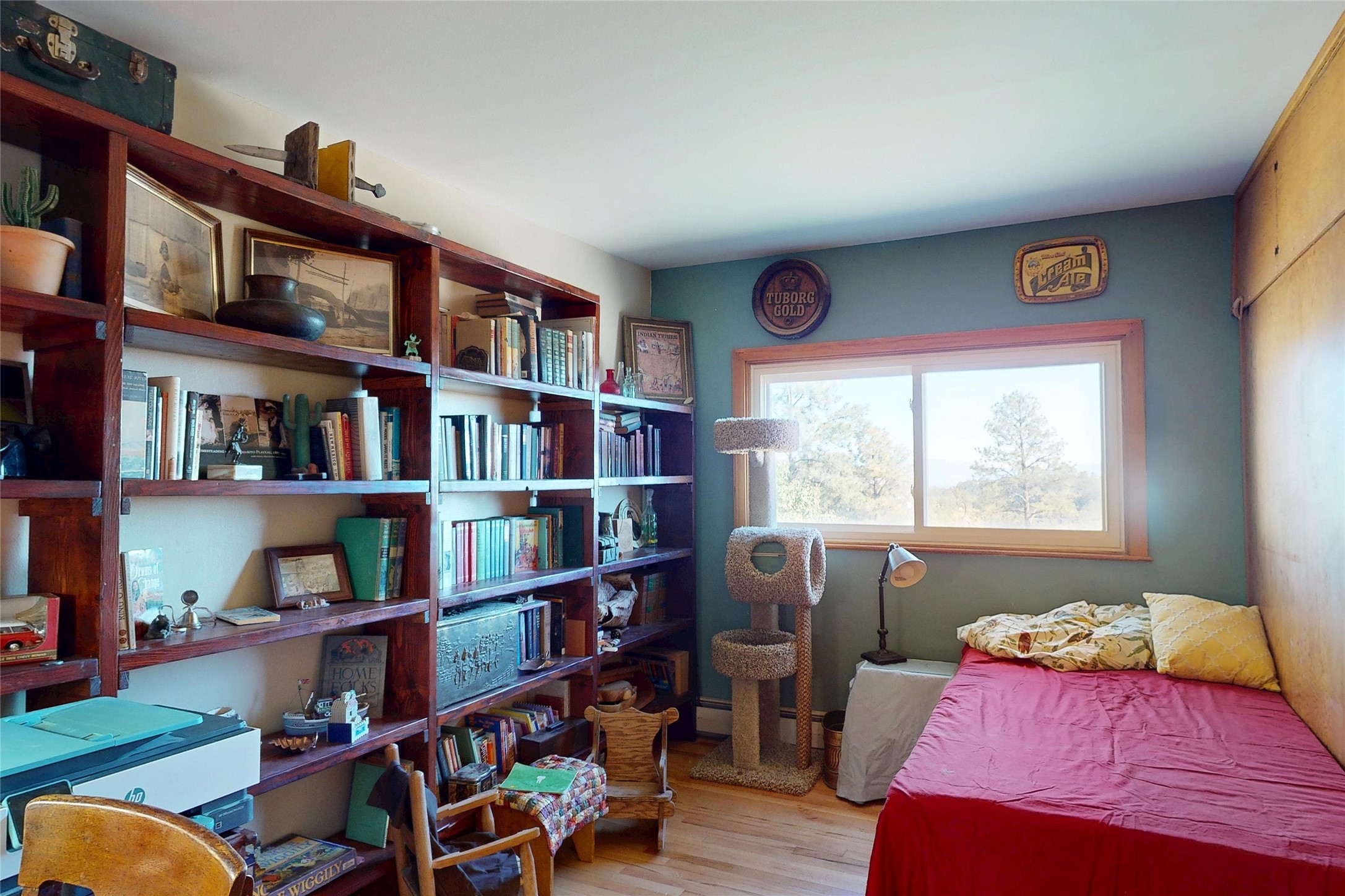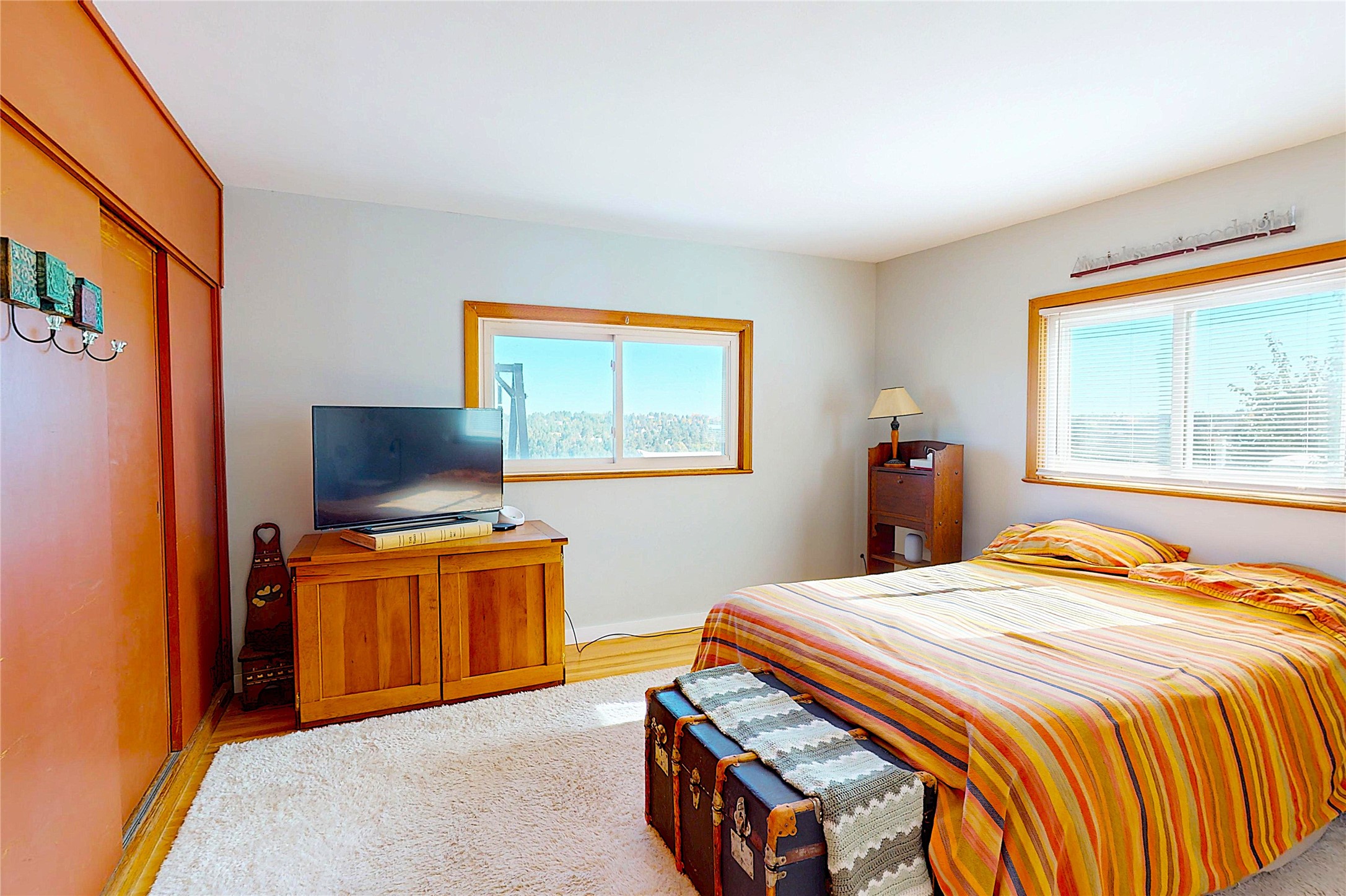 Charming Single-Story with Views and Spacious Backyard! This delightful 3-bedroom, 1-bath home combines comfort, functionality, and scenic beauty. Located near the end of a quiet street, it offers peaceful surroundings and sweeping views of Los Alamos, the mountains, and the mesas. Inside, the open floor plan seamlessly connects the living and dining areas, creating a bright, welcoming space perfect for everyday living or entertaining. The updated kitchen features rich wood cabinetry, walnut butcherblock countertops, modern appliances, and abundant storage--including a pantry and an extra freezer conveniently located just off the kitchen near the laundry. The track lighting in the kitchen provides ambient lighting while undercounter lights brighten work areas and pendent lights provide additional style. Large windows fill the home with natural light and frame stunning views of the surrounding landscape, while beautiful hardwood floors add warmth and character throughout the home. Outside, the expansive lot offers endless opportunities for outdoor living, gardening, and play. The spacious backyard and wooden deck provide the perfect spots to relax, dine al fresco, or take in the breathtaking New Mexico sunrises. A sprinkler and drip system with rain delay keeps the landscaping easy to maintain, and a 30-amp circuit offers power for an RV. With easy access to hiking trails, schools, LANL, and LAMC, this home offers the ideal blend of Los Alamos tranquility and everyday practicality. Schedule your showing today!