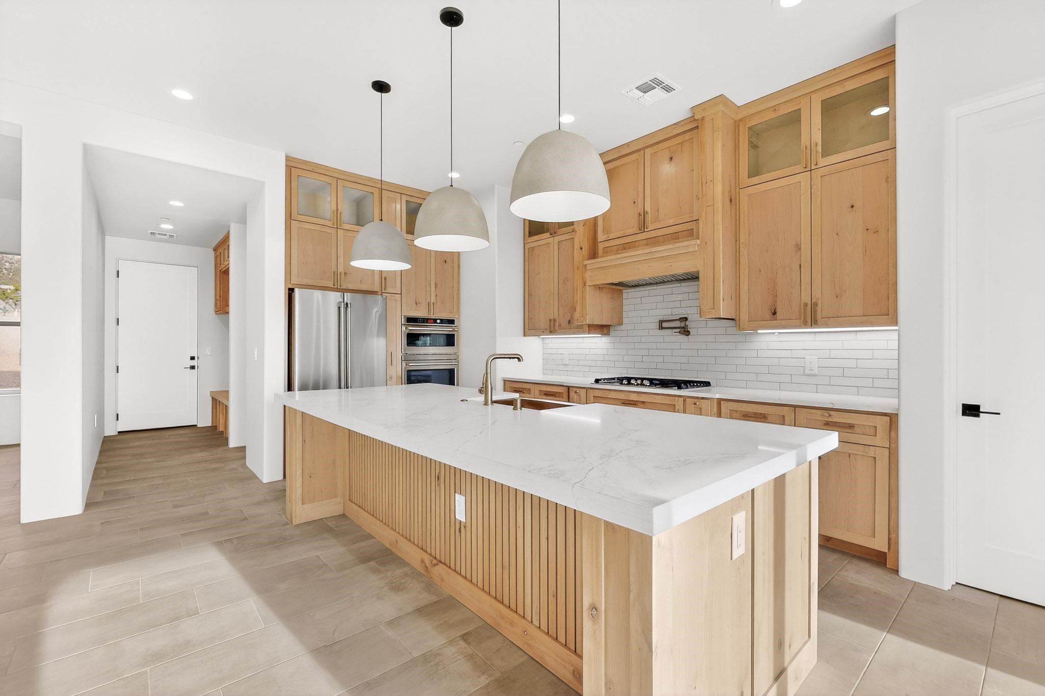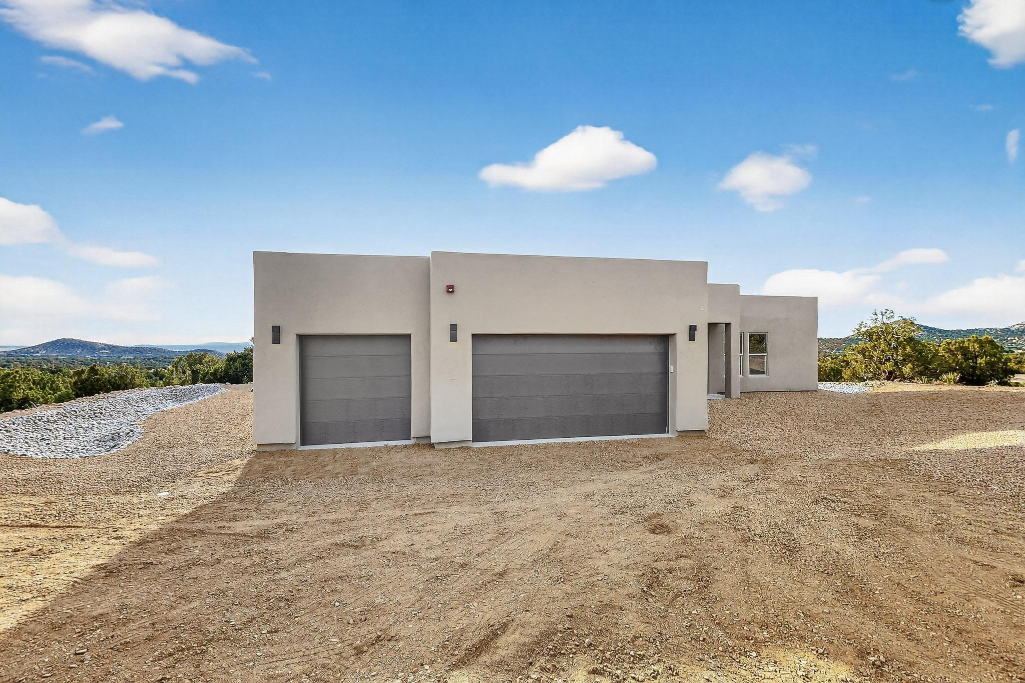 New Construction. Located in the exclusive Longview gated community, this 3-bedroom, 3-bath home with a 3-car garage offers breathtaking views of the Sandia and Galisteo Basin. Thoughtfully designed with two primary suites plus an office, the home features custom cabinetry, a walk-in pantry, and light-filled open living spaces. Enjoy seamless indoor-outdoor living, a spacious three-car garage, and the tranquility of one of Santa Fe's most sought-after settings. Owner/Broker.