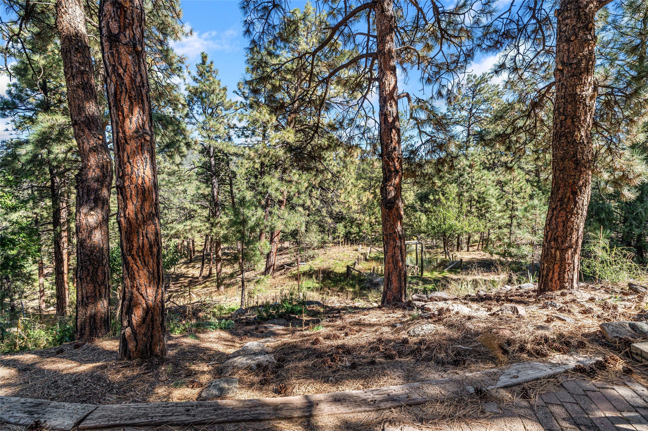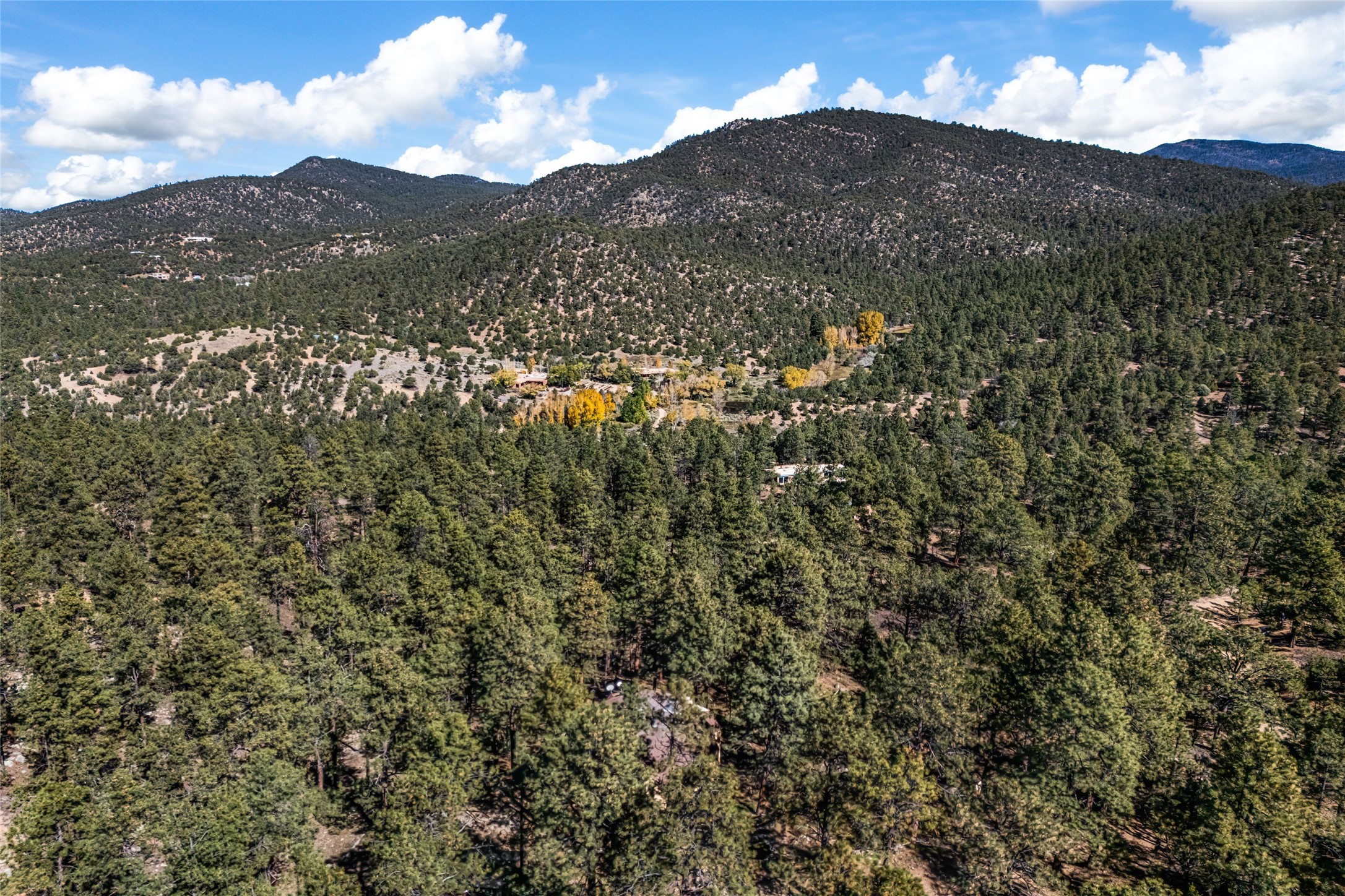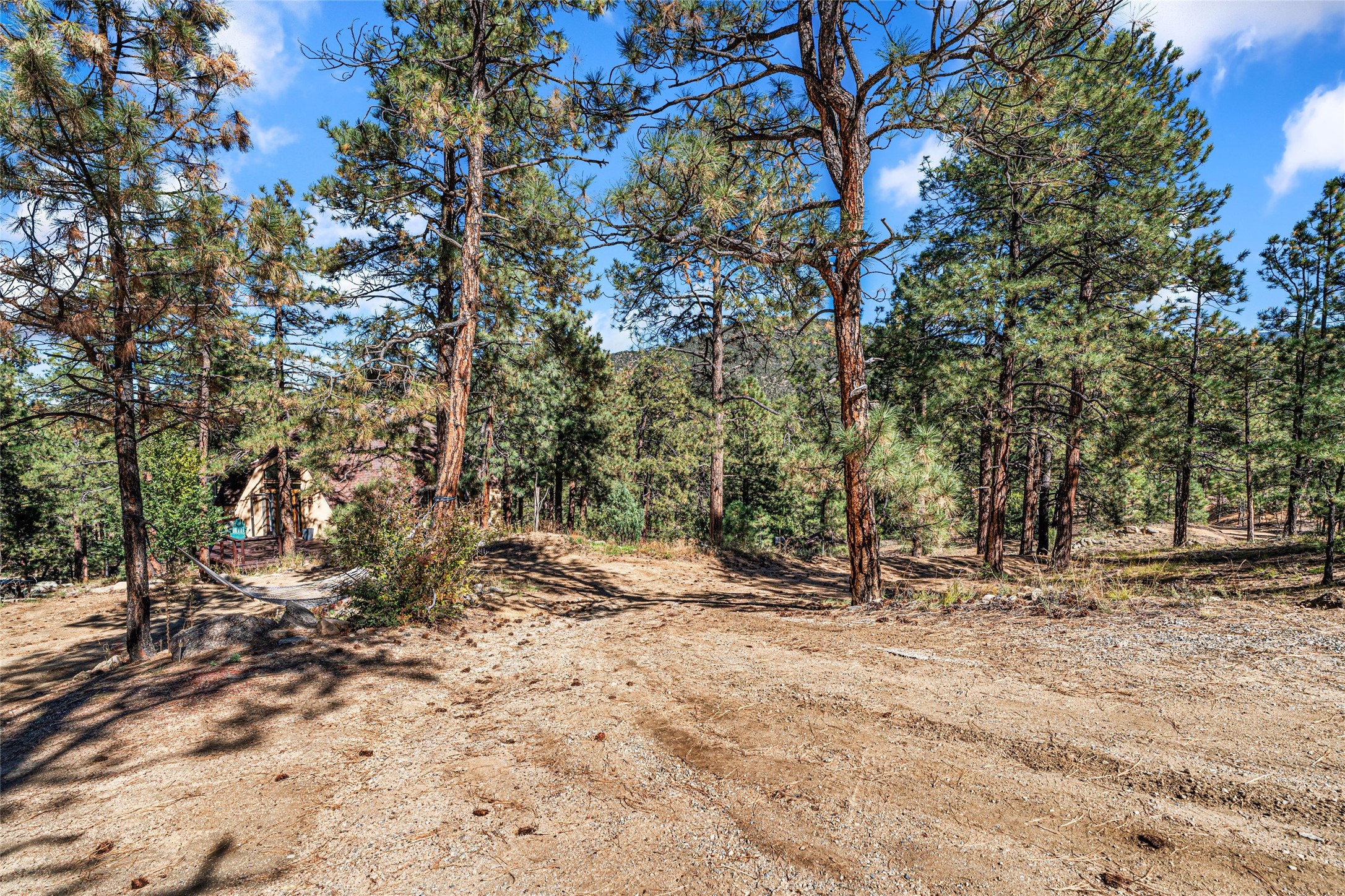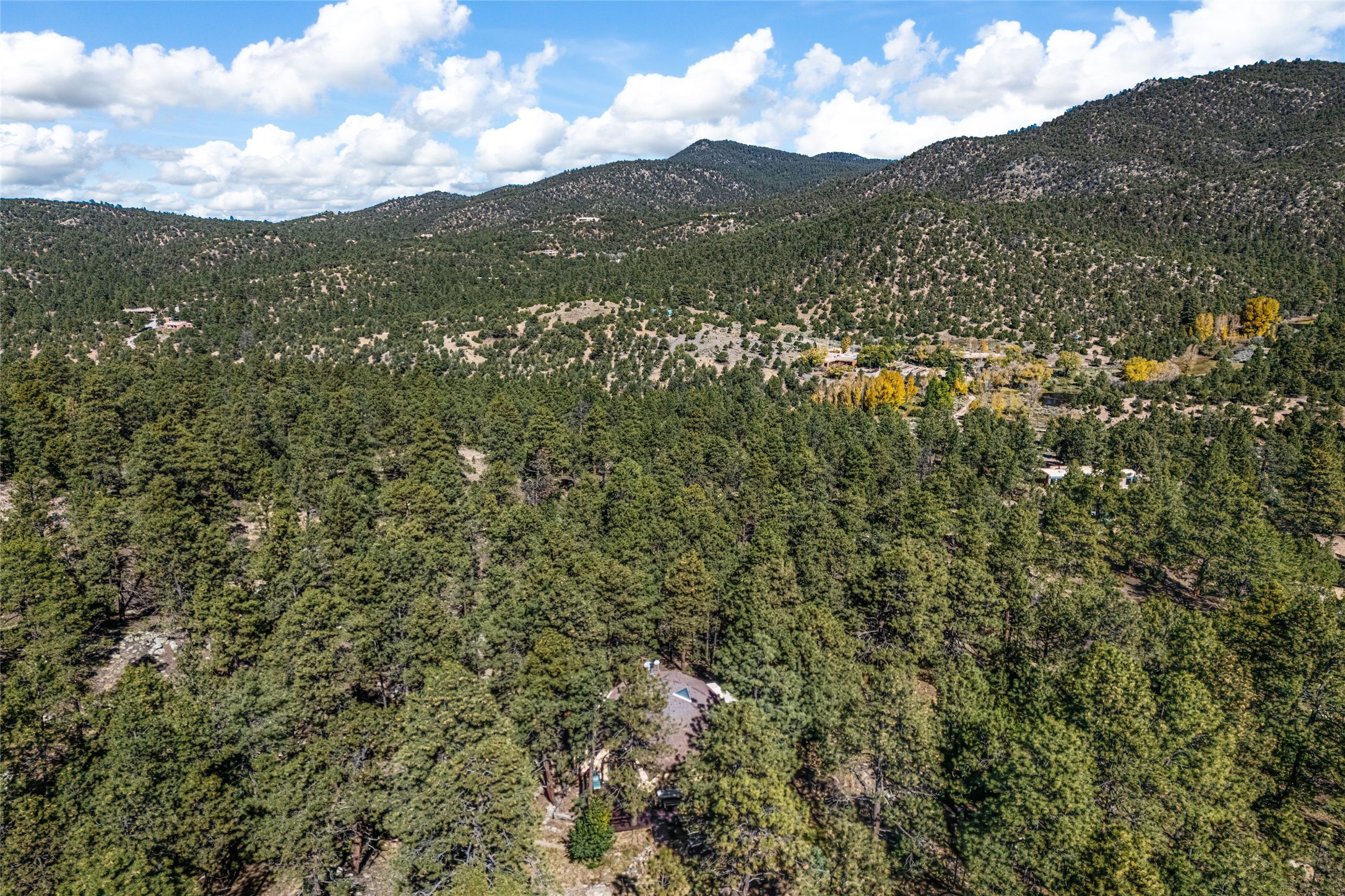 This mountain residence is located in a splendid setting on 2.7 forested acres in the tall pines off Old Santa Fe Trail. The three-level home offers a main house and guest house under the same roof and connected by a stairway internally, so it can be used as a single home or house and guest house. The main level consists of the living, kitchen, and dining rooms, primary bedroom, and bathroom. There are two enjoyable decks - a very large deck off the living room and another off the dining room. The upper level has two bedrooms, a sitting area, and bathroom. The lower lever is the two-bedroom, two-bath guest house with an open-concept living/kitchen/dining area, and which also has another wonderful large deck. The outdoor living is delightful! The topography is gentle, affording a great deal of usable land. Experience a beautiful mountain lifestyle only minutes from the Plaza.