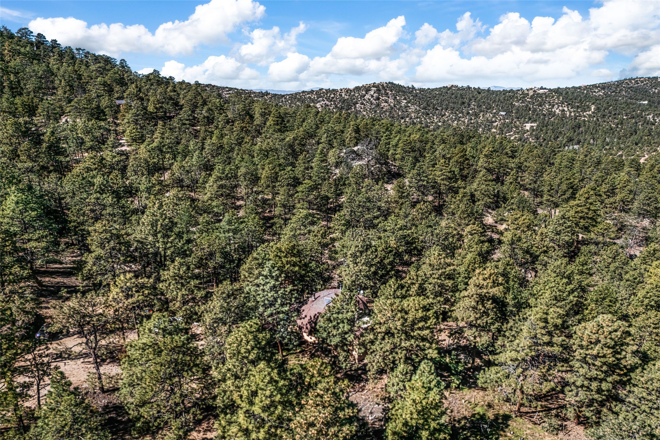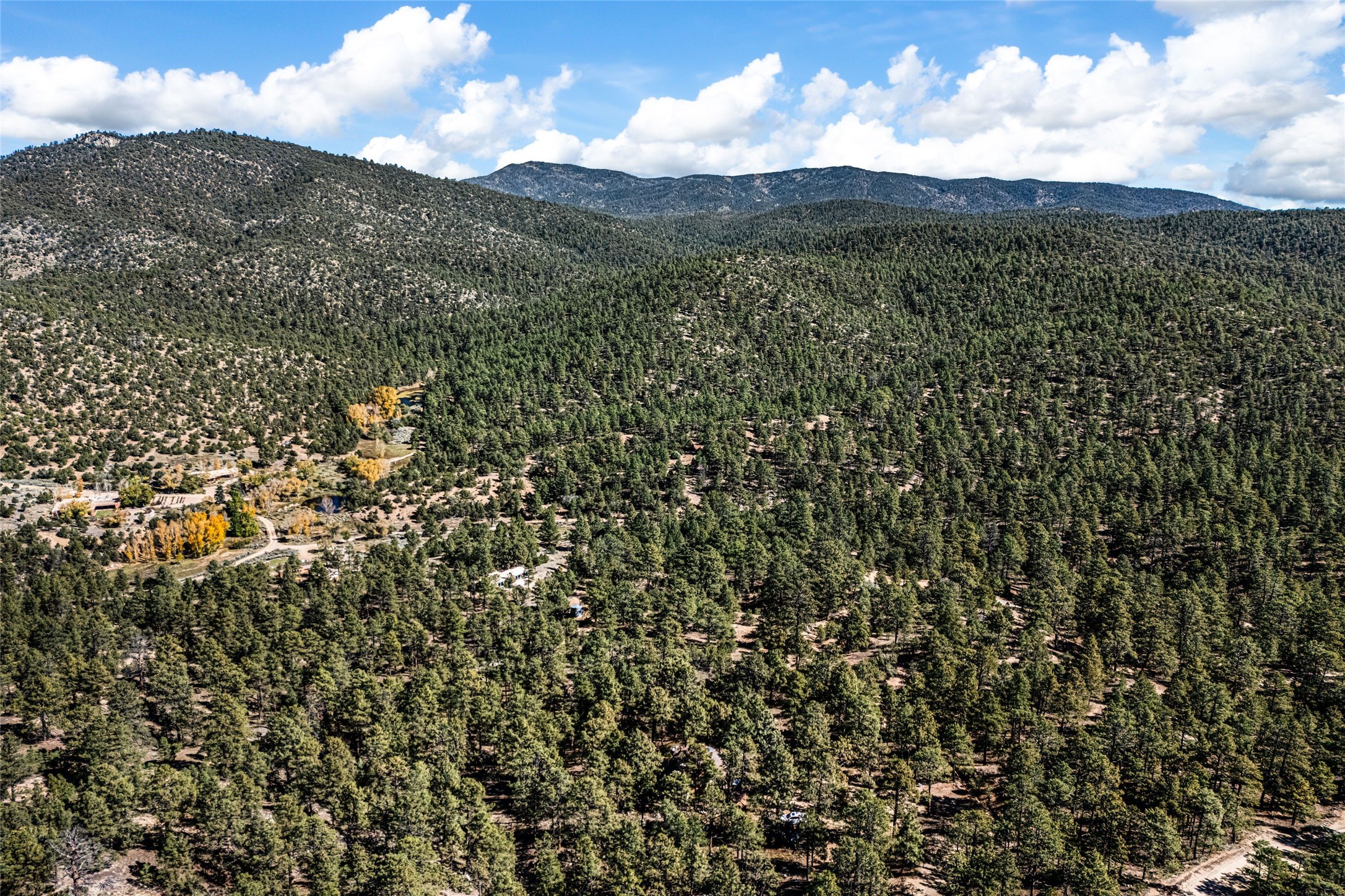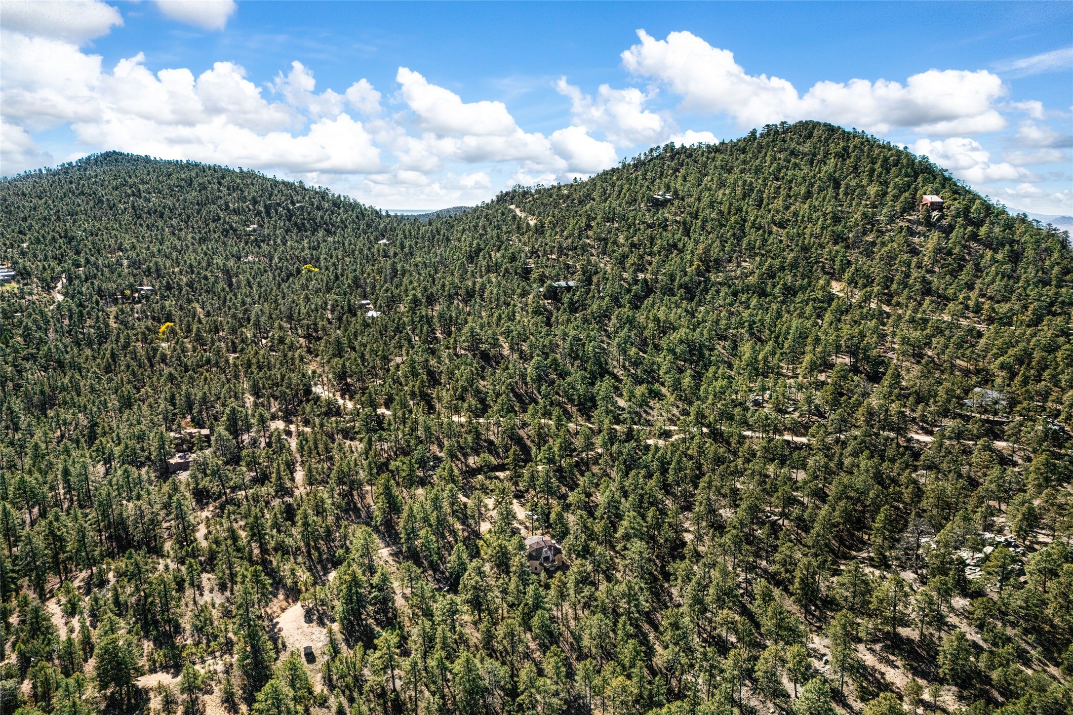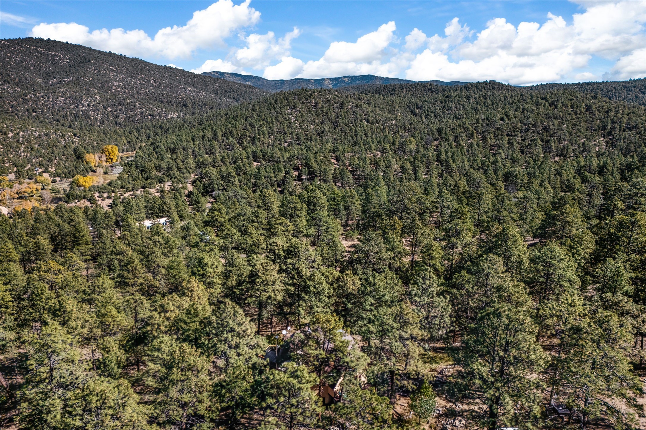 This mountain residence is located in a splendid setting on 2.7 forested acres in the tall pines off Old Santa Fe Trail. The three-level home offers a main house and guest house under the same roof and connected by a stairway internally, so it can be used as a single home or house and guest house. The main level consists of the living, kitchen, and dining rooms, primary bedroom, and bathroom. There are two enjoyable decks - a very large deck off the living room and another off the dining room. The upper level has two bedrooms, a sitting area, and bathroom. The lower lever is the two-bedroom, two-bath guest house with an open-concept living/kitchen/dining area, and which also has another wonderful large deck. The outdoor living is delightful! The topography is gentle, affording a great deal of usable land. Experience a beautiful mountain lifestyle only minutes from the Plaza.