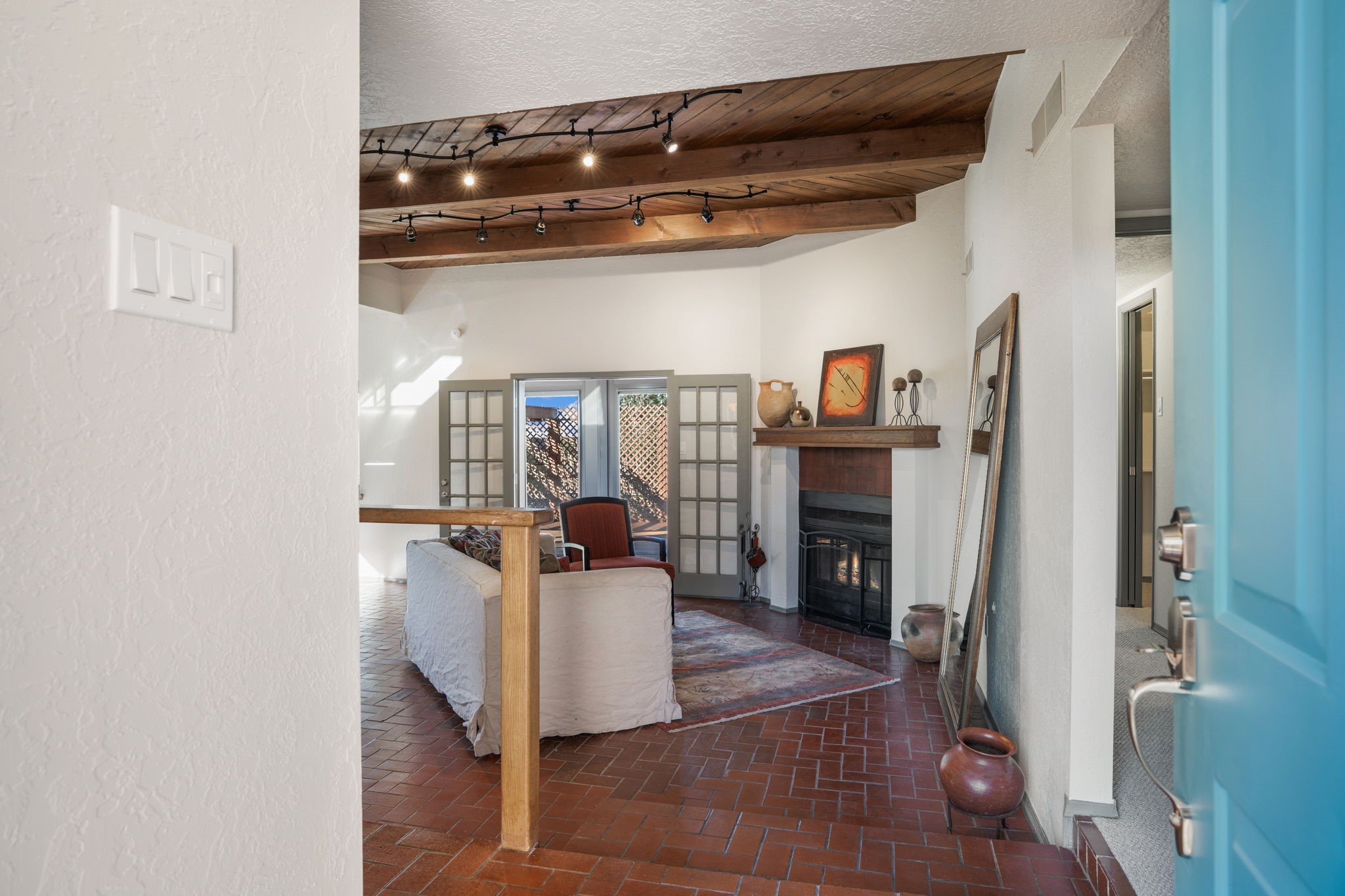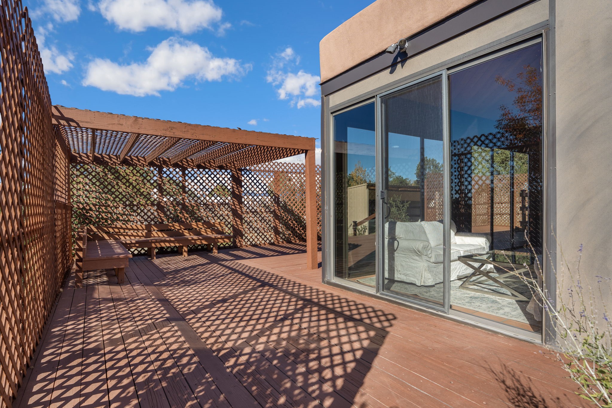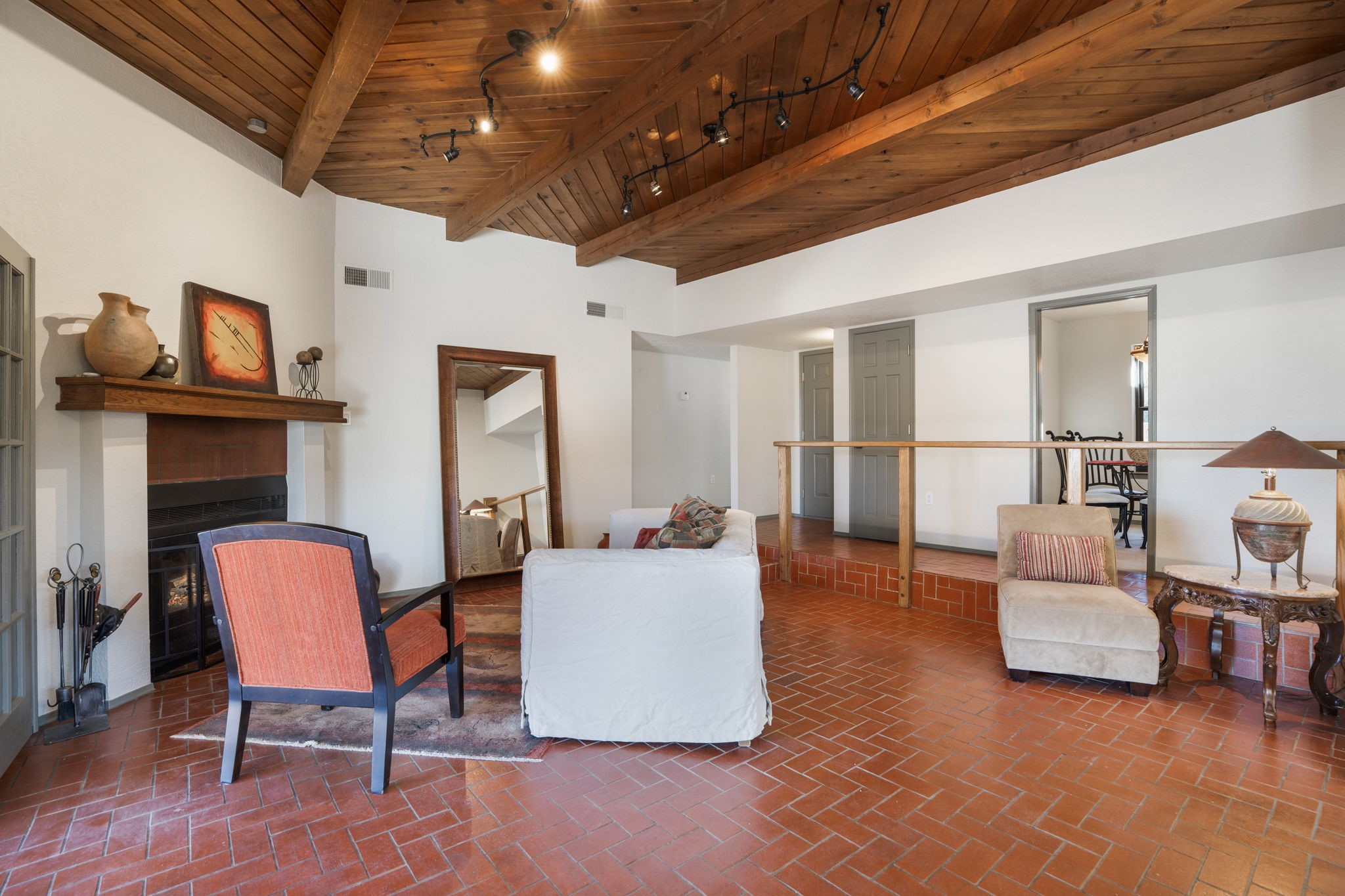An exceptional opportunity awaits in one of Santa Fe's most cherished communities, DeVargas Heights. The floor plan is both practical and elegant with the separate dining room off the updated Kitchen, including new granite countertops. The inviting living area features a warm wood-beamed ceiling and a charming fireplace, setting a distinctly Santa Fe tone. Three bedrooms and two fully renovated bathrooms offer a blend of modern luxury and neighborhood charm.Enjoy year-round light in the large sunroom that provides a seamless transition to an expansive wrap-around deck and large backyard. Additional highlights include drivable access to the backyard and a flex room located conveniently off the garage, adaptable to your specific needs Best of all, this tranquil retreat is conveniently located less than 4 miles from the vibrant Santa Fe Plaza.