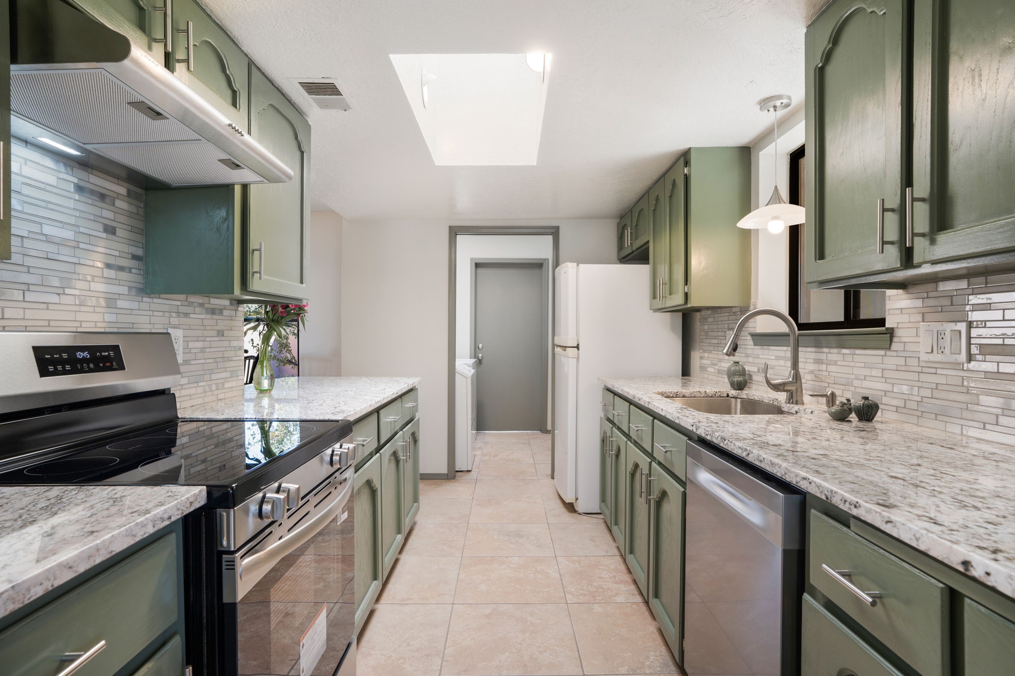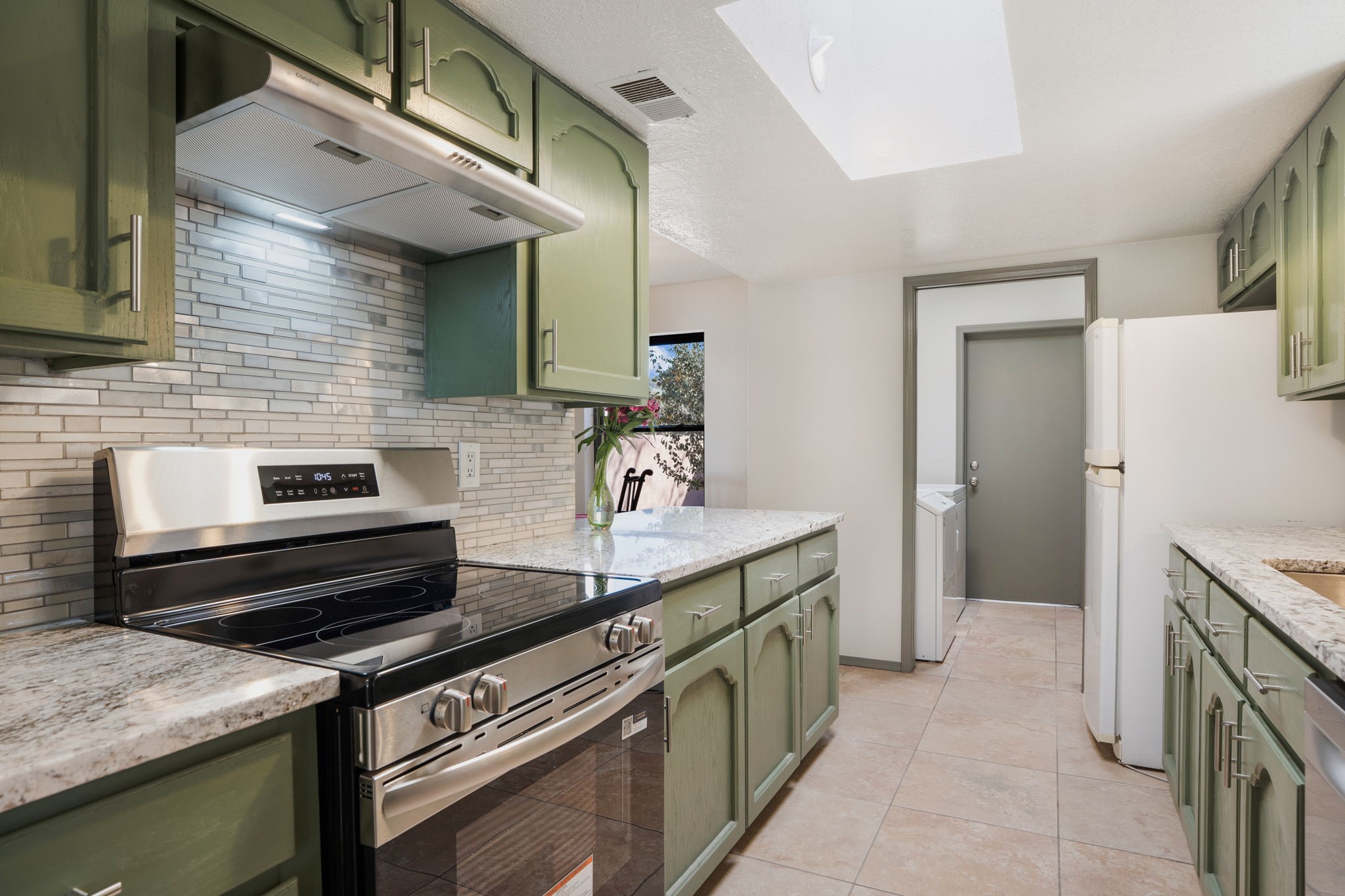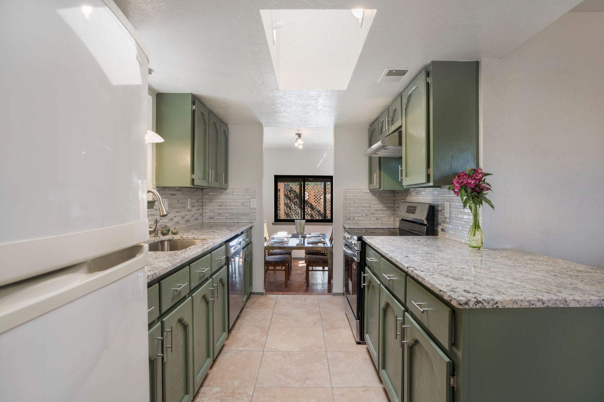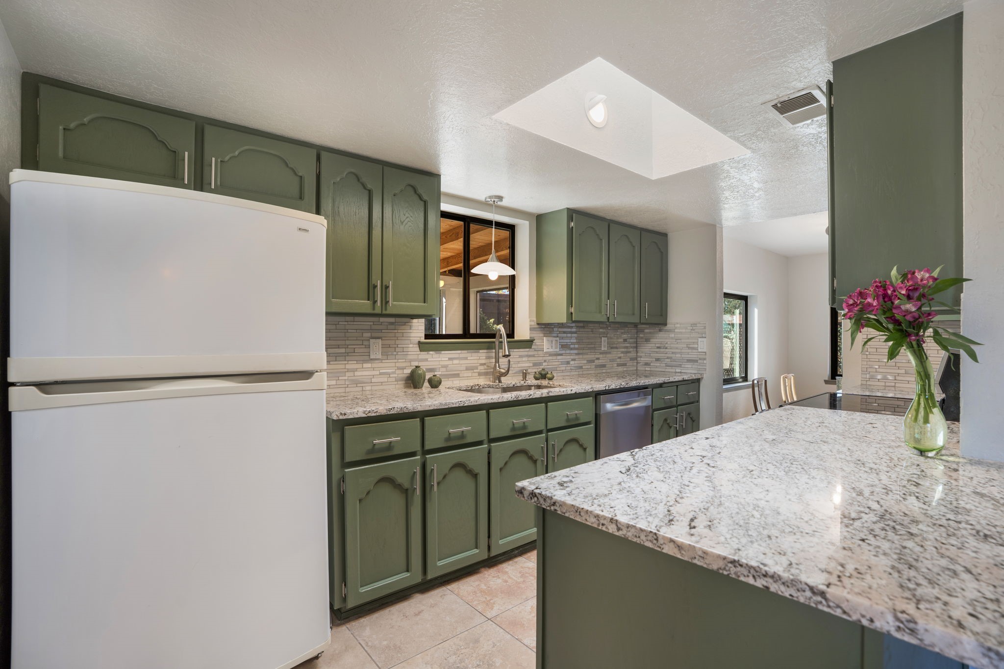An exceptional opportunity awaits in one of Santa Fe's most cherished communities, DeVargas Heights. The floor plan is both practical and elegant with the separate dining room off the updated Kitchen, including new granite countertops. The inviting living area features a warm wood-beamed ceiling and a charming fireplace, setting a distinctly Santa Fe tone. Three bedrooms and two fully renovated bathrooms offer a blend of modern luxury and neighborhood charm.Enjoy year-round light in the large sunroom that provides a seamless transition to an expansive wrap-around deck and large backyard. Additional highlights include drivable access to the backyard and a flex room located conveniently off the garage, adaptable to your specific needs Best of all, this tranquil retreat is conveniently located less than 4 miles from the vibrant Santa Fe Plaza.