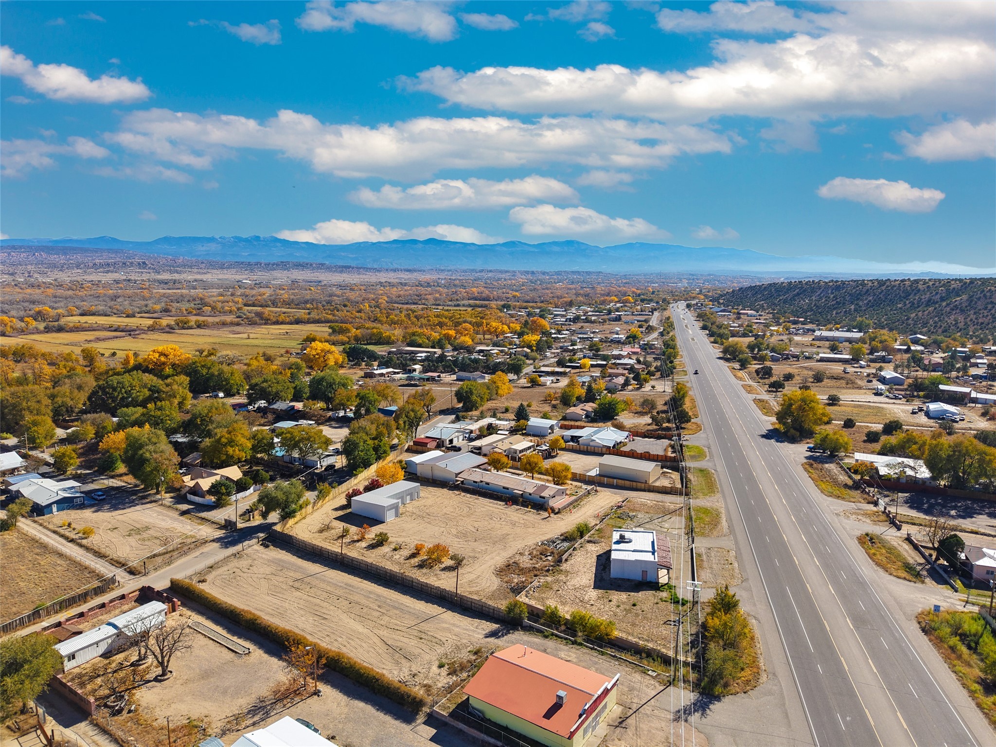 Prime opportunity with excellent visibility along Highway 84/285, just north of Espaola! This 1.22-acre commercial property offers both functionality and potential, featuring a 926 SF main building with an attached garage and roll-up door, in-suite restroom, rolling automatic window shutters, and a fenced parking lot--plus an additional garage and warehouse/storage space located toward the back of the property. With high-traffic frontage and easy highway access, this site is ideal for a variety of business uses, including retail and light commercial. The layout provides ample room for parking, equipment, or future expansion.Whether you're looking to establish a new business location or expand your current operations, this well-positioned commercial property combines visibility, accessibility, and flexibility in one excellent Northern New Mexico location. Bonus Opportunity: The residential property next door is also for sale (MLS #202504907), offering potential for a live/work setup or an expansion of your business footprint. New Septic System installed Summer 2025.