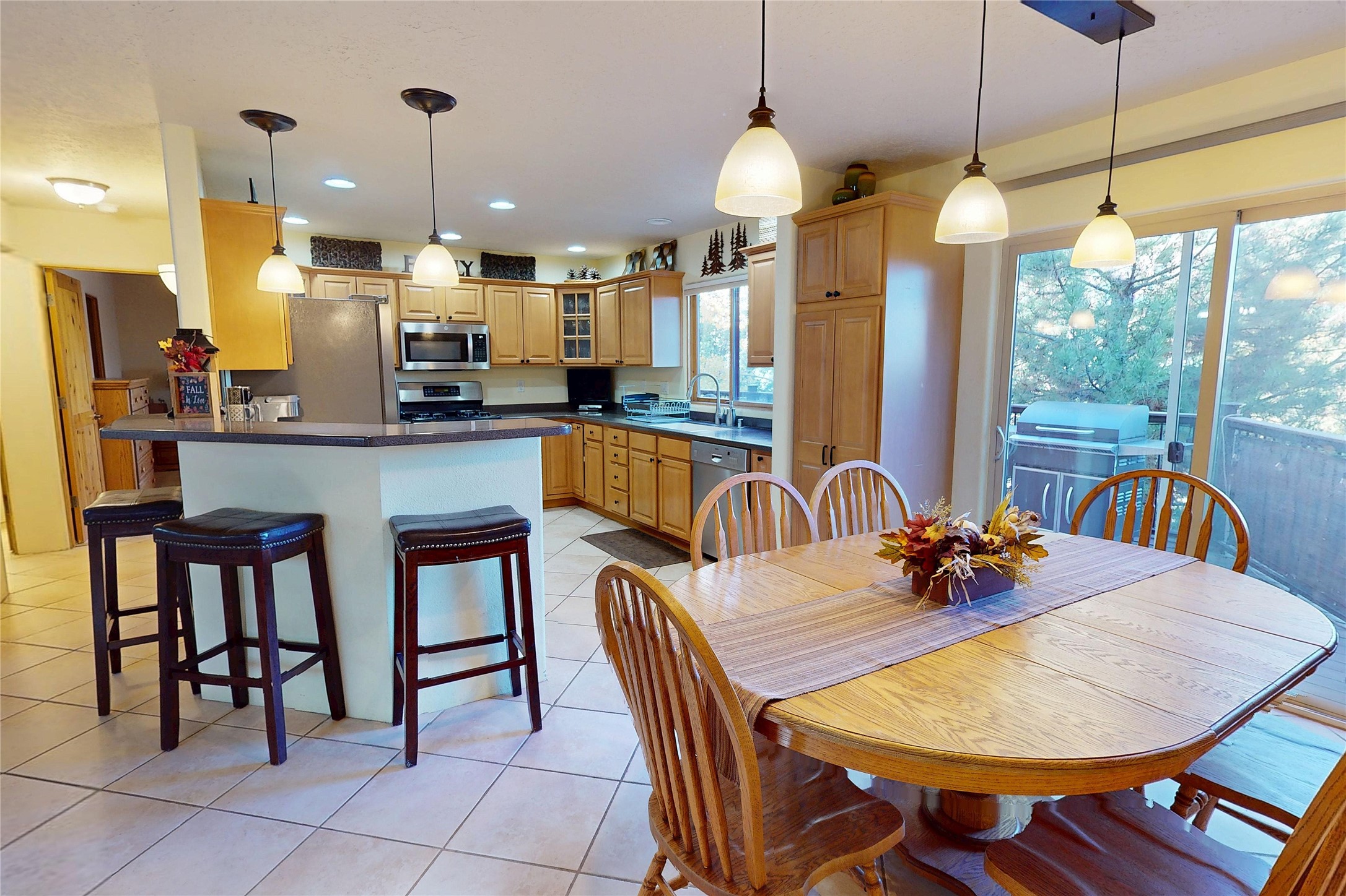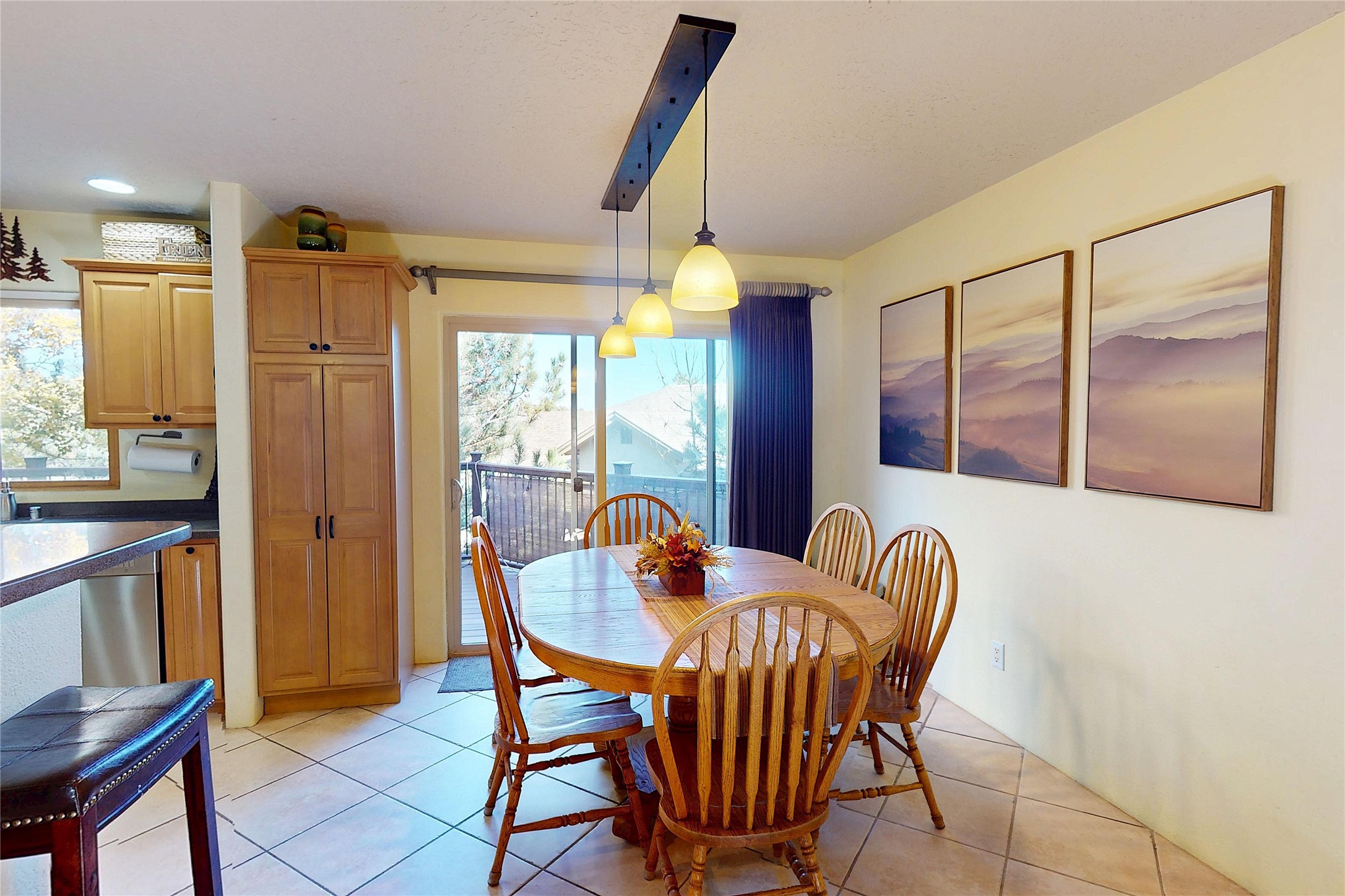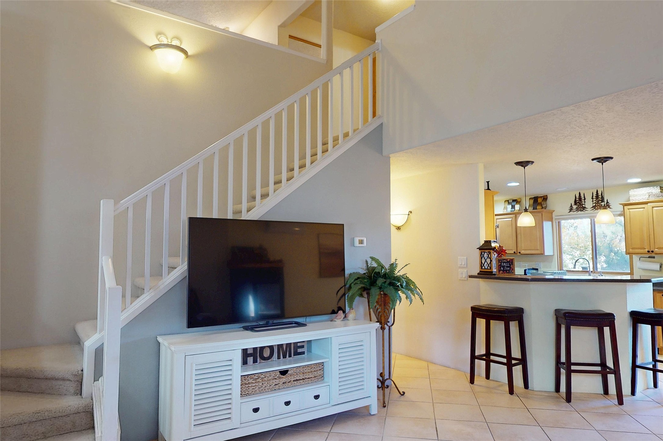 Beautiful, spacious home with modern comforts and canyon-side privacy. This stunning four-bedroom, four-bathroom townhome offers everything on your wish list -- modern style, thoughtful design, and an unbeatable Los Alamos location close to downtown, schools, parks, and trails. Come inside to a bright, open main level where the living, dining, and kitchen areas flow seamlessly together. The living room features soaring cathedral ceilings, a gas fireplace, and large windows that fill the space with natural light. The spacious kitchen includes solid-surface countertops, stainless steel appliances, a full pantry, and warm maple cabinetry -- perfect for everyday cooking or entertaining. The primary suite is conveniently located on the main floor, complete with a walk-in closet and a private bath featuring dual vanities and a deep soaking tub. Upstairs, you'll find two generously sized bedrooms, a full bath, and a versatile loft -- ideal as an office, reading nook, or play area. The fully finished walk-out basement adds incredible flexibility with a large family room, a guest bedroom, full bathroom, and an oversized storage room. Enjoy outdoor living on the expansive deck, or relax in the private, fully fenced backyard surrounded by mature trees. Additional highlights include six-zone radiant heating, solid pine doors, wood-clad windows, tile flooring in high-traffic areas, and ceiling fans throughout. Beautifully maintained and designed for comfort, this home is ready for you to move in and enjoy Los Alamos living at its best!