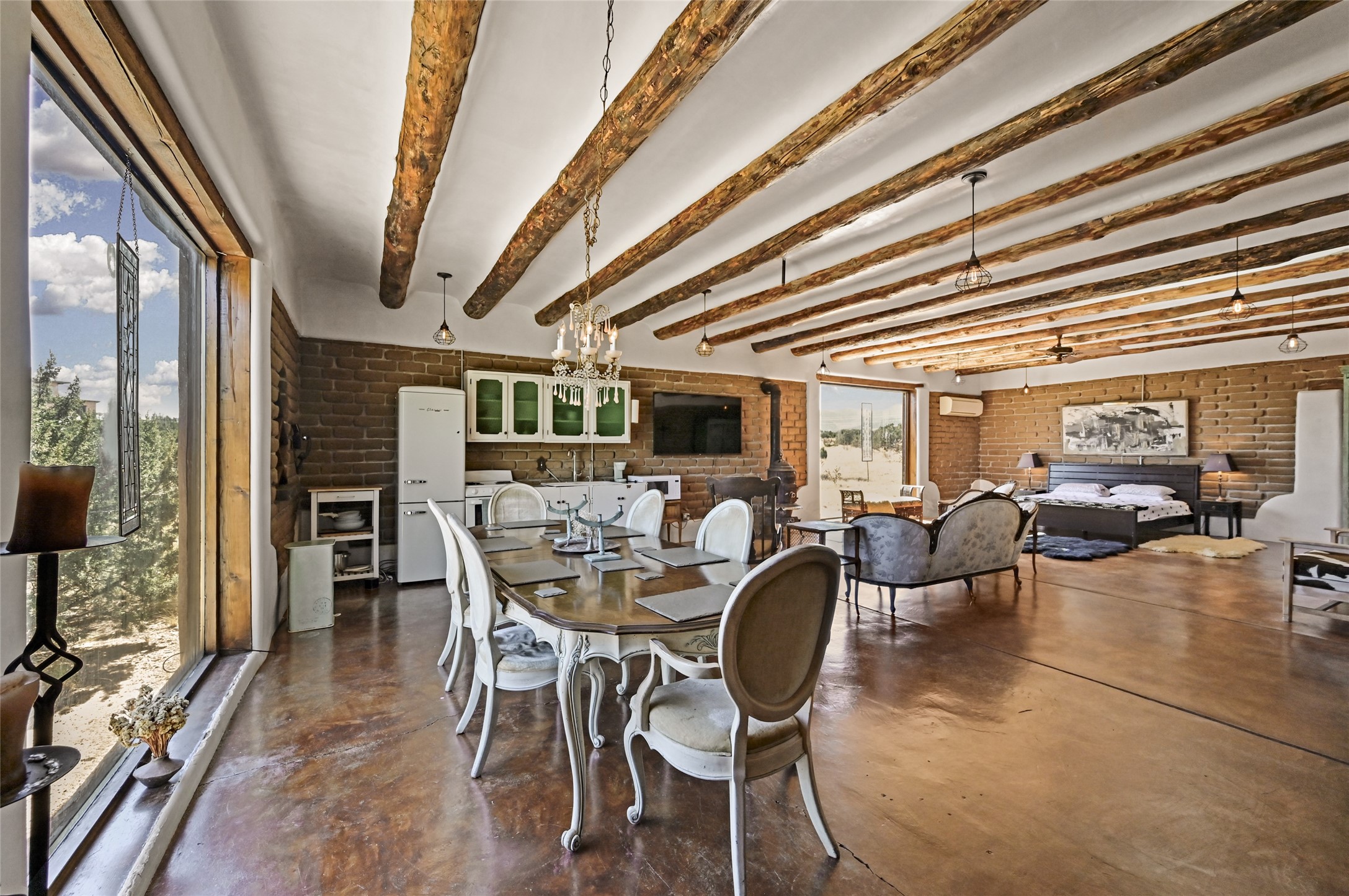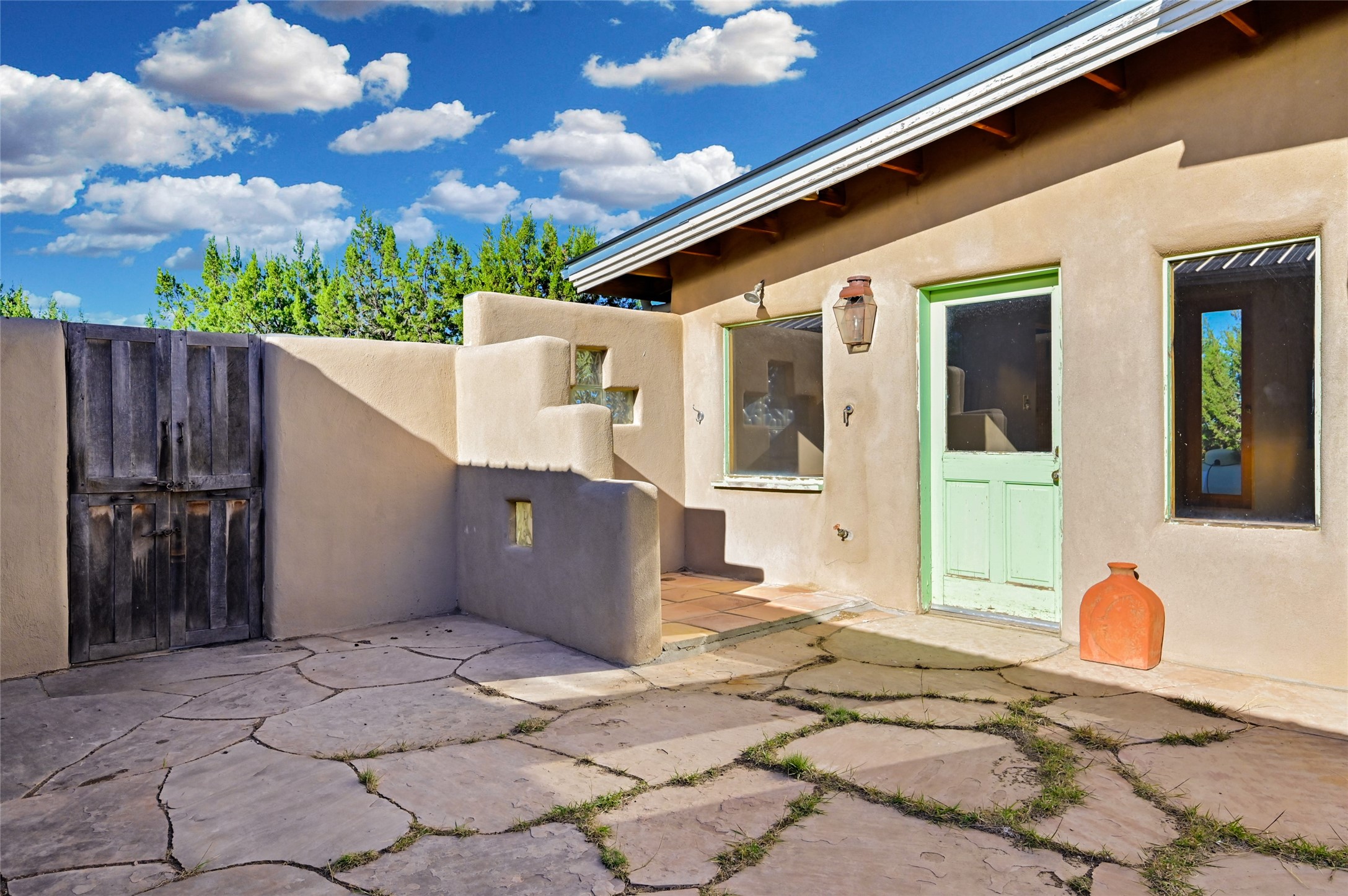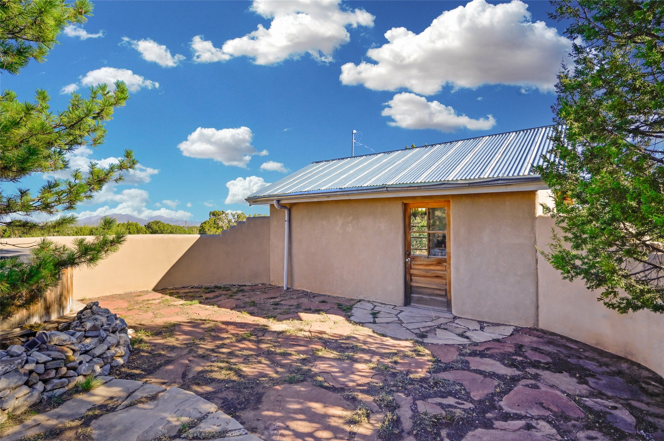 Welcome to this remarkable property that exudes the rustic charm of the old west and features the adobe walls that distinguishes true Santa Fe from the rest! Settled on just under a 10 acre naturally landscaped parcel of land with dreamy mountain views and populated with Pinon and Juniper Trees throughout, this property is the one you've been waiting for. The one bedroom one bath private main home boasts an open concept floor plan and 1,500+/- heated square feet. In addition to the main home there are three separate studios for your use and imagination! A 1,000 +/- sqft adobe with one bath would be great for your guests. The 985+/- sqft "music studio" with one bath attracts great natural light and contains a loft up above the main level. The cute 300 +/- detached studio is just off of the walled courtyard and next to the outdoor hot tub. Another great feature and added benefit to this property is the designated RV parking and hookup area! Come and own your own unique perspective of the gorgeous sunrise and sunset views that Santa Fe is known for from this one of a kind property. The property is fully-fenced and is about a 20 minute drive from the Santa Fe city limits.