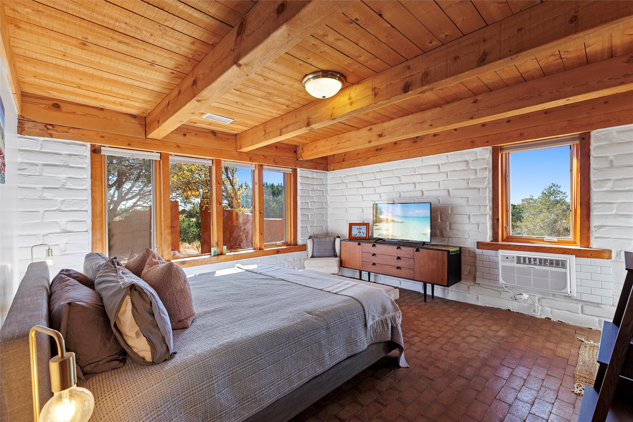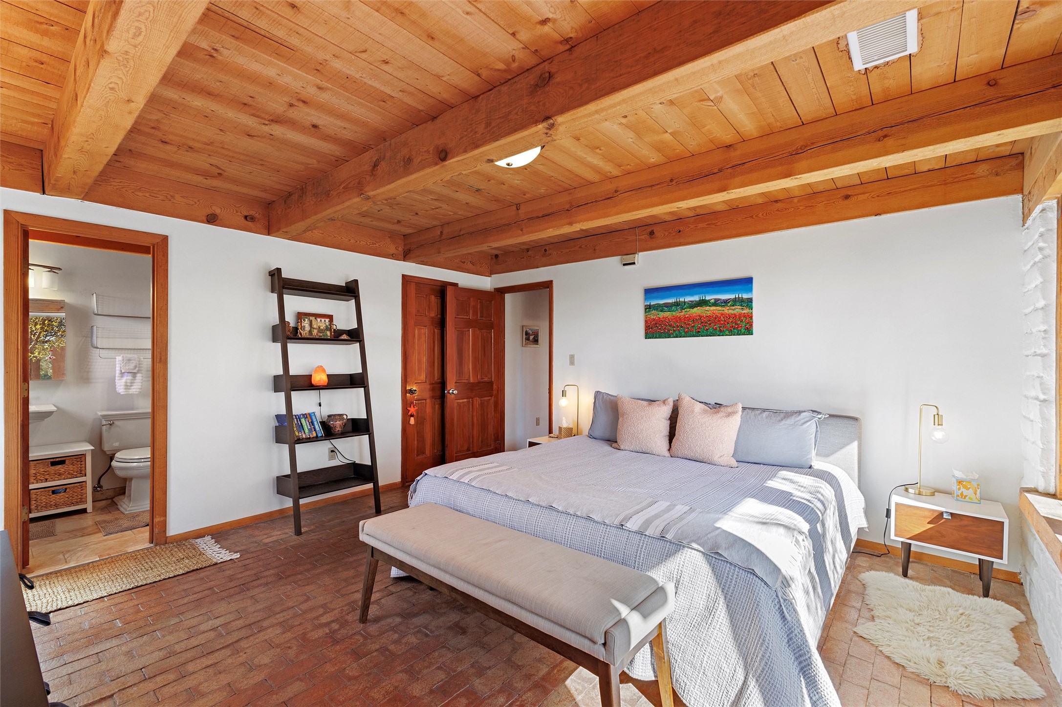 Possibilities abound in this inviting and well cared for, passive solar home, in the sought after Eldorado at Santa Fe community, with outstanding amenities for all who live within its tranquil setting.*Currently operating as a successful short term to mid-term rental, this income producing property allows you to dream.Whether you're looking for a turn key investment, a way to offset the expense of your own home away from home in Santa Fe or a comfortable place to call home full time, this idyllic retreat is not to be missed.Offering 2-primary suites, with excellent separation, the open floor plan features striking wood beams, abundant natural light, and expansive views, plus a dedicated office space, separate laundry room, 2 car garage and separate generator. Enjoy the beautiful views and sunsets that Eldorado is known for from one of the fully fenced outdoor patios.Fully stocked and tastefully appointed, this serene and stylish retreat blends southwestern charm with relaxed sophistication, checking all the boxes for you and your guests. Schedule your showing today and see how easy it can be to make your Santa Fe dreams come true!*Community amenities include walking and biking trails, greenbelts, hiking trails, basketball courts, tennis courts, pickle ball, seasonal swimming pool, and more. HOA fees are annual, at $620 per household.