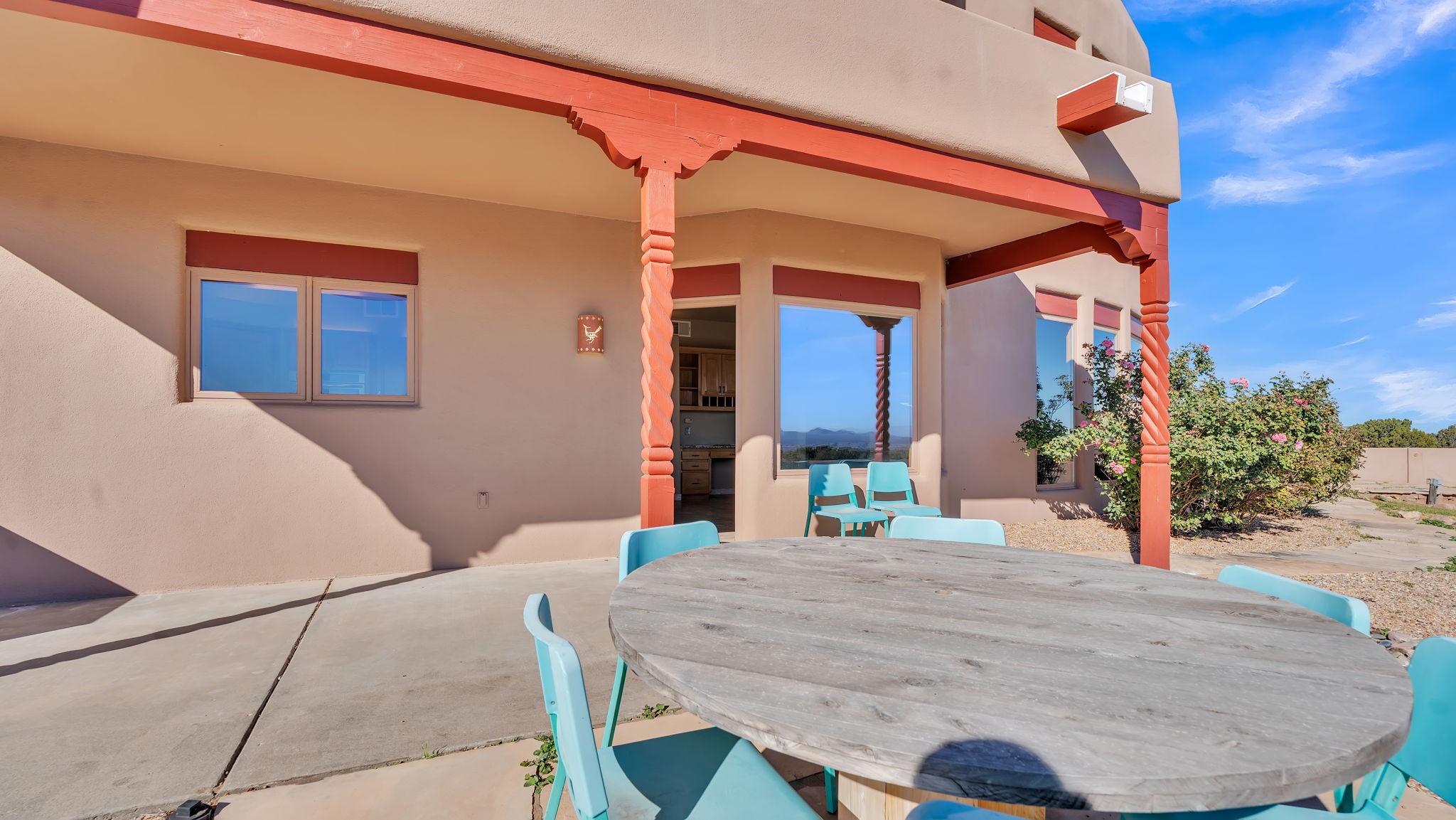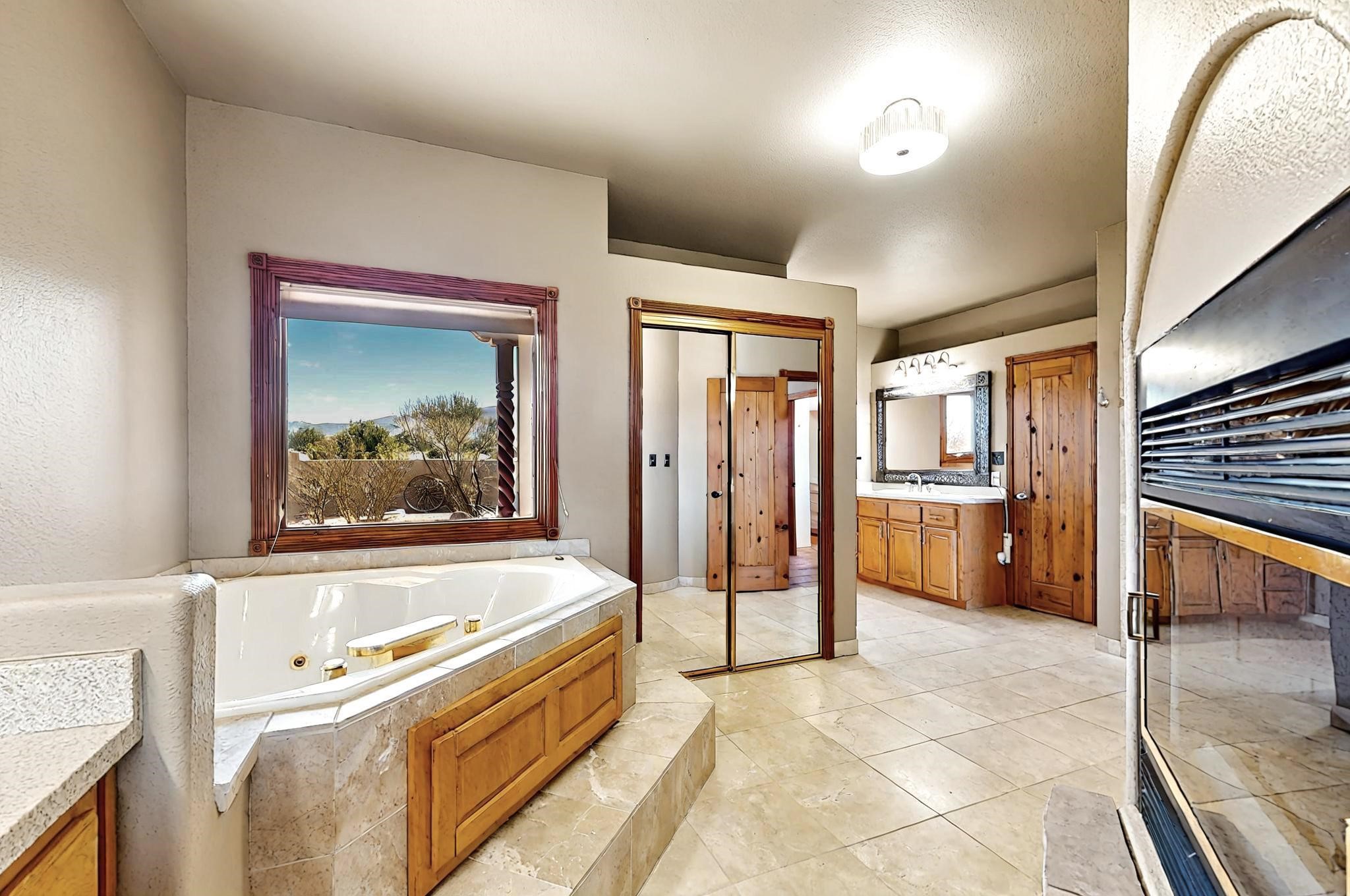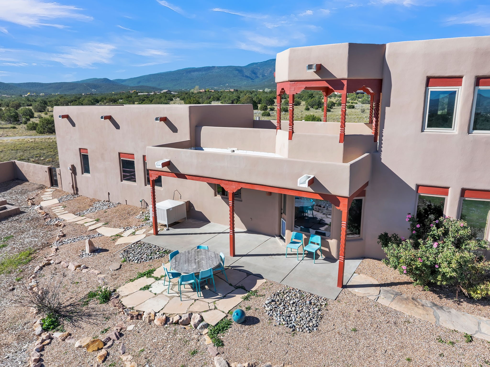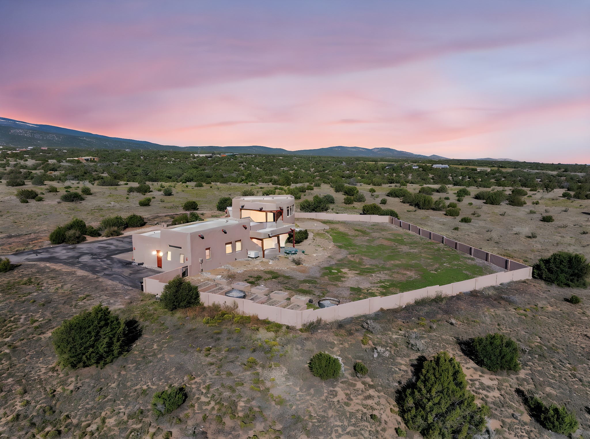 Welcome to 5 La Aguapa, Sandia Park, NM Experience luxury rural living in San Pedro Creek Estates! This custom 4,000+ sq ft home on 10.57 acres offers breathtaking views of five mountain ranges. Featuring 4 bedrooms, 4 baths, and two primary suites, this home combines comfort and elegance. The great room with soaring ceilings, a gas log fireplace, and panoramic views. The gourmet kitchen includes granite countertops, a built-in gas stove, pantry, and access to a workshop and three-car garage. Enjoy radiant heat, travertine tile flooring, a large utility room, and a walled backyard with access to Golden Open Space Los Duendes Trail. This is luxury rural living within reach.Situated on 10.57 acres in the prestigious San Pedro Creek Estates, this impressive 4,000+ square foot home offers refined comfort, privacy, and spectacular views of five separate mountain ranges. Featuring 4 bedroomsincluding two primary suites and 4 bathrooms, this thoughtfully designed home blends elegance with everyday functionality. The spacious great room showcases a gas log fireplace and sweeping views for miles, creating a warm and inviting central gathering space. The downstairs primary suite features a large walk-in closet and a generously sized bathroom, while the upstairs primary suite includes a private balcony the perfect spot to take in the serene landscape. Enjoy cooking in the large kitchen, complete with granite countertops, a built-in gas stove, ample cabinetry, a nice-sized pantry, and access to a spacious workshop and three-car garage perfect for hobbies, projects, or extra storage. The home is equipped with efficient radiant heat and features travertine tile throughout the downstairs, adding both beauty and functionality. A spacious utility room includes a sink and plenty of storage. Outside, you'll find a large walled-in backyard, ideal for relaxing, entertaining, or pets. The property also includes private gate access (key fob provided) to the Golden Open Space Los Duendes Trail, offering opportunities for hiking, biking, and horseback riding. Ideally located, this home is just 32 miles from Albuquerque, offering all the amenities of city living, 21 miles from Madrid, known for its artistic charm, and 50 miles from Santa Fe, celebrated for its rich culture and dining.POVEvery window frames a different view five mountain ranges that change colors with the seasons. It's peaceful, quiet, and filled with natural light. Mornings start with coffee on the balcony, and evenings end by the fire watching the sunset roll across the hills. There's room to breathe, create, and enjoy life at a slower pace yet you're still close enough to everything you need. It's truly the best of both worlds.