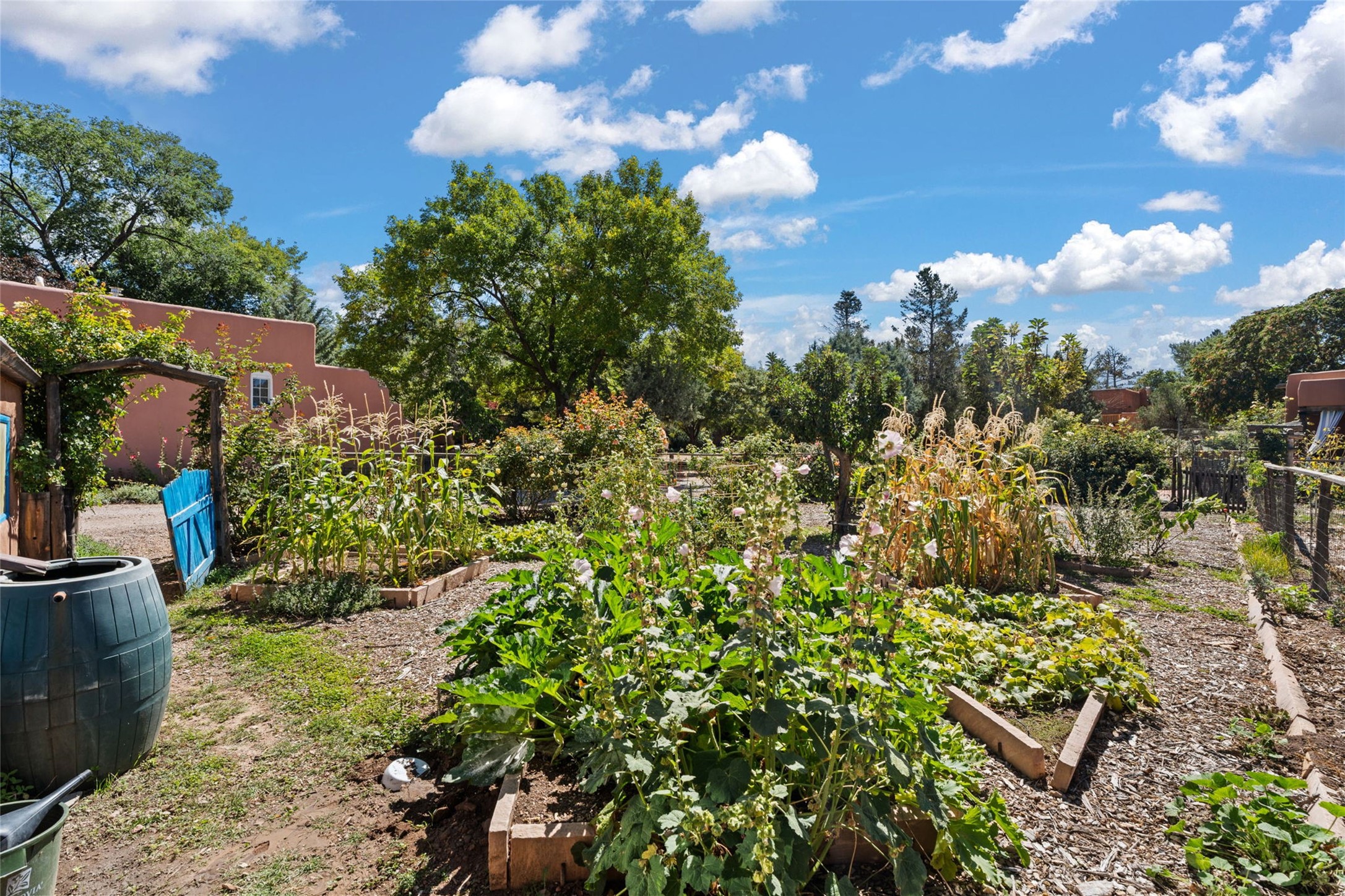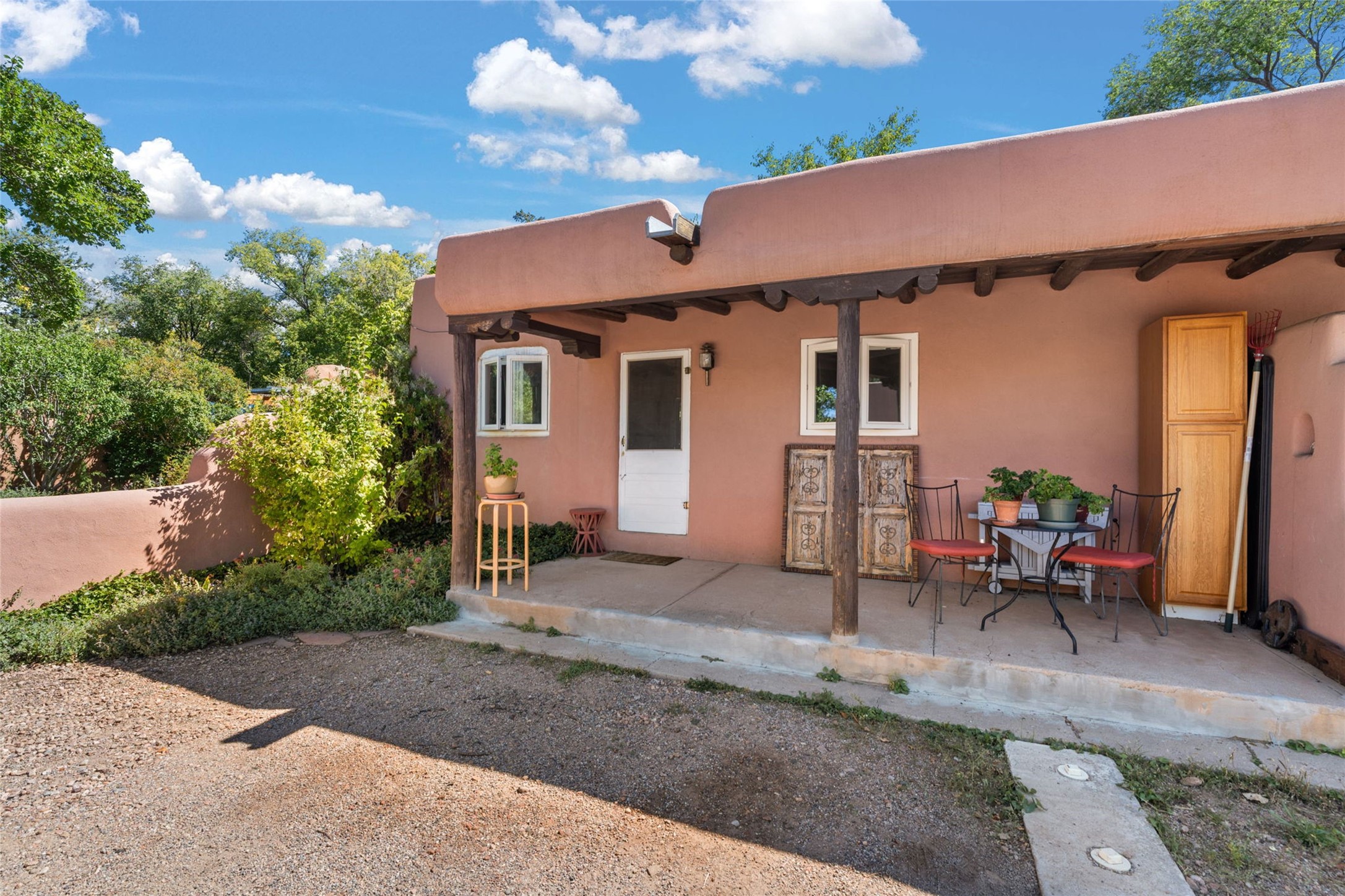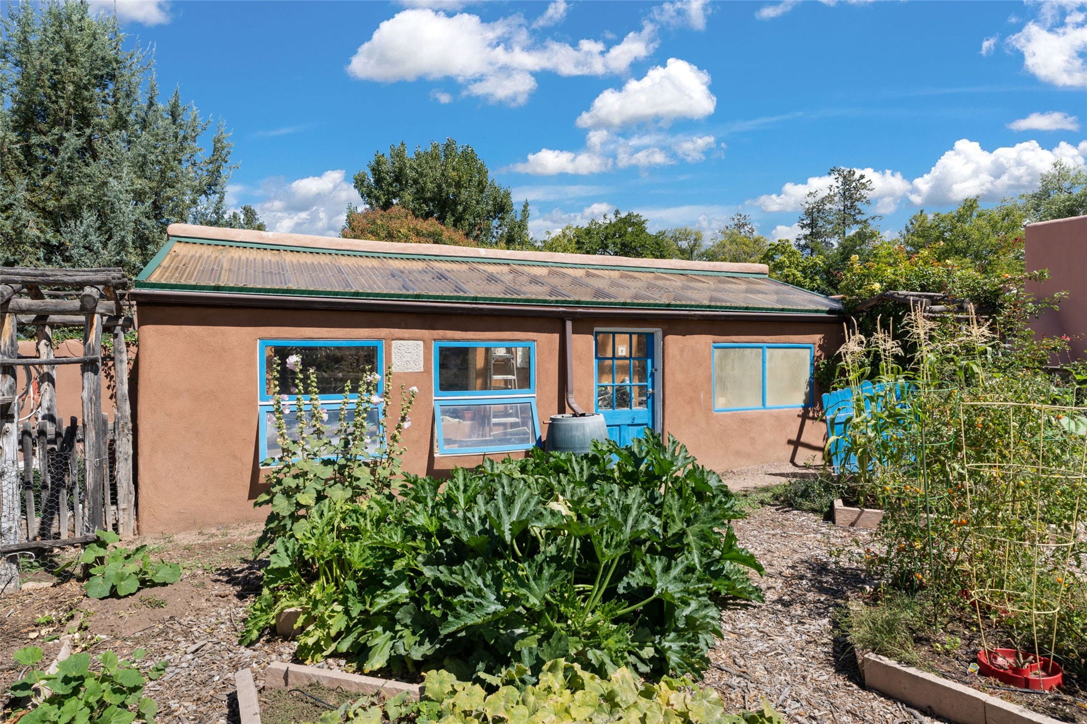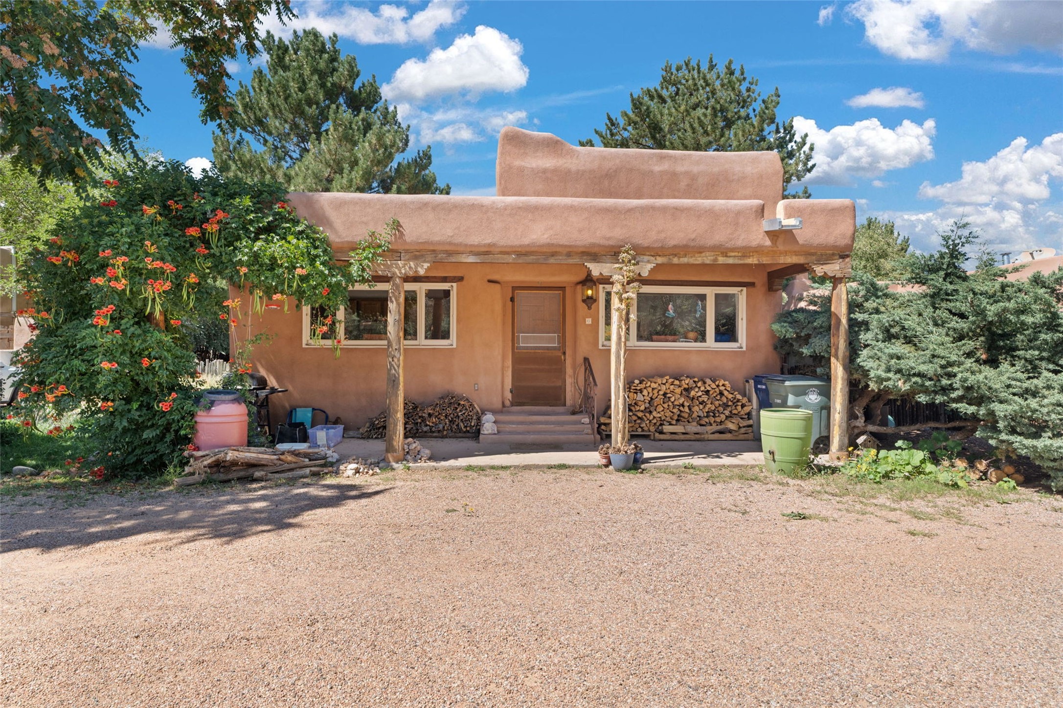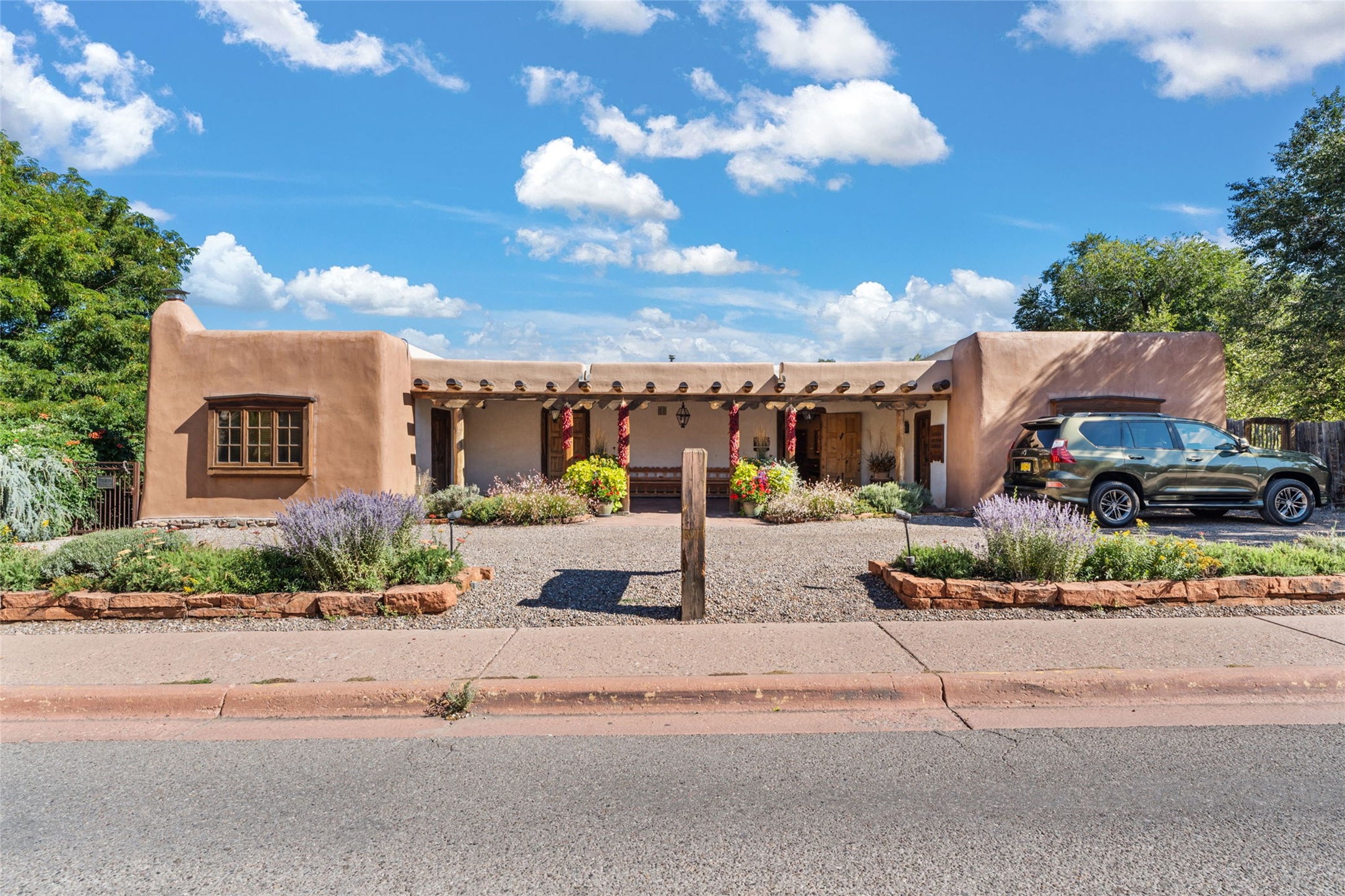Envision the possibilities of this 3.27-acre estate, bridging iconic Canyon Road with the dirt stretch of East Alameda, directly beside the famed Compound Restaurant. This is a property of both heritage and horizon, anchored by a 3,829-square-foot historic residence on the Alameda side and a 4,424-square-foot commercial gallery on Canyon Road. Between these lies a hidden enclave of gardens, courtyards, and guest dwellings, including one designed by the celebrated Santa Fe builder Betty Stewart. The main residence, built in 1938 and recognized as a historically contributing building, has been lovingly preserved and enhanced by multiple generations of the same family. Within its adobe walls, you'll find four bedrooms, three full baths, an office, a laundry and craft room, a cedar-lined closet, and a sunroom, each space imbued with warmth & continuity of care. The Canyon Road gallery, leased through 2028, provides longevity and prestige in Santa Fe's most famous arts district. Throughout the grounds, mature trees and plantings and paths connect the various structures - serene, self-contained, and rich with character. The property enjoys full city utilities as well as two private wells, each yielding three acre-fee of water, an invaluable resource for maintaining the grounds or for future expansion. This extraordinary compound merges historic authenticity with modern versatility, one of the few remaining estates to unite Canyon Road and East Alameda in a single private holding. Whether envisioned as a multi-generational family retreat or a bespoke Eastside development, the site's dual access, exceptional size, and RC8AC zoning (allowing for 8 units per acre) make it a truly unique offering. Just moments from Santa Fe's galleries, dining, and cultural landmarks, yet profoundly secluded within its own walls and gardens, this property stands as both a legacy home and an expansive canvas for new possibilities in the heart of the city's most storied neighborhood.
