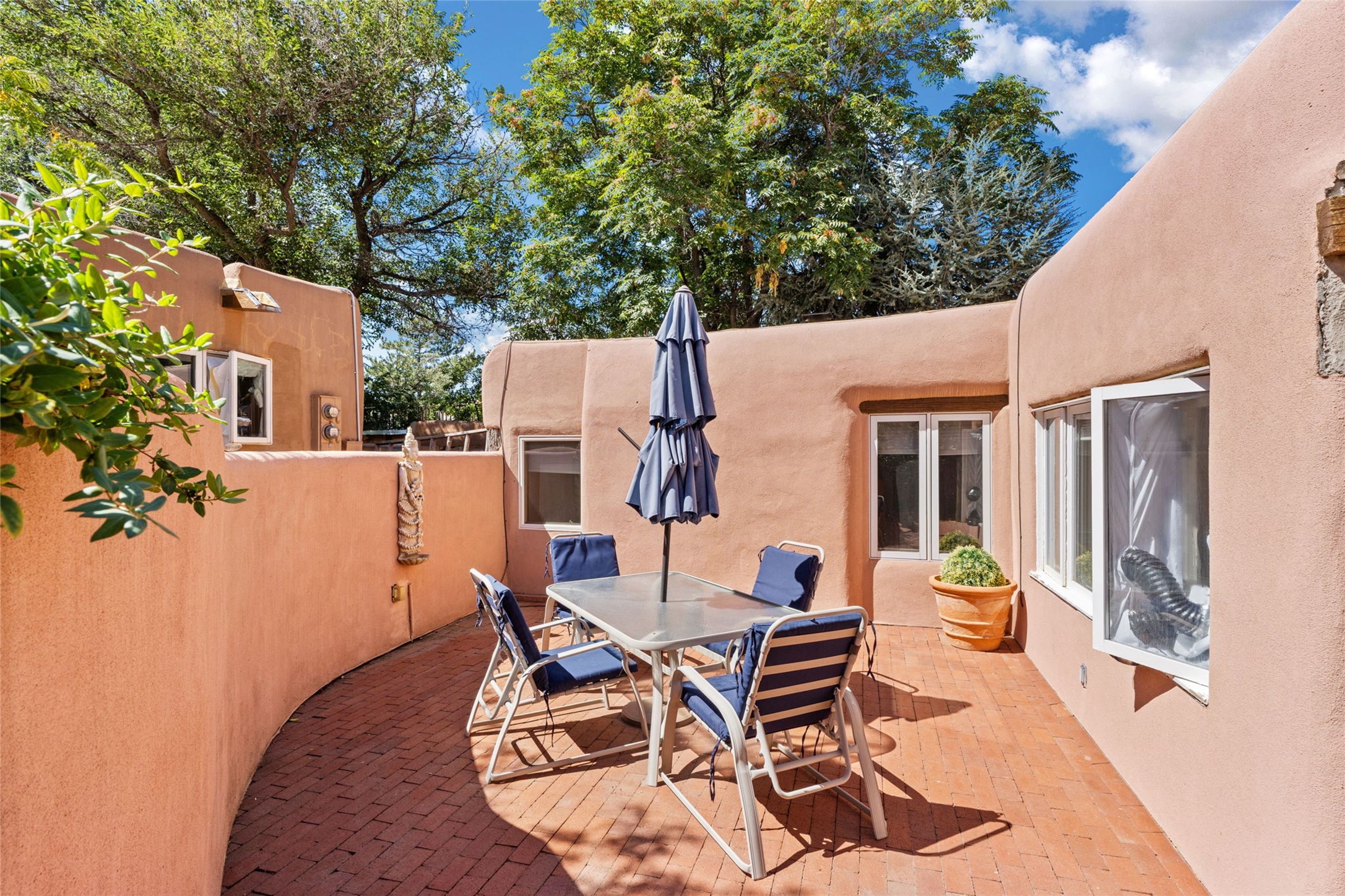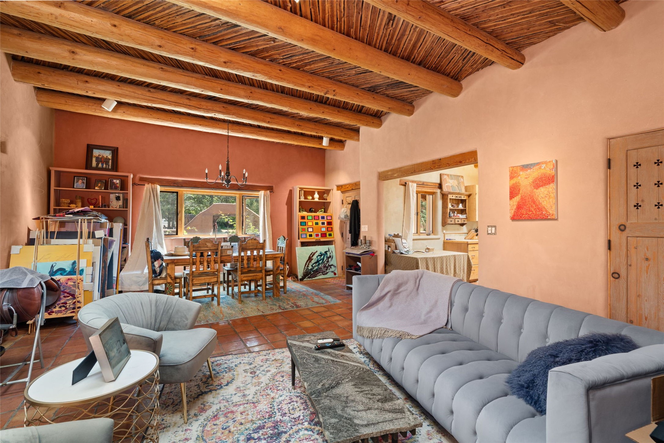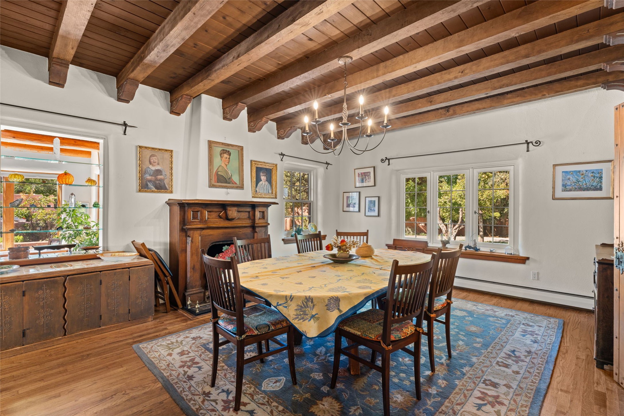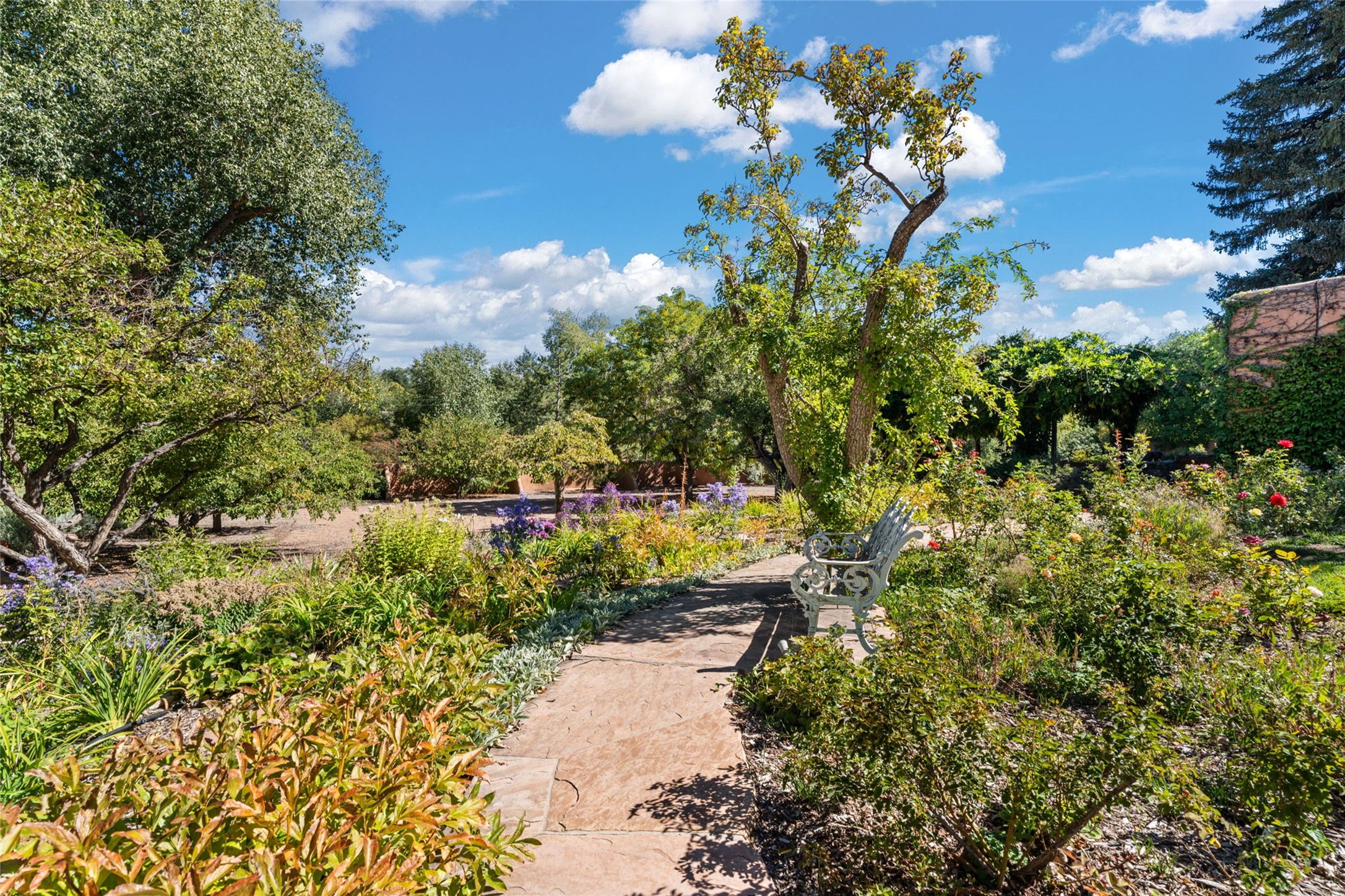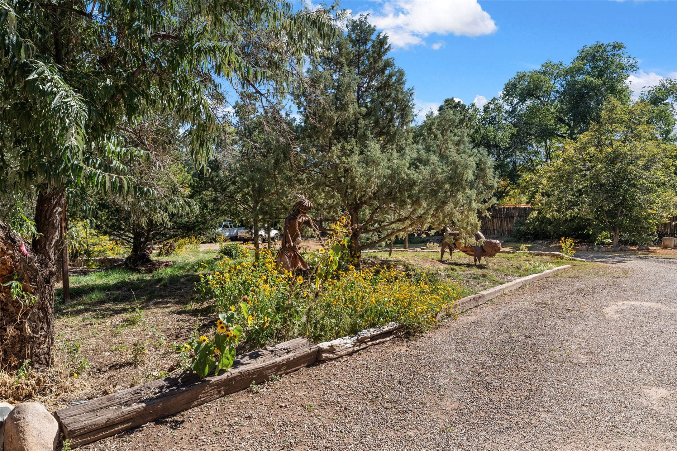 Envision the possibilities of this 3.27-acre estate, bridging iconic Canyon Road with the dirt stretch of East Alameda, directly beside the famed Compound Restaurant. This is a property of both heritage and horizon, anchored by a 3,829-square-foot historic residence on the Alameda side and a 4,424-square-foot commercial gallery on Canyon Road. Between these lies a hidden enclave of gardens, courtyards, and guest dwellings, including one designed by the celebrated Santa Fe builder Betty Stewart. The main residence, built in 1938 and recognized as a historically contributing building, has been lovingly preserved and enhanced by multiple generations of the same family. Within its adobe walls, you'll find four bedrooms, three full baths, an office, a laundry and craft room, a cedar-lined closet, and a sunroom, each space imbued with warmth & continuity of care. The Canyon Road gallery, leased through 2028, provides longevity and prestige in Santa Fe's most famous arts district. Throughout the grounds, mature trees and plantings and paths connect the various structures - serene, self-contained, and rich with character. The property enjoys full city utilities as well as two private wells, each yielding three acre-fee of water, an invaluable resource for maintaining the grounds or for future expansion. This extraordinary compound merges historic authenticity with modern versatility, one of the few remaining estates to unite Canyon Road and East Alameda in a single private holding. Whether envisioned as a multi-generational family retreat or a bespoke Eastside development, the site's dual access, exceptional size, and RC8AC zoning (allowing for 8 units per acre) make it a truly unique offering. Just moments from Santa Fe's galleries, dining, and cultural landmarks, yet profoundly secluded within its own walls and gardens, this property stands as both a legacy home and an expansive canvas for new possibilities in the heart of the city's most storied neighborhood.