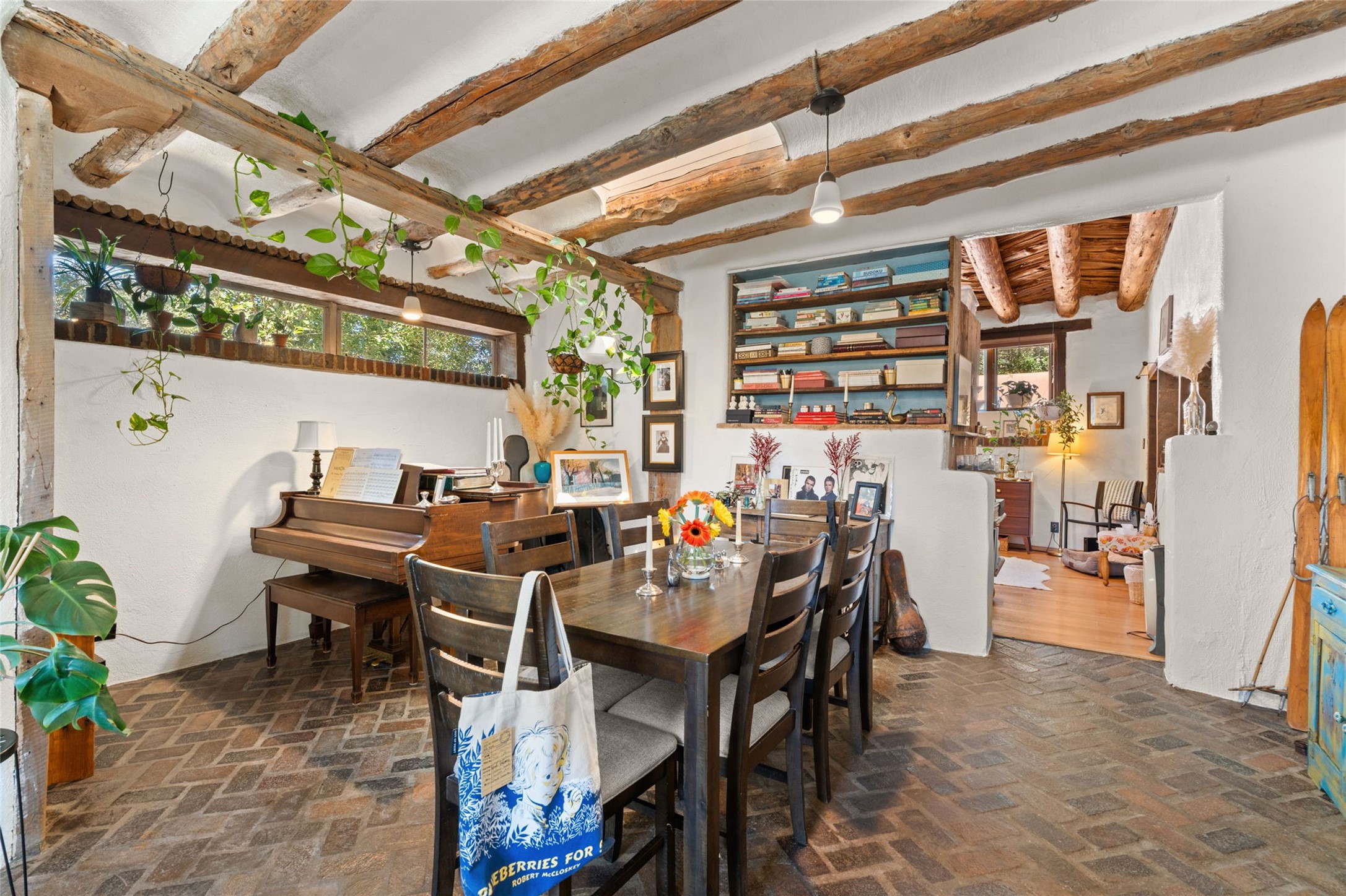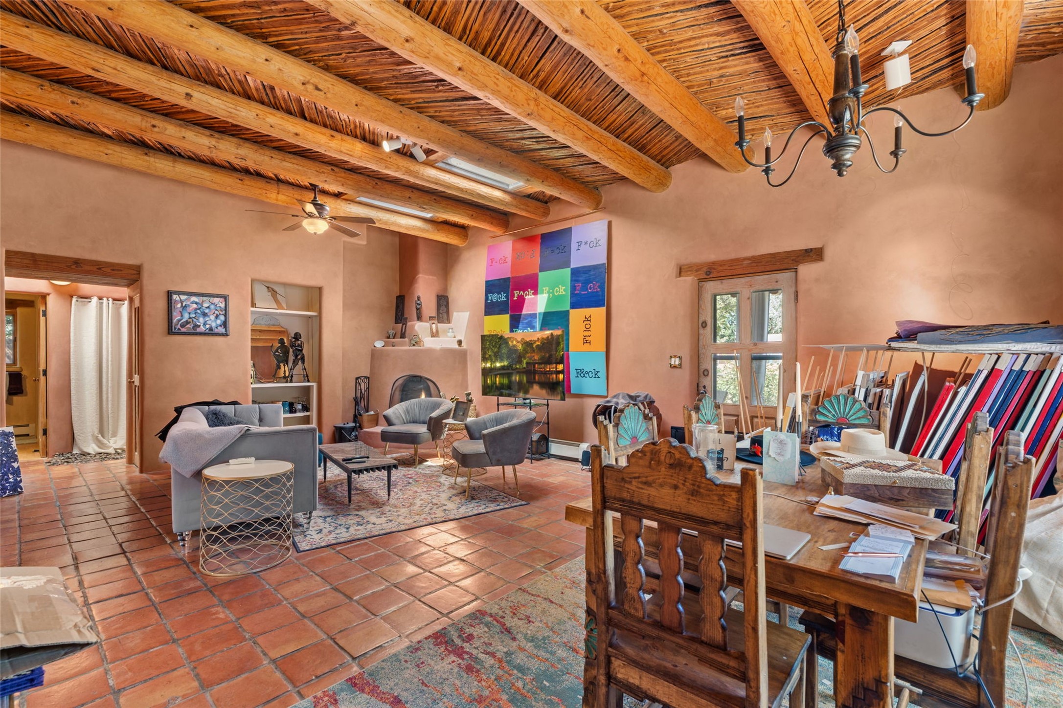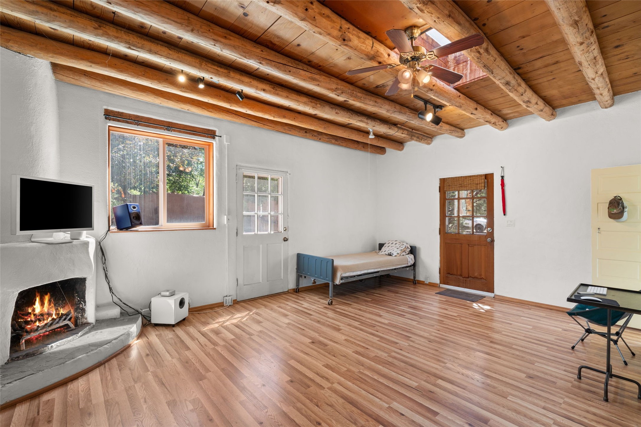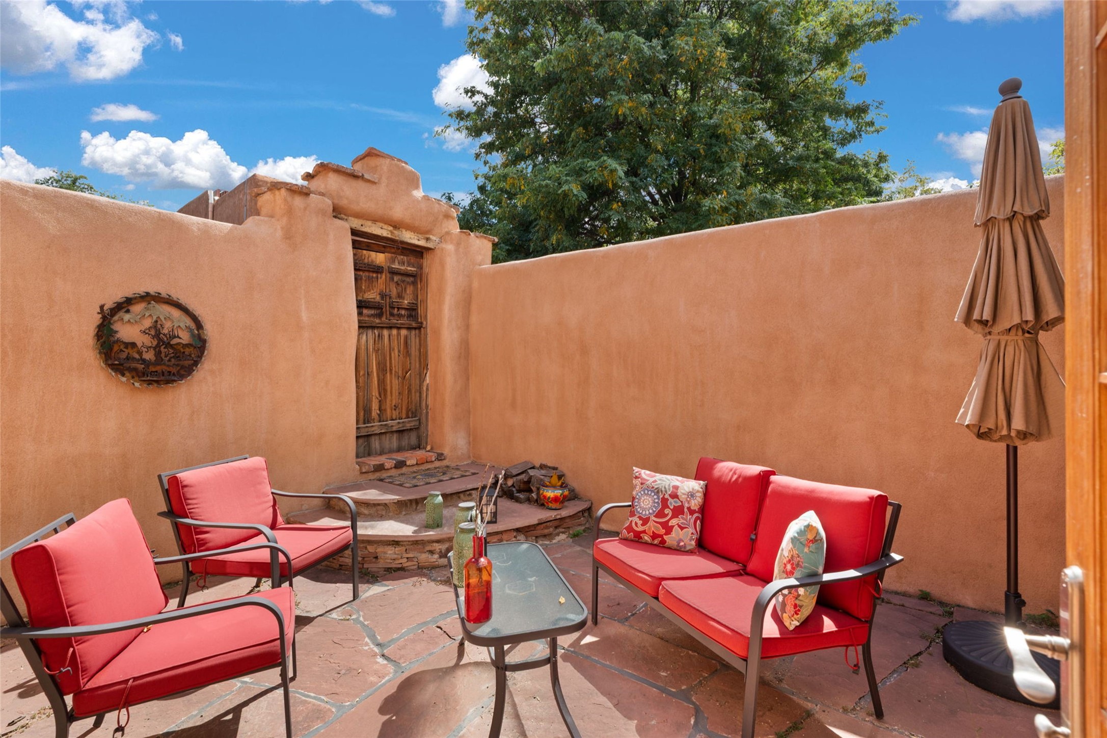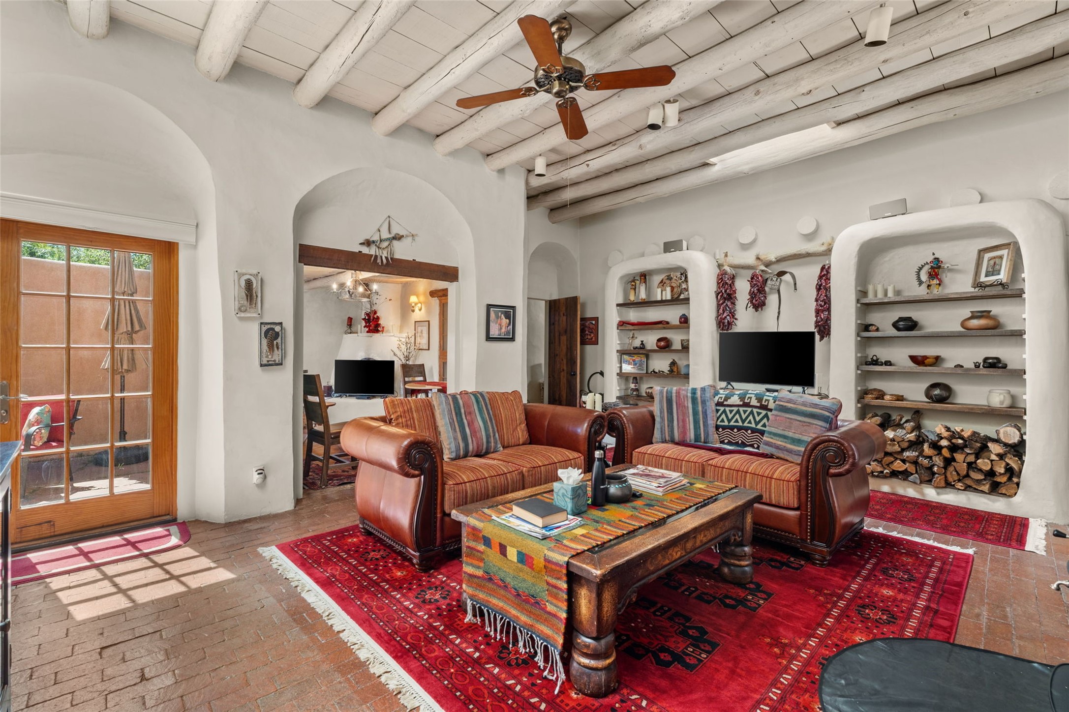 Envision the possibilities of this 3.27-acre estate, bridging iconic Canyon Road with the dirt stretch of East Alameda, directly beside the famed Compound Restaurant. This is a property of both heritage and horizon, anchored by a 3,829-square-foot historic residence on the Alameda side and a 4,424-square-foot commercial gallery on Canyon Road. Between these lies a hidden enclave of gardens, courtyards, and guest dwellings, including one designed by the celebrated Santa Fe builder Betty Stewart. The main residence, built in 1938 and recognized as a historically contributing building, has been lovingly preserved and enhanced by multiple generations of the same family. Within its adobe walls, you'll find four bedrooms, three full baths, an office, a laundry and craft room, a cedar-lined closet, and a sunroom, each space imbued with warmth & continuity of care. The Canyon Road gallery, leased through 2028, provides longevity and prestige in Santa Fe's most famous arts district. Throughout the grounds, mature trees and plantings and paths connect the various structures - serene, self-contained, and rich with character. The property enjoys full city utilities as well as two private wells, each yielding three acre-fee of water, an invaluable resource for maintaining the grounds or for future expansion. This extraordinary compound merges historic authenticity with modern versatility, one of the few remaining estates to unite Canyon Road and East Alameda in a single private holding. Whether envisioned as a multi-generational family retreat or a bespoke Eastside development, the site's dual access, exceptional size, and RC8AC zoning (allowing for 8 units per acre) make it a truly unique offering. Just moments from Santa Fe's galleries, dining, and cultural landmarks, yet profoundly secluded within its own walls and gardens, this property stands as both a legacy home and an expansive canvas for new possibilities in the heart of the city's most storied neighborhood.