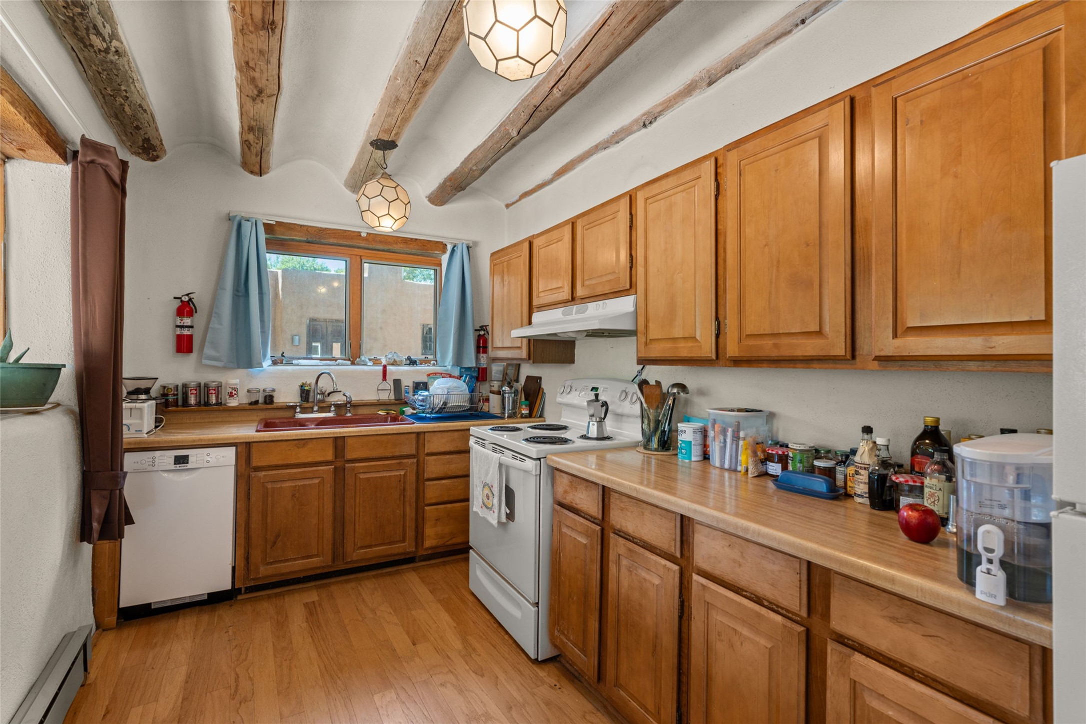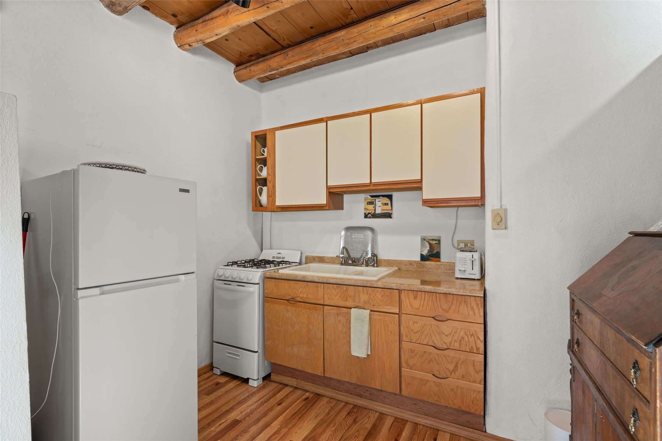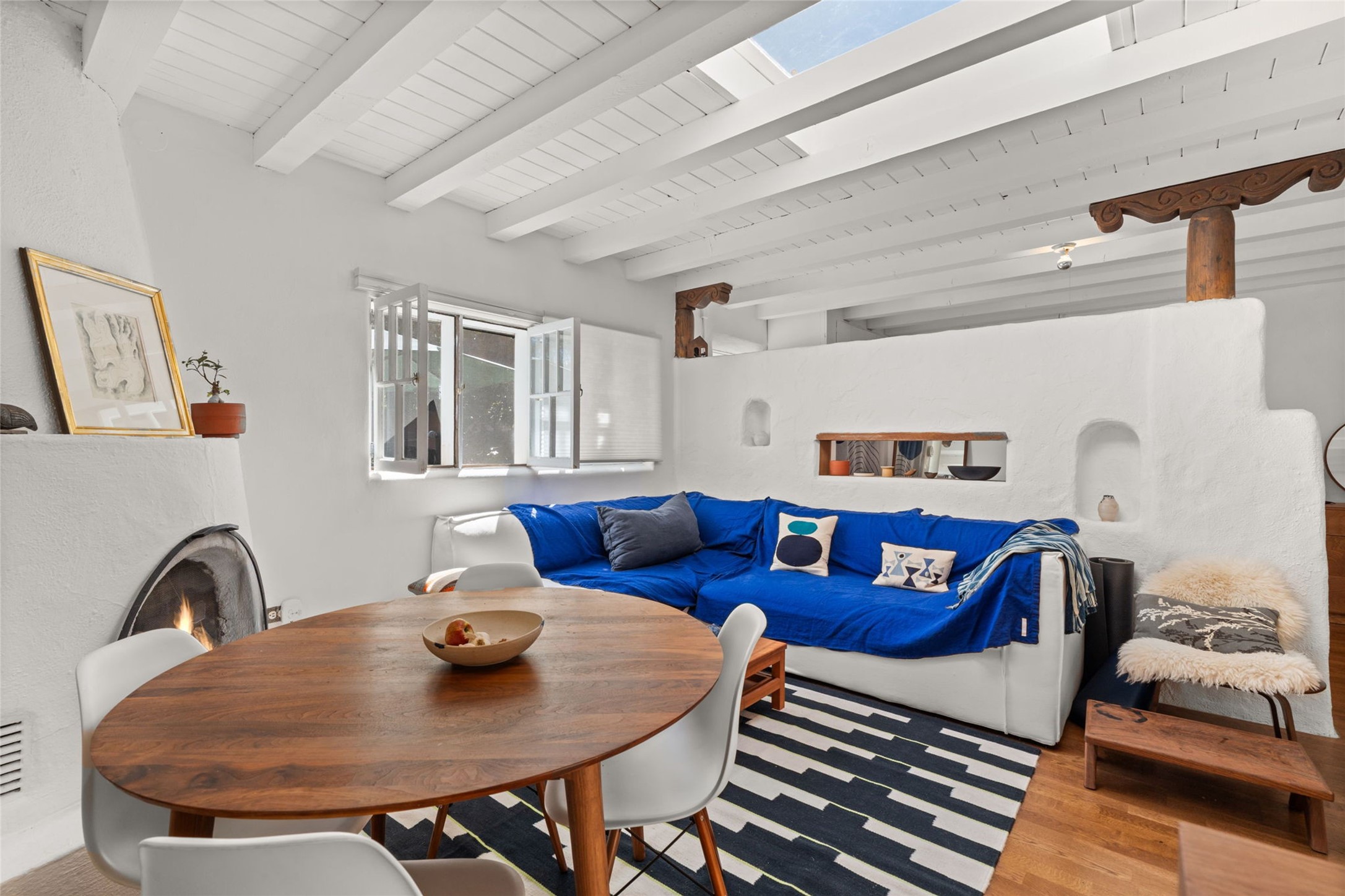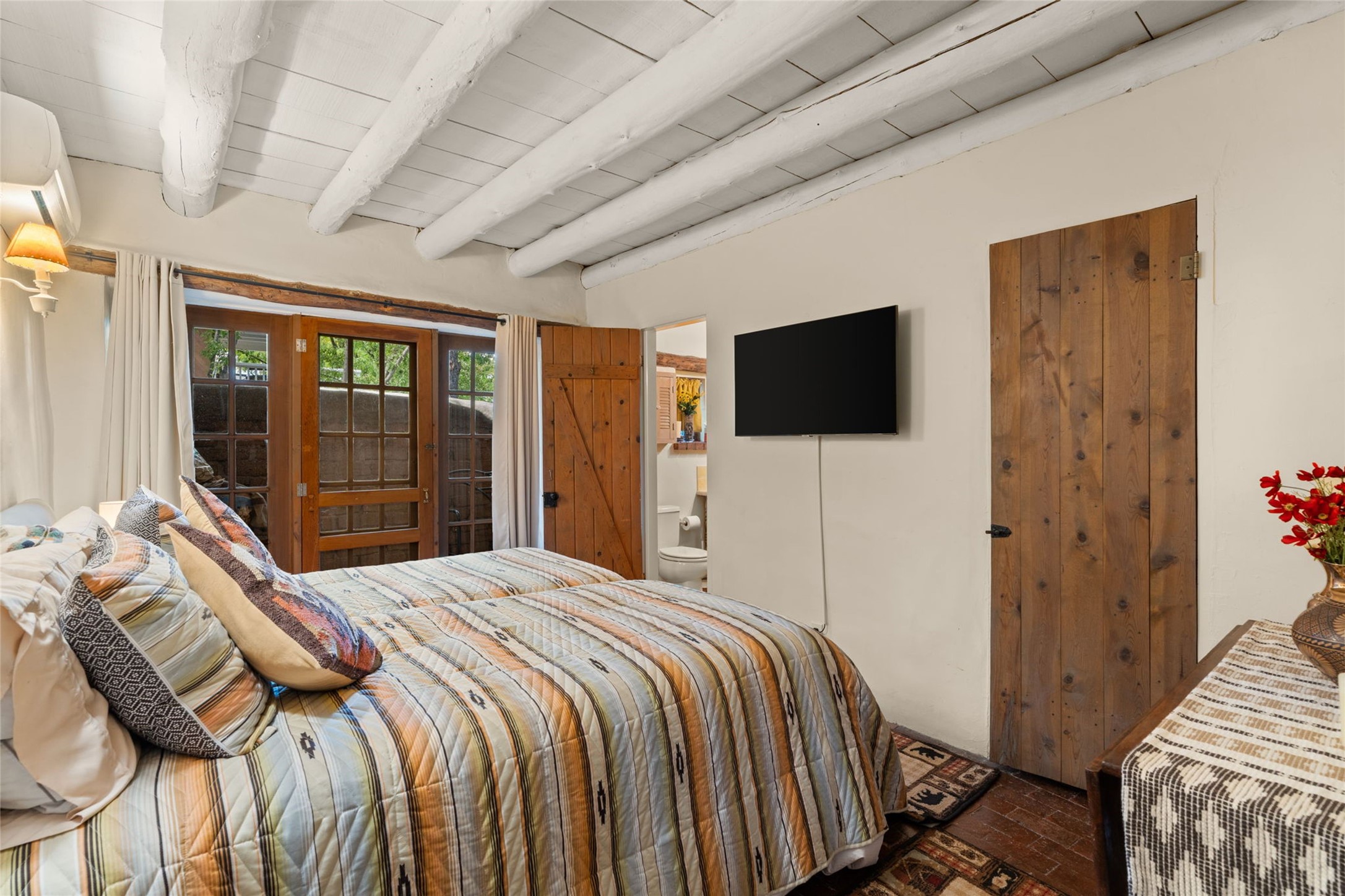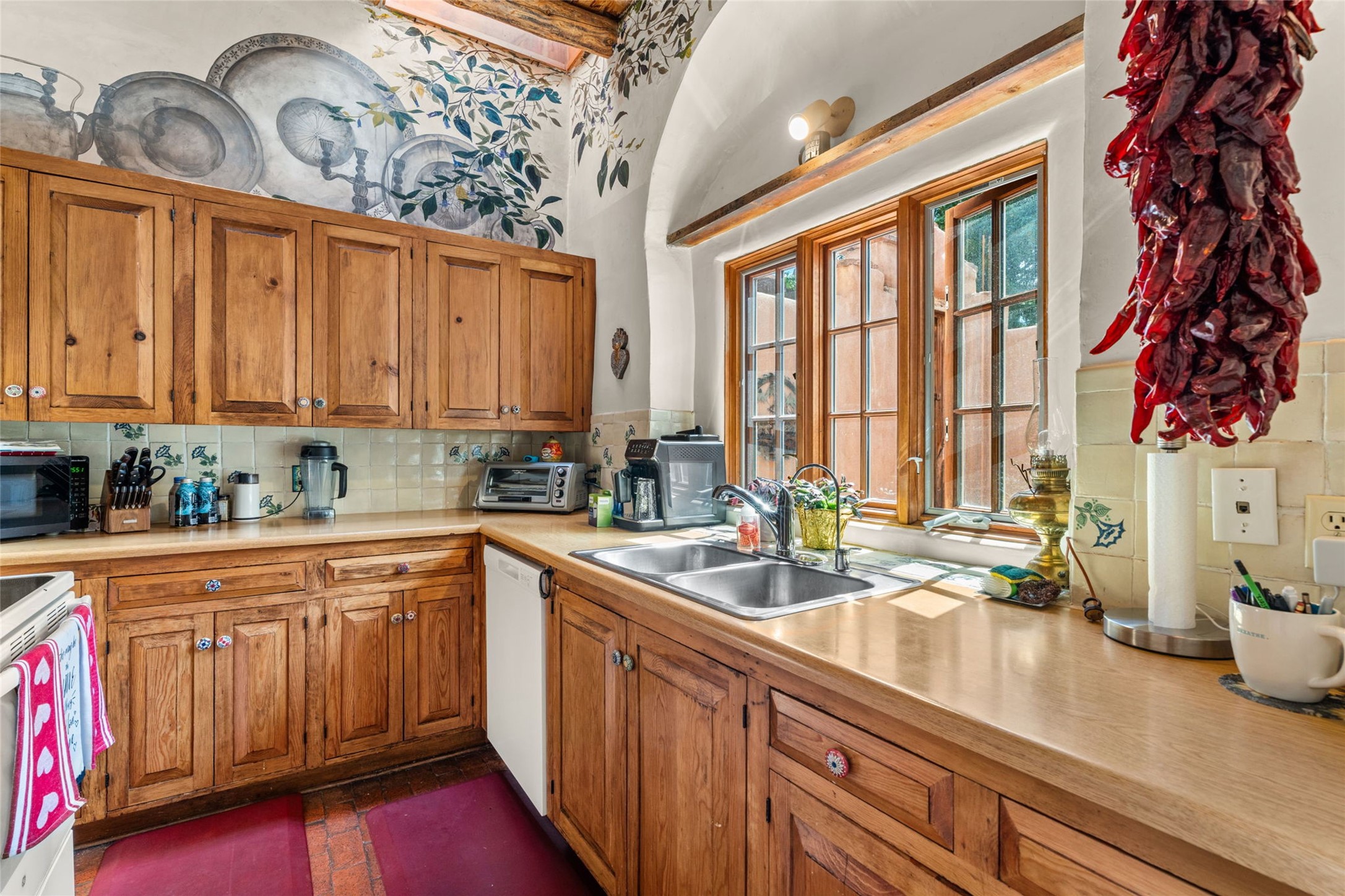 Envision the possibilities of this 3.27-acre estate, bridging iconic Canyon Road with the dirt stretch of East Alameda, directly beside the famed Compound Restaurant. This is a property of both heritage and horizon, anchored by a 3,829-square-foot historic residence on the Alameda side and a 4,424-square-foot commercial gallery on Canyon Road. Between these lies a hidden enclave of gardens, courtyards, and guest dwellings, including one designed by the celebrated Santa Fe builder Betty Stewart. The main residence, built in 1938 and recognized as a historically contributing building, has been lovingly preserved and enhanced by multiple generations of the same family. Within its adobe walls, you'll find four bedrooms, three full baths, an office, a laundry and craft room, a cedar-lined closet, and a sunroom, each space imbued with warmth & continuity of care. The Canyon Road gallery, leased through 2028, provides longevity and prestige in Santa Fe's most famous arts district. Throughout the grounds, mature trees and plantings and paths connect the various structures - serene, self-contained, and rich with character. The property enjoys full city utilities as well as two private wells, each yielding three acre-fee of water, an invaluable resource for maintaining the grounds or for future expansion. This extraordinary compound merges historic authenticity with modern versatility, one of the few remaining estates to unite Canyon Road and East Alameda in a single private holding. Whether envisioned as a multi-generational family retreat or a bespoke Eastside development, the site's dual access, exceptional size, and RC8AC zoning (allowing for 8 units per acre) make it a truly unique offering. Just moments from Santa Fe's galleries, dining, and cultural landmarks, yet profoundly secluded within its own walls and gardens, this property stands as both a legacy home and an expansive canvas for new possibilities in the heart of the city's most storied neighborhood.
