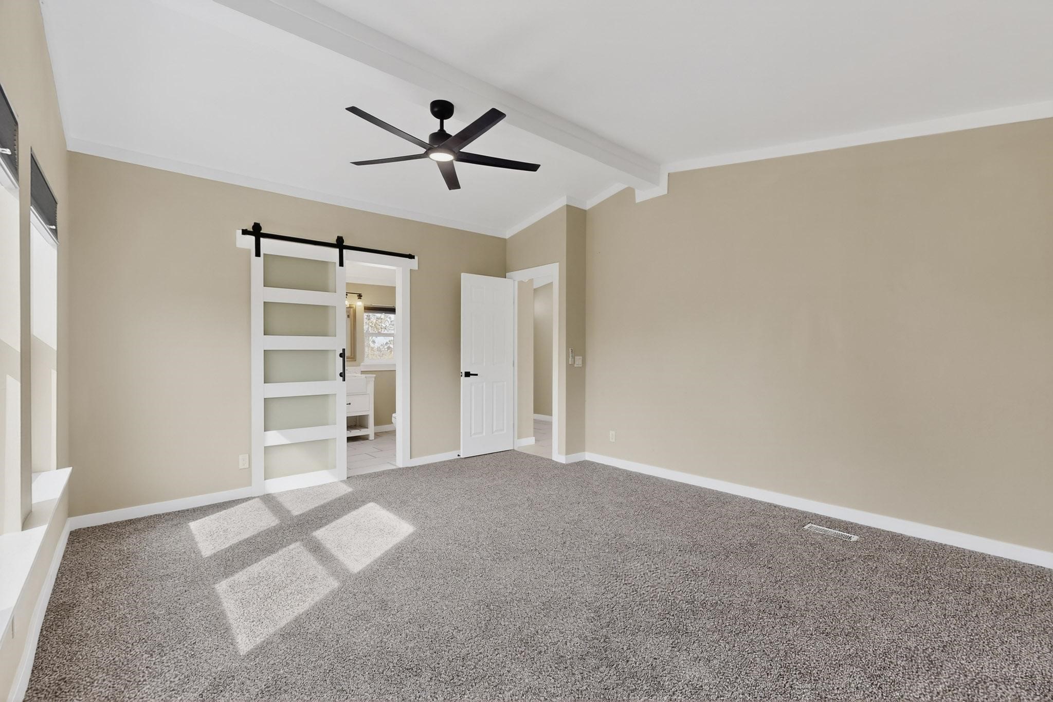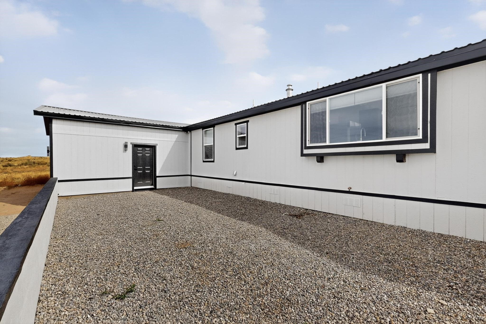 This beautifully remodeled 3-bedroom, 2 bath home offers modern comfort in a peaceful rural setting with spectacular views of the Jemez Mnts. Revel in the natural light that comes in through the 3 skylights. Enjoy a bonus room perfect for a home office or hobby space. Recent upgrades include new windows, new blinds, new roof, new tile flooring with plush carpet in the bedrooms, new lighting, and a new furnace and refrigerated air unit and new hot water heater. The kitchen has been thoughtfully redesigned with custom cabinetry, granite countertops and a new stainless appliance package.Home sits on a permanent foundation, with a new septic system and well improvements completed for peace of mind. Home also has an over sized 2-car garage. Property borders BLM land, providing privacy, open space and unmatched beauty right outside your door. Move-in ready and beautifully finished!!