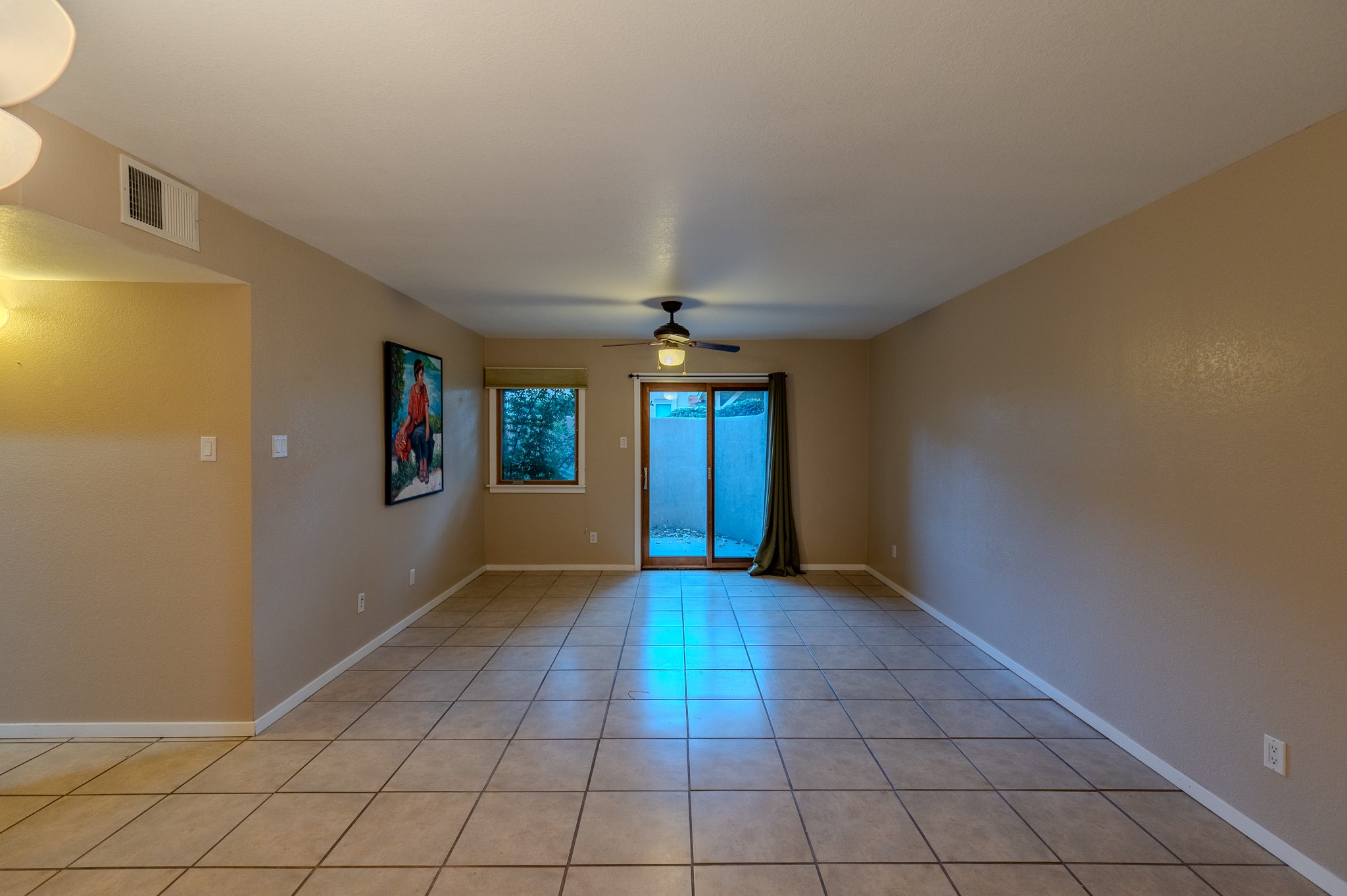 Checking every box. Ground Floor Condo on a lovely green belt offering 2 bedrooms and 2 full baths. The living room has a sliding door to a private court yard. This community is gated with well maintained grounds and a fenced outdoor swimming pool and common room. The location is central and walking distance to restaurants, shopping and entertainment venues. Easy to show. Have it all. Call today.