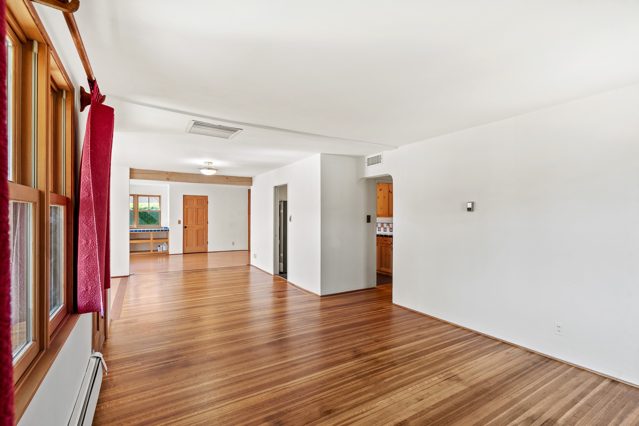 Charming and versatile single-level home nestled in the highly sought-after Casa Alegre neighborhood. Back on the market with significantly improved price. This property stands out as a unique opportunity, featuring multiple living areas and exceptional flexibility for the modern homeowner. This generous residence offers three bedrooms and two bathrooms, complemented by a large heated and finish open area. The oversized bonus space features direct access, presenting enormous possibilities. It's perfectly suited for a private art studio, home occupancy business, large gym, or a dedicated multi-generational living suite. The interior includes dedicated family, living, and dining rooms, all boasting beautiful hardwood flooring throughout the main living areas. Santa Fe Lifestyle at Your Doorstep. Enjoy true convenience with easy access to local shopping and dining. Best of all, the home is ideally situated near the Santa Fe River Trail and the Acequia Trail, providing direct, car-free routes straight to the vibrant Railyard District and historic downtown. The property features a spacious, fenced backyard and a covered portal, creating an ideal setting for outdoor entertaining and relaxation. Enjoy year-round comfort with reliable hot water baseboard heating and evaporative cooling.This motivated seller opportunity won't last long--schedule your showing today!