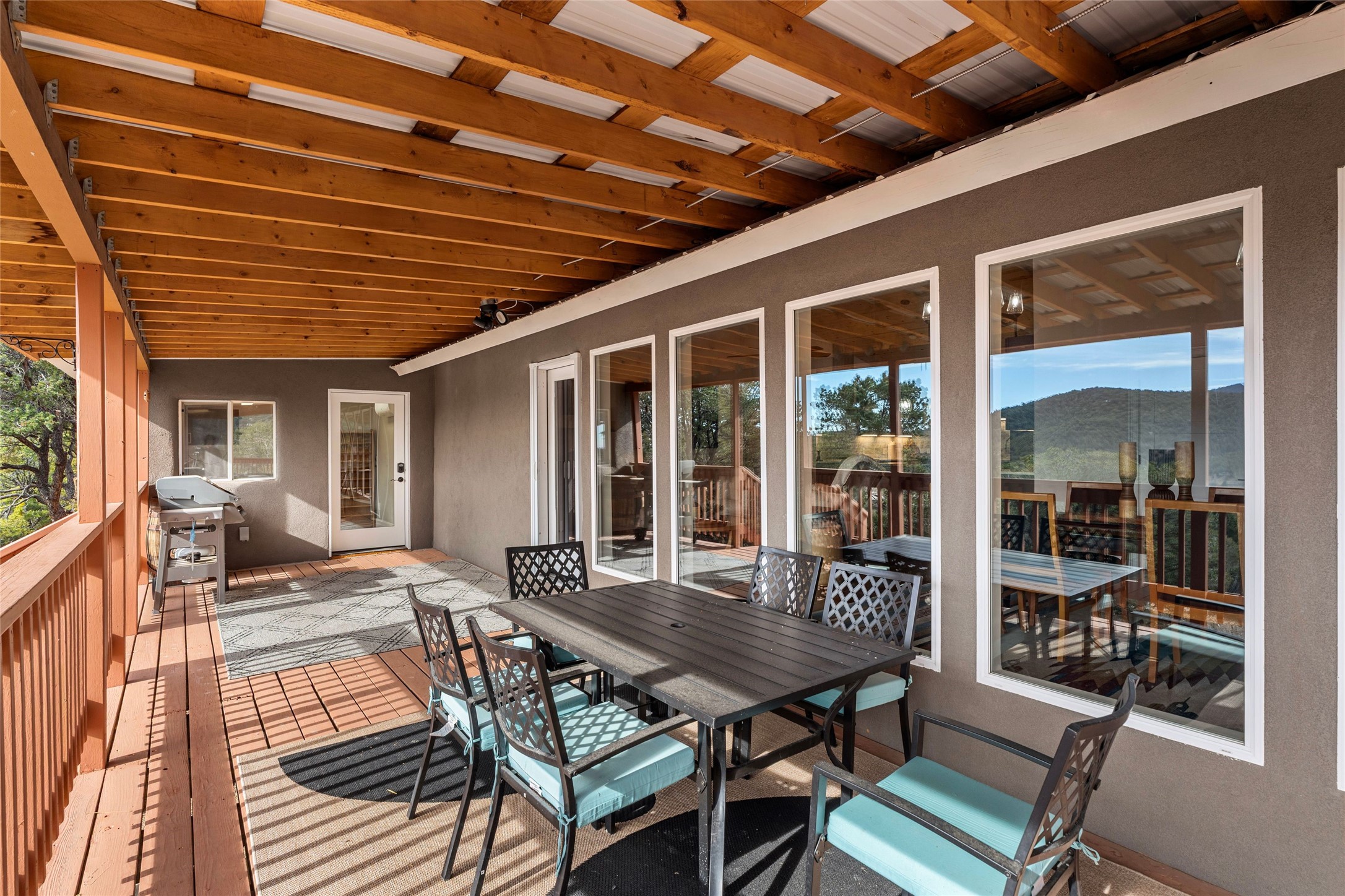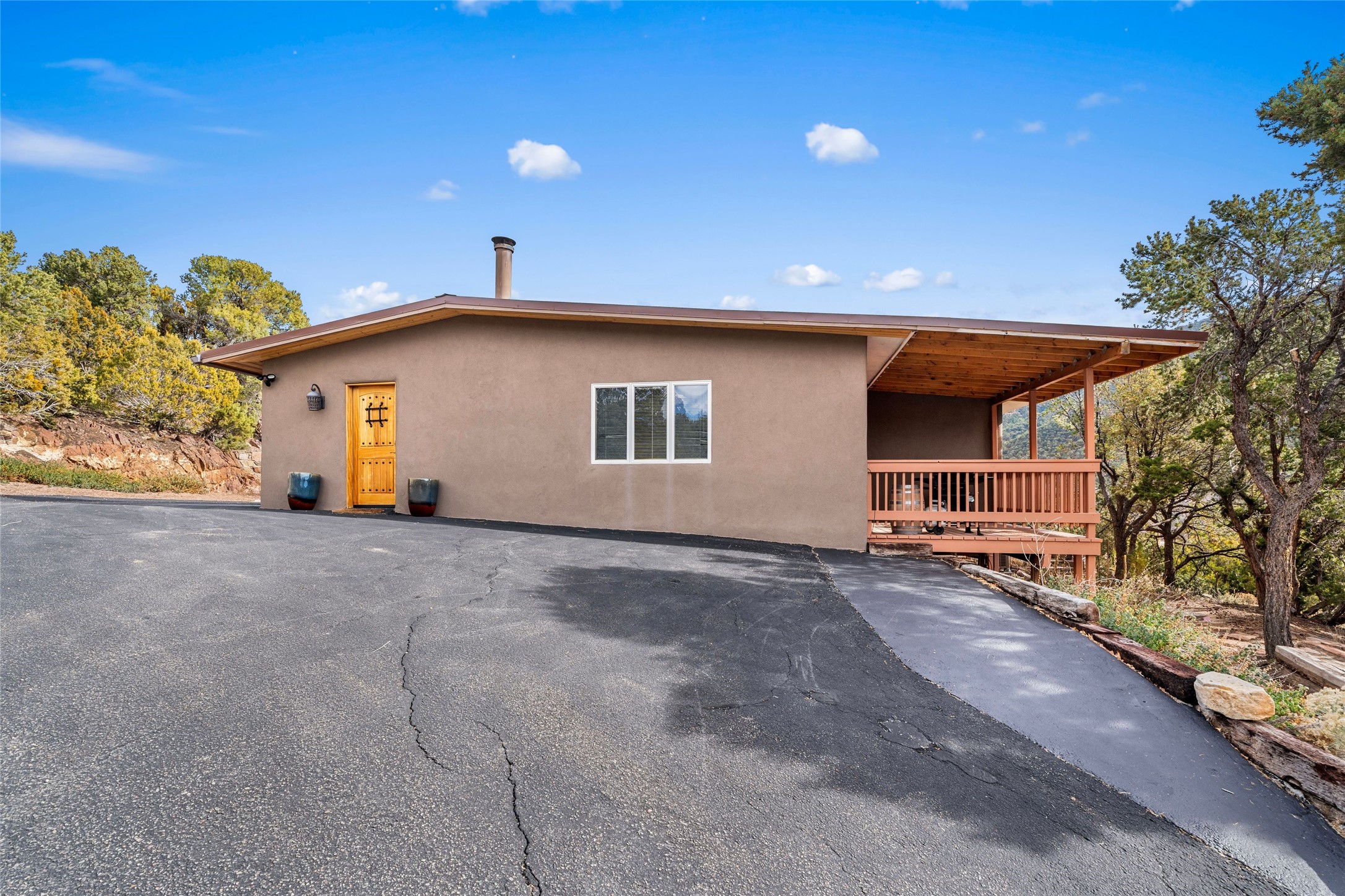 Panoramic views and timeless Santa Fe elegance perched above the Santa Fe River Valley, this beautifully reimagined residence offers three bedrooms plus an attached one-bedroom casita. A comprehensive renovation includes a new roof, stucco, windows, electrical, and HVAC, creating a home that blends contemporary comfort with enduring style. The main living area is defined by soaring ceilings, abundant natural light, and seamless indoor-outdoor flow to the south-facing porch--perfect for year-round enjoyment. The open kitchen features premium appliances, granite countertops, and a well-appointed butler's pantry with laundry and direct garage access. The expansive primary suite offers a walk-in closet and a luxurious ensuite bath, while two guest bedrooms with a Jack and Jill bath and a convenient powder room provide ample space and privacy. The attached casita, complete with a full kitchen, bath, and private porch, is ideal for guests or as an income-producing short-term rental. A separate heated and cooled studio off the porch offers additional flexibility for creative or work-from-home pursuits. Located on sought-after Cerro Gordo Road, this property combines refined design, exceptional functionality, and an enviable in-town setting close to everything Santa Fe has to offer. Easy to show--schedule your private viewing today.