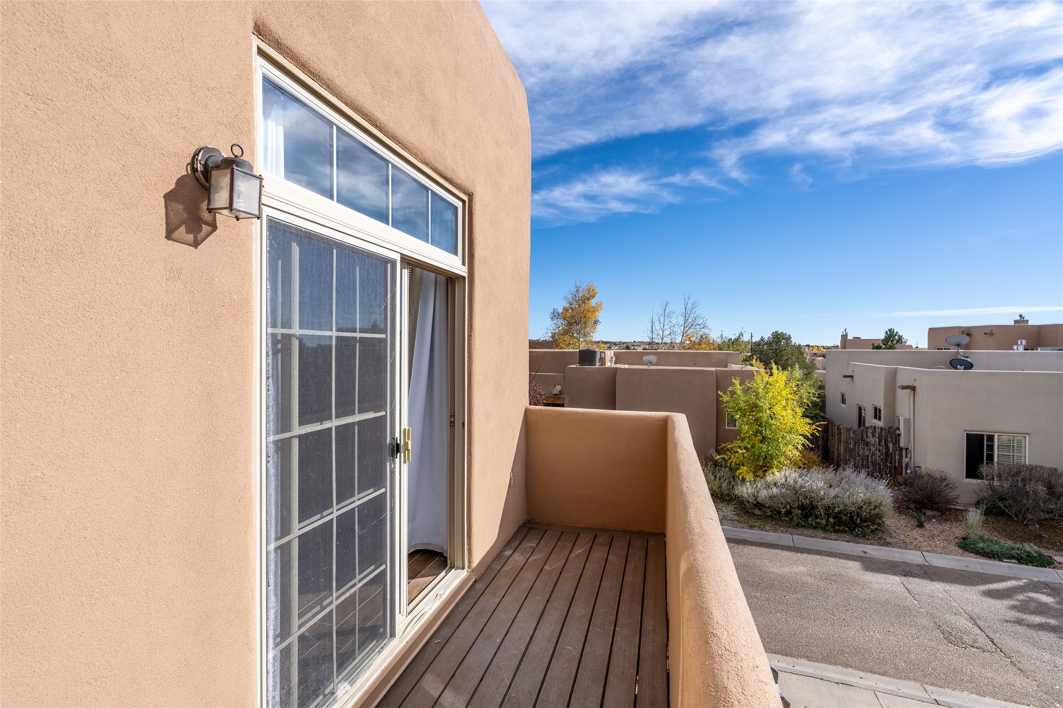 Prepare to be impressed! Tons of huge improvements by the owner make this home a show stopper, including new HVAC (heating and a/c) plus SOLAR which is designed so your monthly electric bill is insignificant! Other notable improvements include a brand new hot water heater (2022); complete kitchen and flooring updates (2023); and fresh paint, balcony, and bathroom upgrades (2025). This home is truly move-in ready and shines with pride of ownership in the highly sought-after Nava Ade community! A custom front door welcomes you inside, where soaring ceilings and plentiful windows fill the great room with natural light and warmth. Wood-look tile floors provide a grounding complement to the freshly painted modern palette, while the rock-tiled fireplace adds texture and character. The kitchen is a delight with new cabinetry, granite countertops and backsplash, and newer stainless steel appliances. Throughout the home, wood accents create a sense of harmony and style, and the thoughtful floor plan offers excellent bedroom separation. Upstairs, the spacious primary suite features a large walk-in closet and an elegantly updated bath with a new walk-in shower, soaking tub, and dual vanities. Step onto the private deck to take in views of the distant mountain ranges--a perfect spot for morning coffee or evening sunsets. Downstairs, two comfortable guest bedrooms share a full bath, and the laundry room adds everyday convenience. The detached two-car garage offers extra storage, and the fully fenced backyard is beautifully landscaped for easy outdoor living. Nava Ade residents enjoy access to a community clubhouse with fitness facilities and a pool, and the neighborhood's walking trails and nearby parks make it easy to enjoy Santa Fe's outdoor lifestyle. Shopping, dining, and services are all just minutes away.