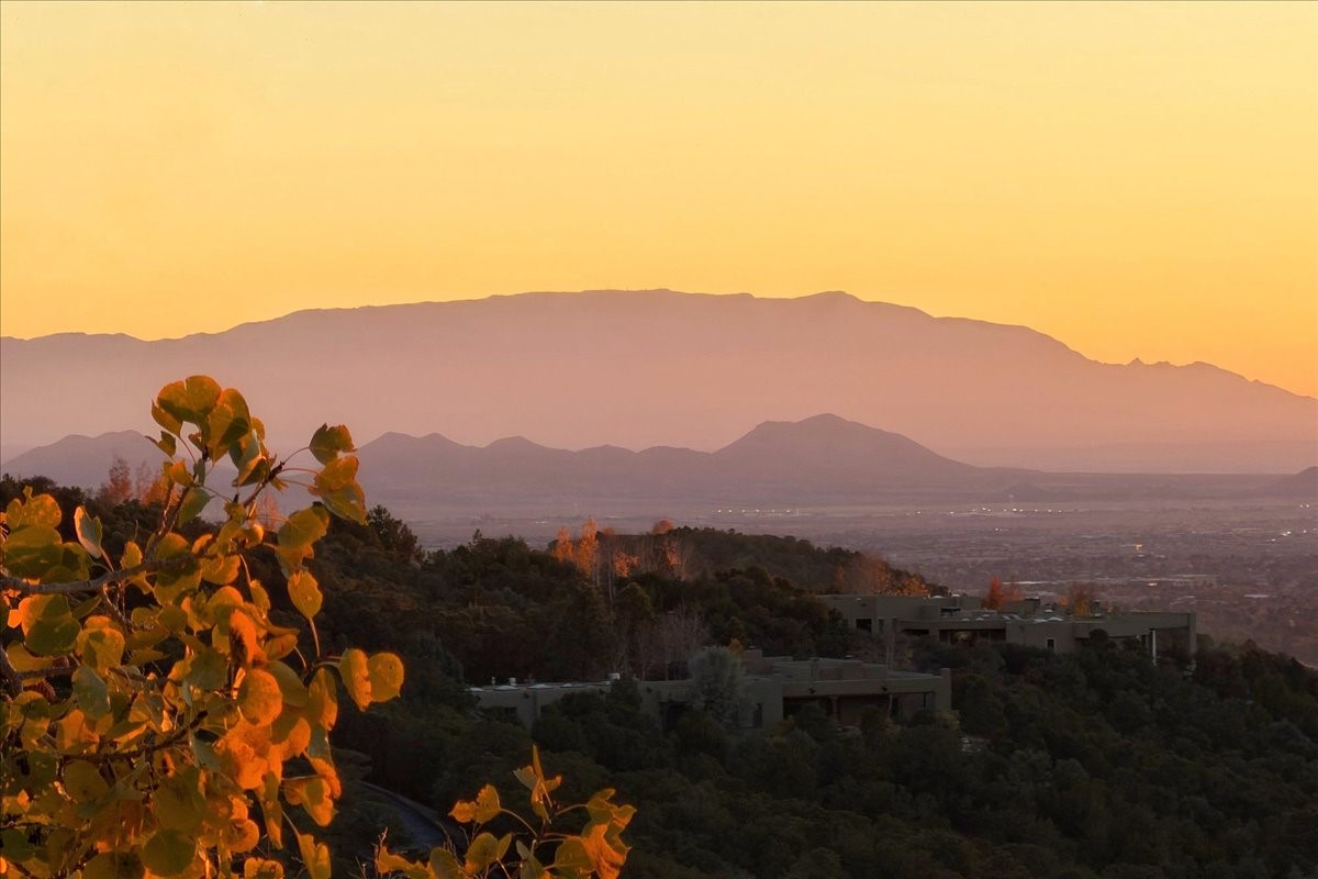 Whispering Hill--where nature's quiet beauty keeps its own gentle secrets. Set within Hyde Park Estates, this architectural statement captures panoramic vistas that are rare even for Santa Fe--a dramatic sweep of horizon, sculpted mountains, and ever-changing light. Designed with a flexible five-bedroom layout, Whispering Hill offers versatility without sacrificing elegance. The main level functions as a complete living environment, ideal for those who prefer life without stairs. A tranquil primary suite, sophisticated gathering areas, and rare hardwood cabinetry set a tone of refined luxury from the moment you arrive. Throughout the residence, artisan ceilings--each one individually crafted--serve as sculptural centerpieces across both levels and extend to the outdoor entertaining terrace, where their artistry meets the surrounding landscape with extraordinary effect. The Media Room, anchored by a gigantic viewing screen, was envisioned for cinema, live sporting events, and immersive entertainment--an atmospheric space designed for true enjoyment. The lower level continues the architectural flow with a second primary suite and additional bedrooms, each offering direct outdoor access to terraces, pathways, and quiet corners of the landscape. Outdoor living expands with multiple areas to gather, including a radiant-heated portal, a GreenHouse, secluded seating spaces designed for unplugged relaxation, and a private hot tub positioned just outside one of the lower-level bedrooms--a serene vantage point for stargazing and quiet evenings. From the elevated main terrace, you can see 10,000 Waves, Santa Fe's renowned Japanese-inspired spa nestled among the pines. Across the grounds, irrigated landscaping enhances the natural contours of the site, ensuring year-round beauty, color, and ease of care. Climate comfort is thoughtfully supported by eight strategically placed mini-splits for individualized heating and cooling, working in tandem with the primary systems to ensure four-season comfort at altitude. A pre-listing home inspection has already been completed, offering added transparency and confidence for prospective buyers. Minutes from the Santa Fe Plaza, Whispering Hill is an exceptional choice for those seeking either a full-time luxury residence or an elevated secondary retreat. With premium upgrades far too numerous to list, rare materials, master craftsmanship, and one of Santa Fe's most compelling vantage points, Whispering Hill stands as a true Santa Fe masterpiece--a seamless fusion of design, nature, and elevated mountain living.