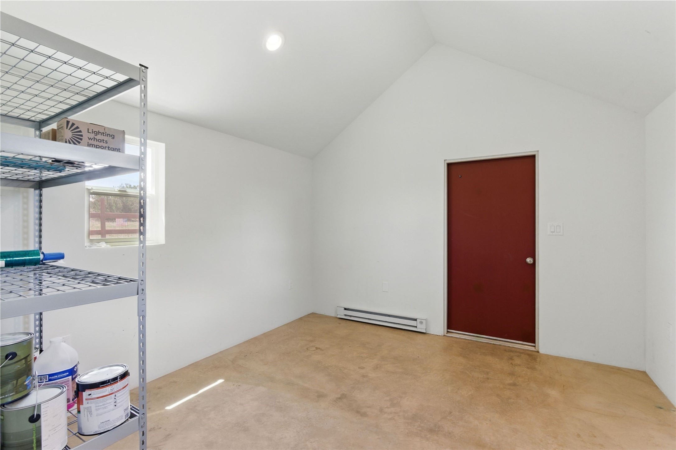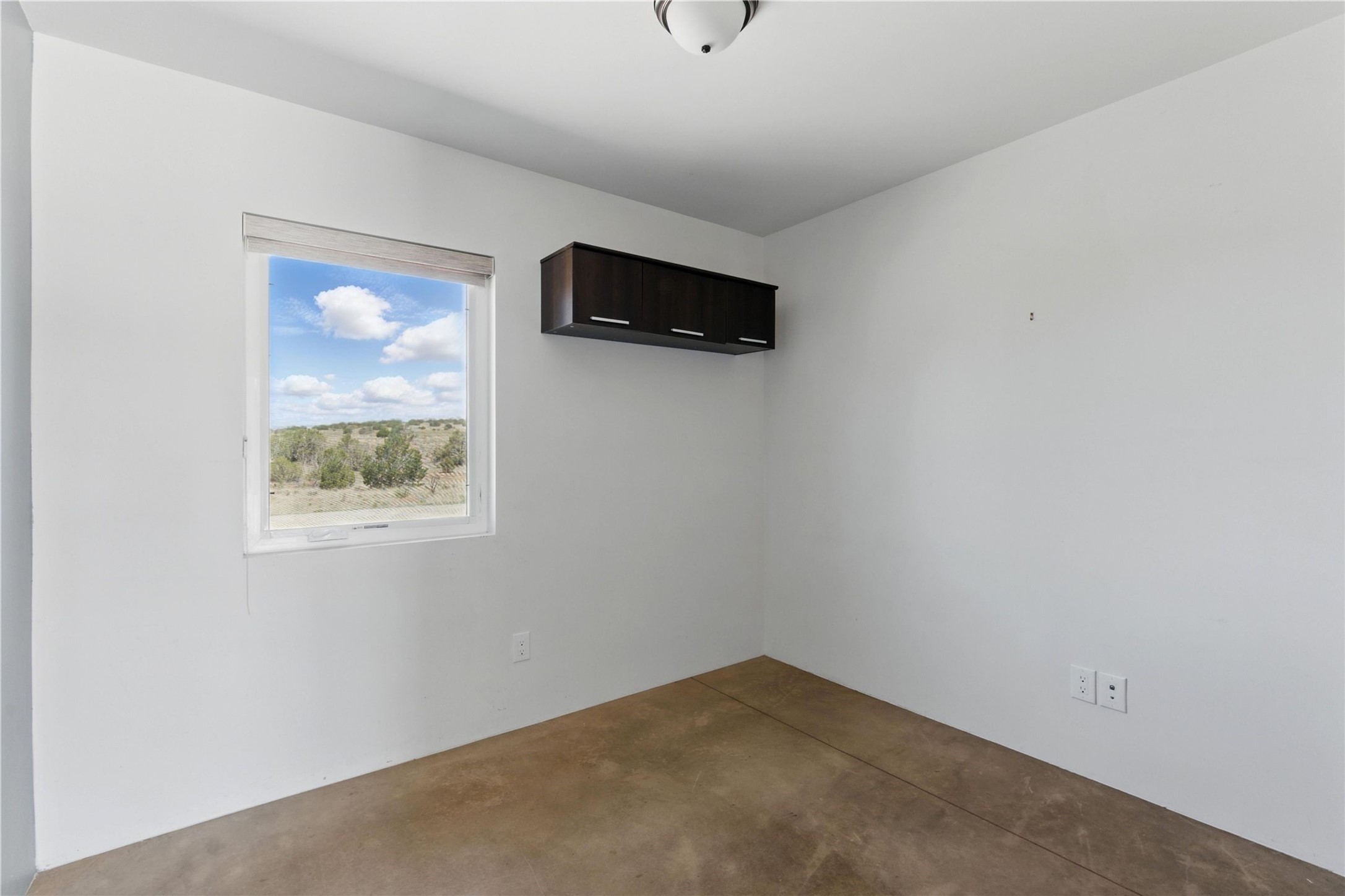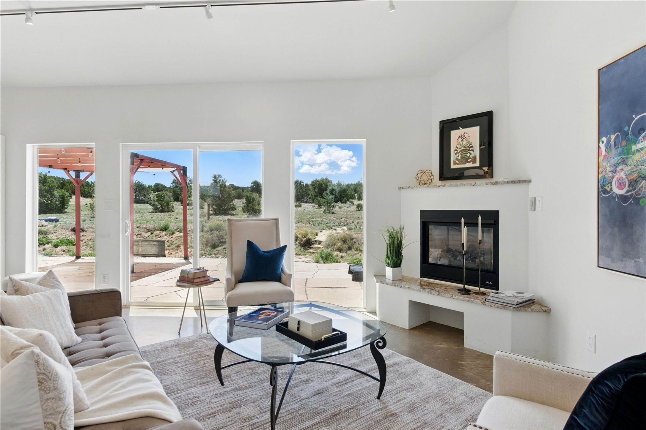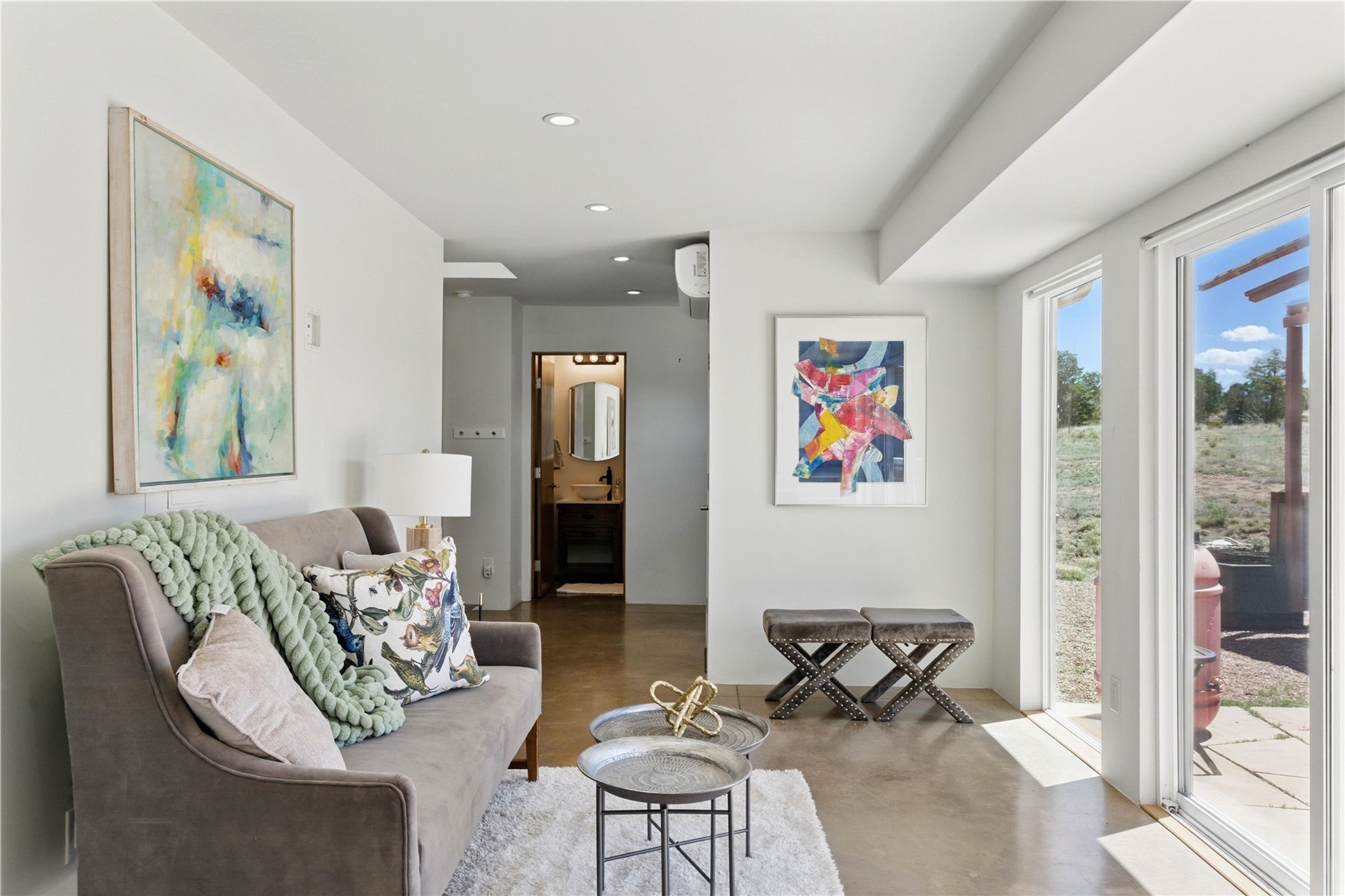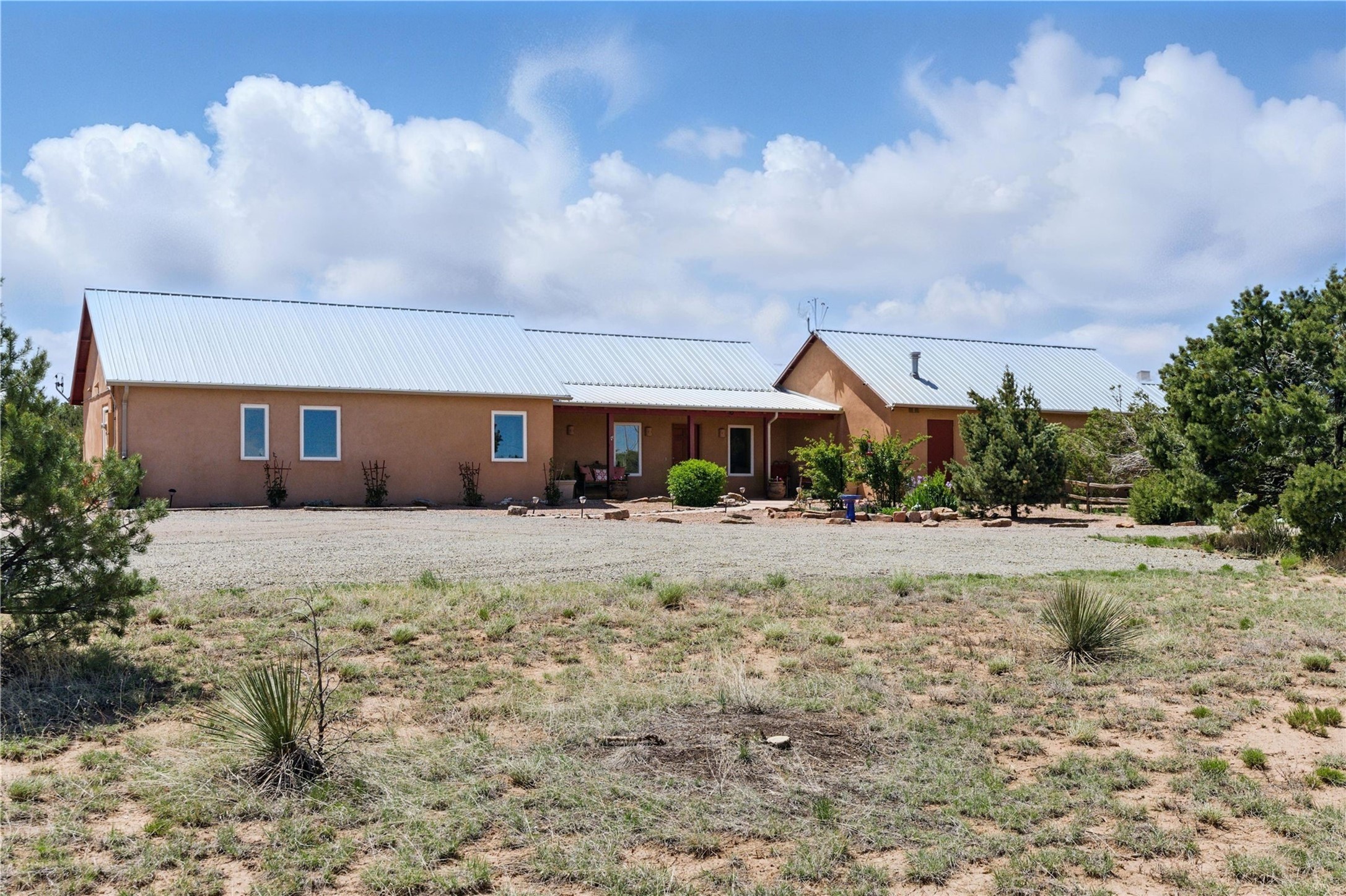 Priced at $589,000, this pitched-roof, four-bedroom, two-bath, Northern-New-Mexico style home on 4.85 acres represents an absolute bargain value to any sophisticated buyer who has researched Santa Fe home prices (for a virtual tour, visit 34RanchRoad.com). Designed by architect Bruce Davis, this single-story contemporary home in Lamy offers ample separation between the primary suite on the west side and the guest bedrooms on the east. As you enter, you'll walk into the open-concept living room, with the contemporary kitchen (with bright granite countertops, stainless appliances, and an island stove) on the left. The home is defined by the quality of the natural light in virtually every room. Davis designed the home to take advantage of the north/south facing layout in its passive-solar design. Radiant heat runs through stained concrete floors and mini splits provide heating and cooling. A hidden door in the primary bedroom opens into a heated studio, which also has access to the exterior. There is a 220-volt outlet near the parking area for RV use or to convert to EV charging use (it's also set up on the other side for the hot tub). Outside covered pergola and barbeque hut add to your enjoyment. Two horses are allowed. One of the sellers is a New Mexico real estate licensee. There are two additional lots available on the north side, each at $169,500. Please see MLS 202402587 and 202402586 (24 and 30 Ranch Road). Please note that the property is being sold in its current condition. The seller will make no repairs or concessions. An open house will be held Sunday November 23 from 1:00 to 4:00 pm.