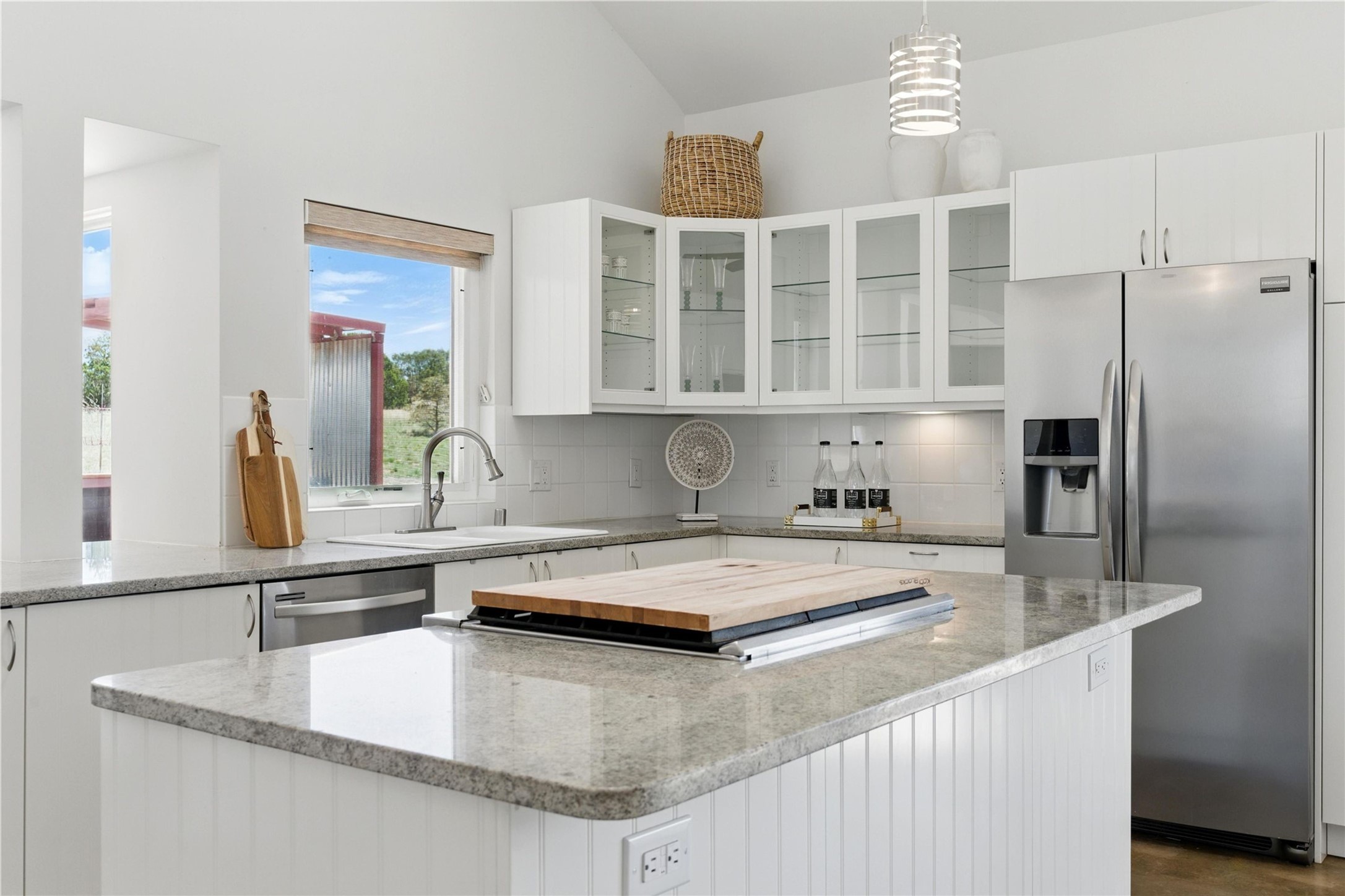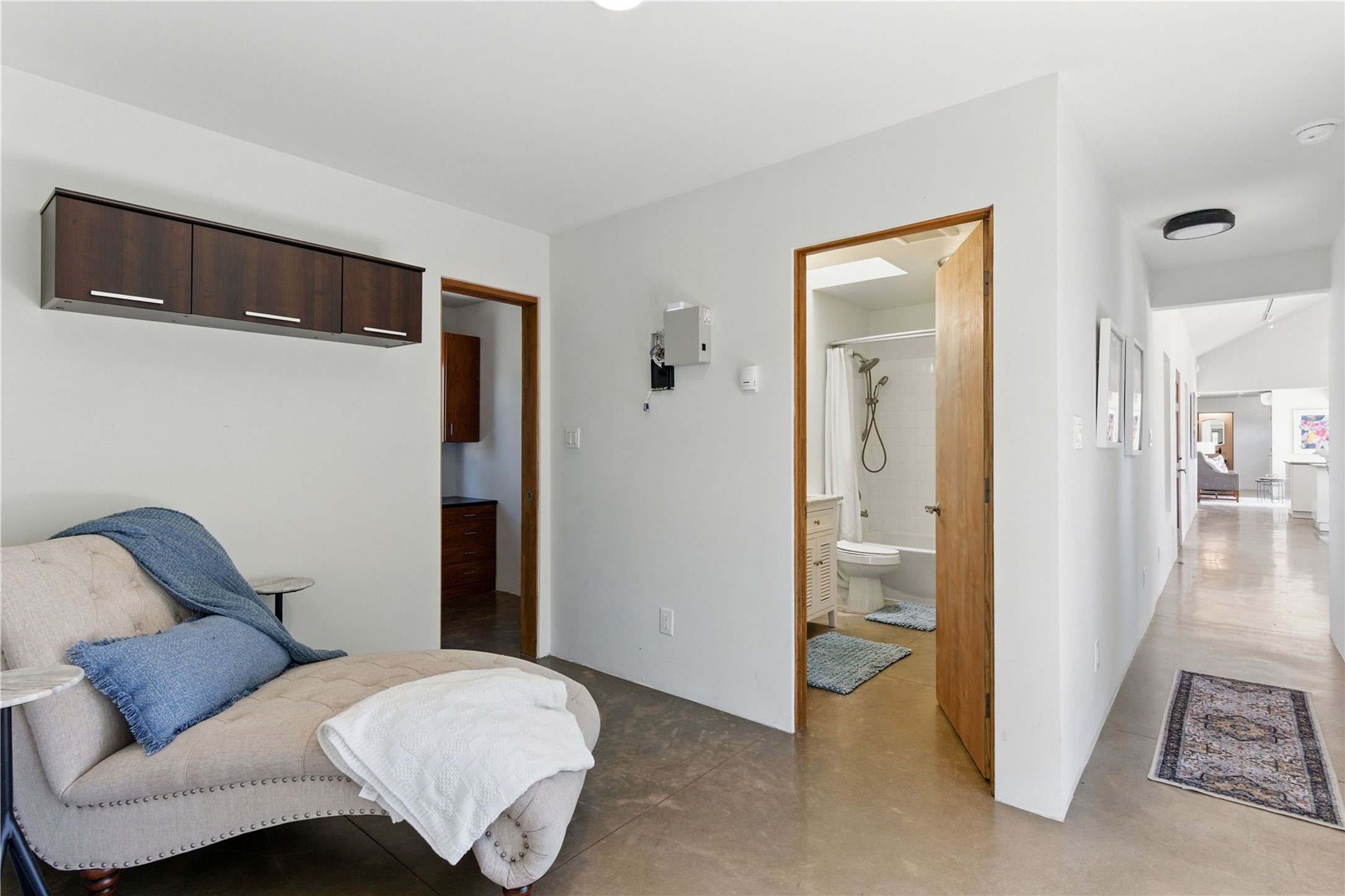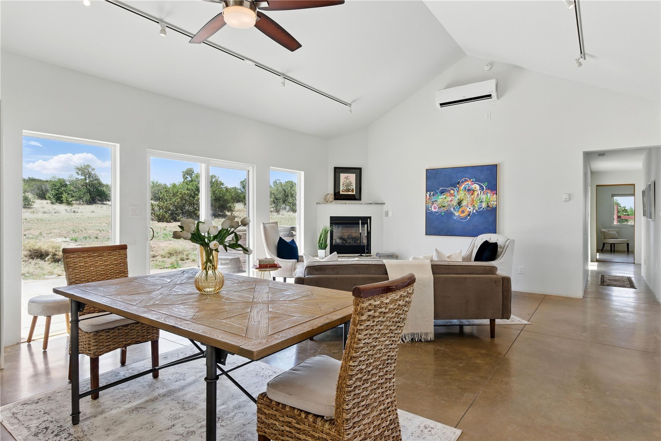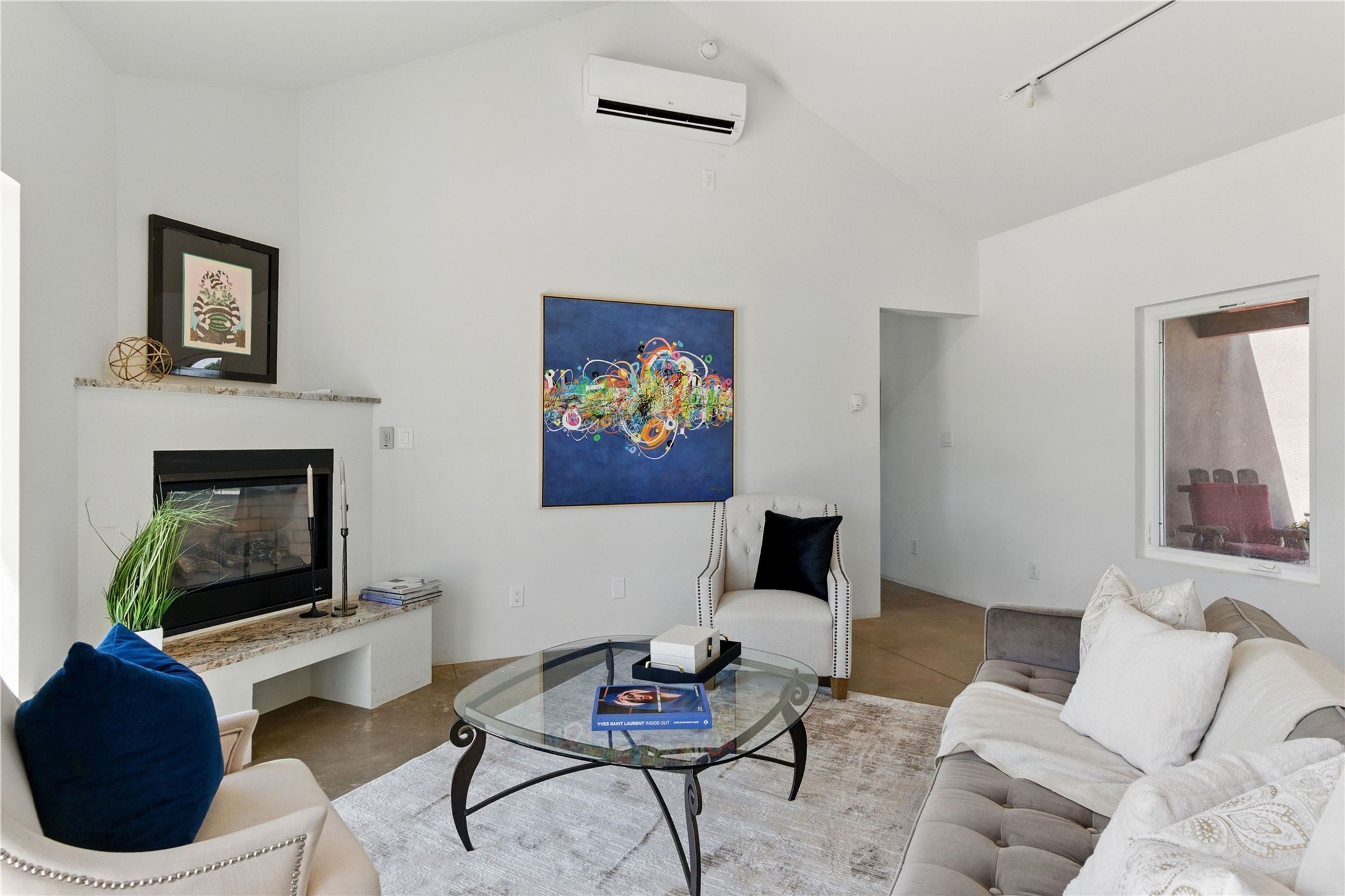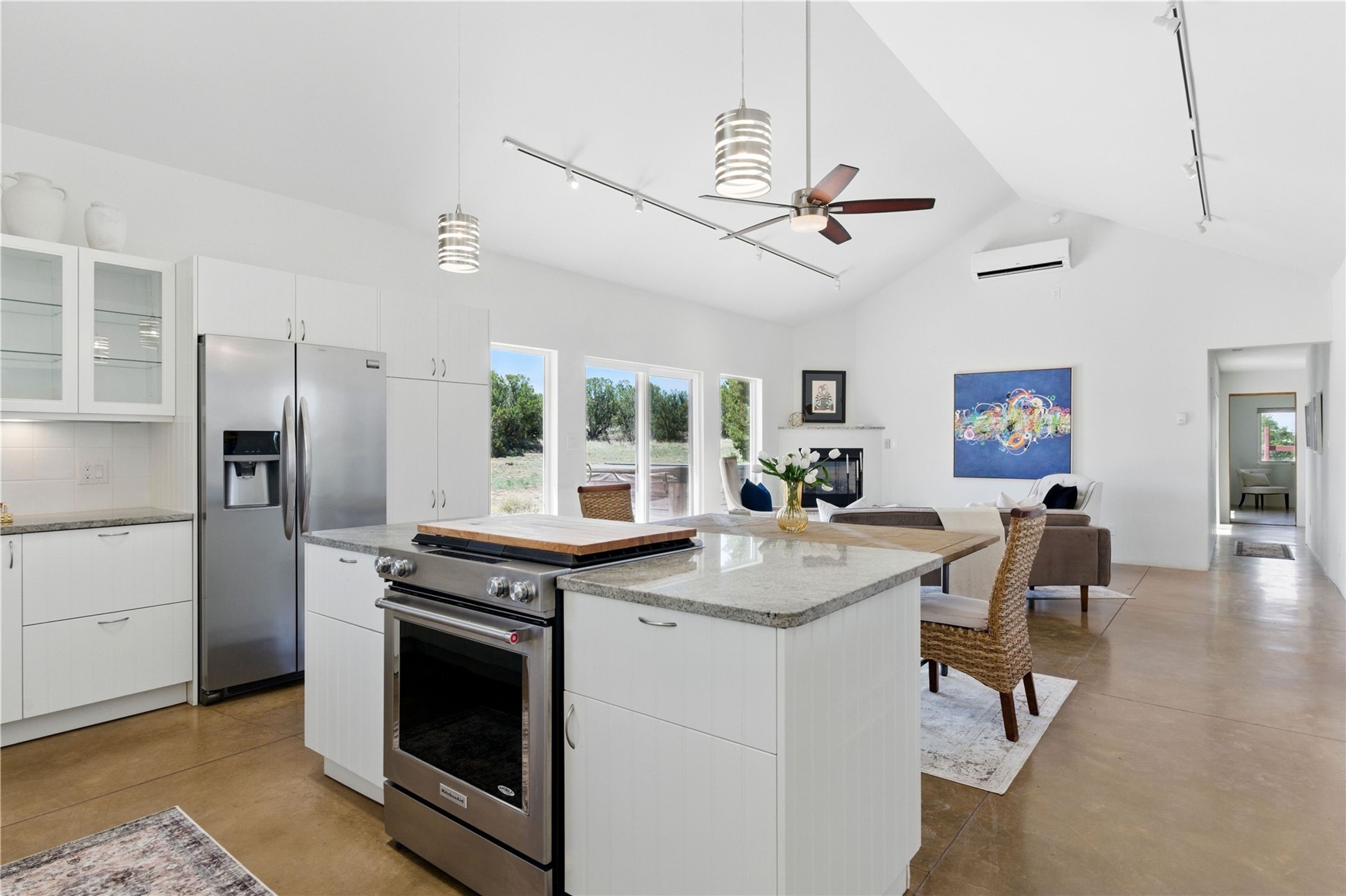 Priced at $589,000, this pitched-roof, four-bedroom, two-bath, Northern-New-Mexico style home on 4.85 acres represents an absolute bargain value to any sophisticated buyer who has researched Santa Fe home prices (for a virtual tour, visit 34RanchRoad.com). Designed by architect Bruce Davis, this single-story contemporary home in Lamy offers ample separation between the primary suite on the west side and the guest bedrooms on the east. As you enter, you'll walk into the open-concept living room, with the contemporary kitchen (with bright granite countertops, stainless appliances, and an island stove) on the left. The home is defined by the quality of the natural light in virtually every room. Davis designed the home to take advantage of the north/south facing layout in its passive-solar design. Radiant heat runs through stained concrete floors and mini splits provide heating and cooling. A hidden door in the primary bedroom opens into a heated studio, which also has access to the exterior. There is a 220-volt outlet near the parking area for RV use or to convert to EV charging use (it's also set up on the other side for the hot tub). Outside covered pergola and barbeque hut add to your enjoyment. Two horses are allowed. One of the sellers is a New Mexico real estate licensee. There are two additional lots available on the north side, each at $169,500. Please see MLS 202402587 and 202402586 (24 and 30 Ranch Road). Please note that the property is being sold in its current condition. The seller will make no repairs or concessions. An open house will be held Sunday November 23 from 1:00 to 4:00 pm.