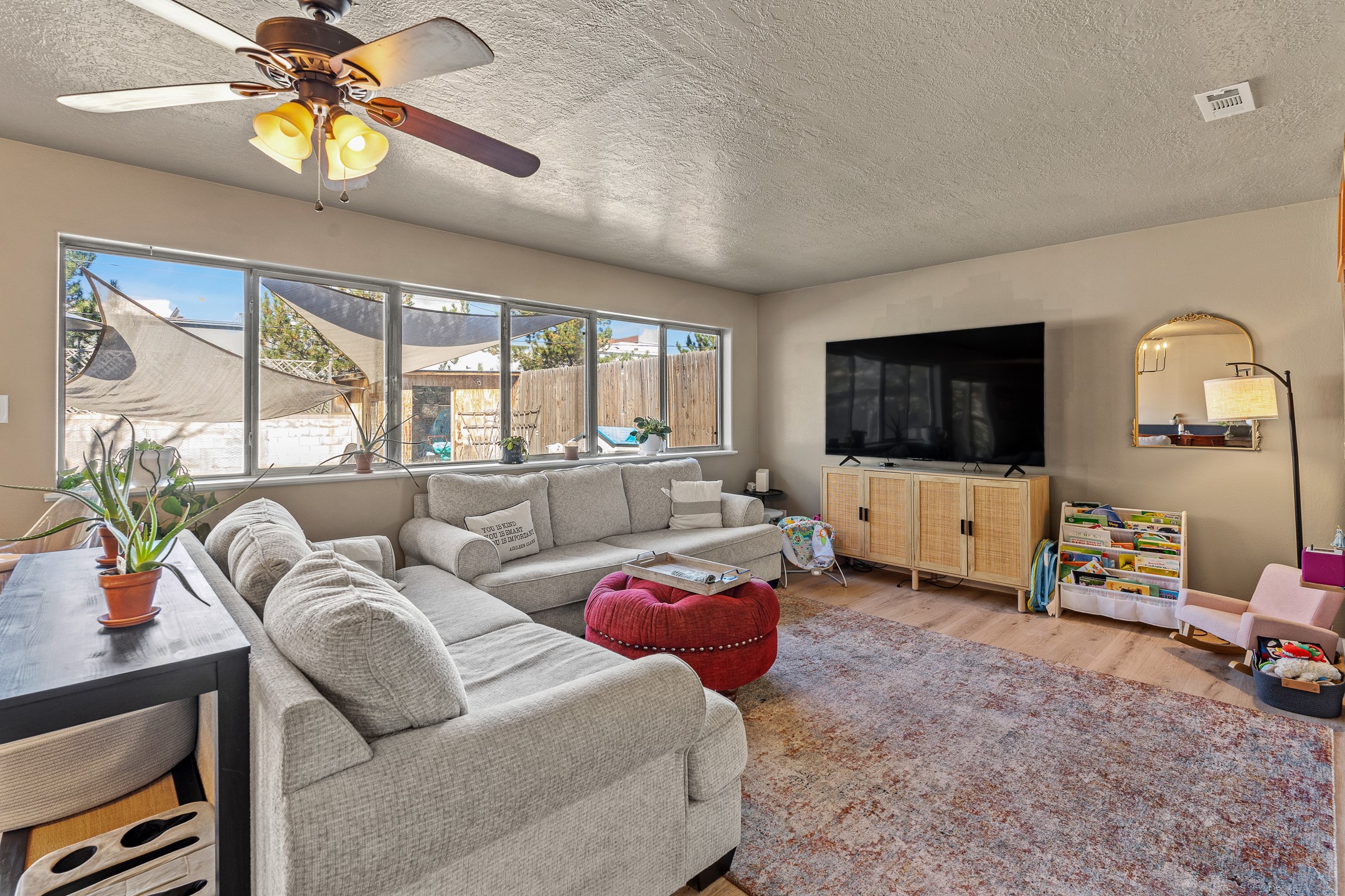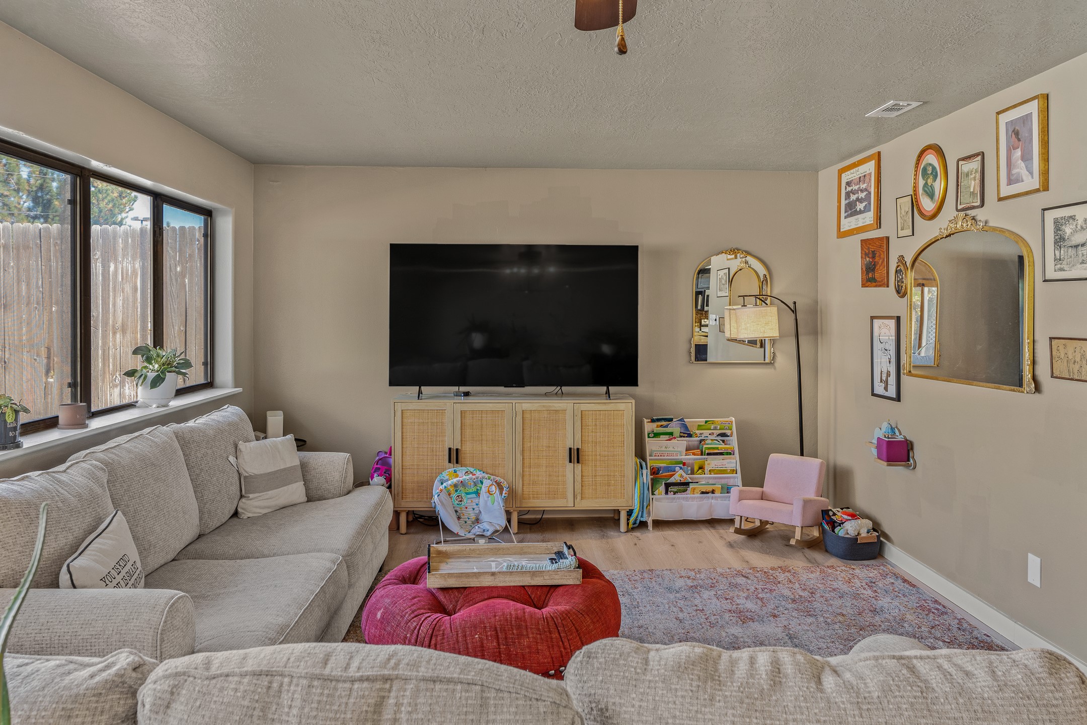 Discover comfort and convenience in this charming 3-bedroom, 2-bath home ideally situated in a central location close to shopping, dining, and major amenities. Featuring a blend of stylish LVP flooring and classic Saltillo tile, the home offers both warmth and durability throughout its spacious layout.The inviting living room flows seamlessly into the updated kitchen, showcasing stainless steel appliances, generous counter space, and an open design that connects easily to the den and dining area. A built-in seating area provides great storage, complemented by two coat closets for added functionality. Just off the kitchen, a large pantry and storage room offer excellent organization and direct access to the one-car garage.Abundant natural light highlights the home's thoughtful design. Two comfortable bedrooms share an oversized bath, while the private primary suite features a spacious walk-in closet, a luxurious oversized bath, and additional closet space.Enjoy easy indoor-outdoor living with backyard access from both the primary bedroom and the den--perfect for entertaining, morning coffee, or quiet evenings outdoors.This home combines modern updates, flexible living spaces, and a prime central location--ready for you to move in and make it your own!