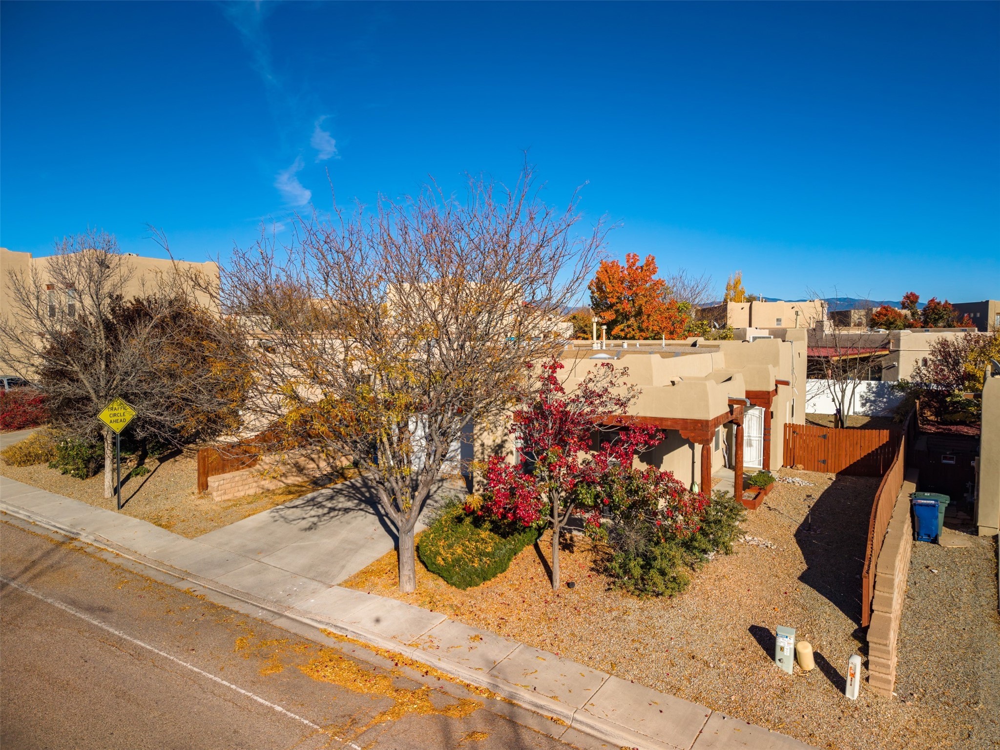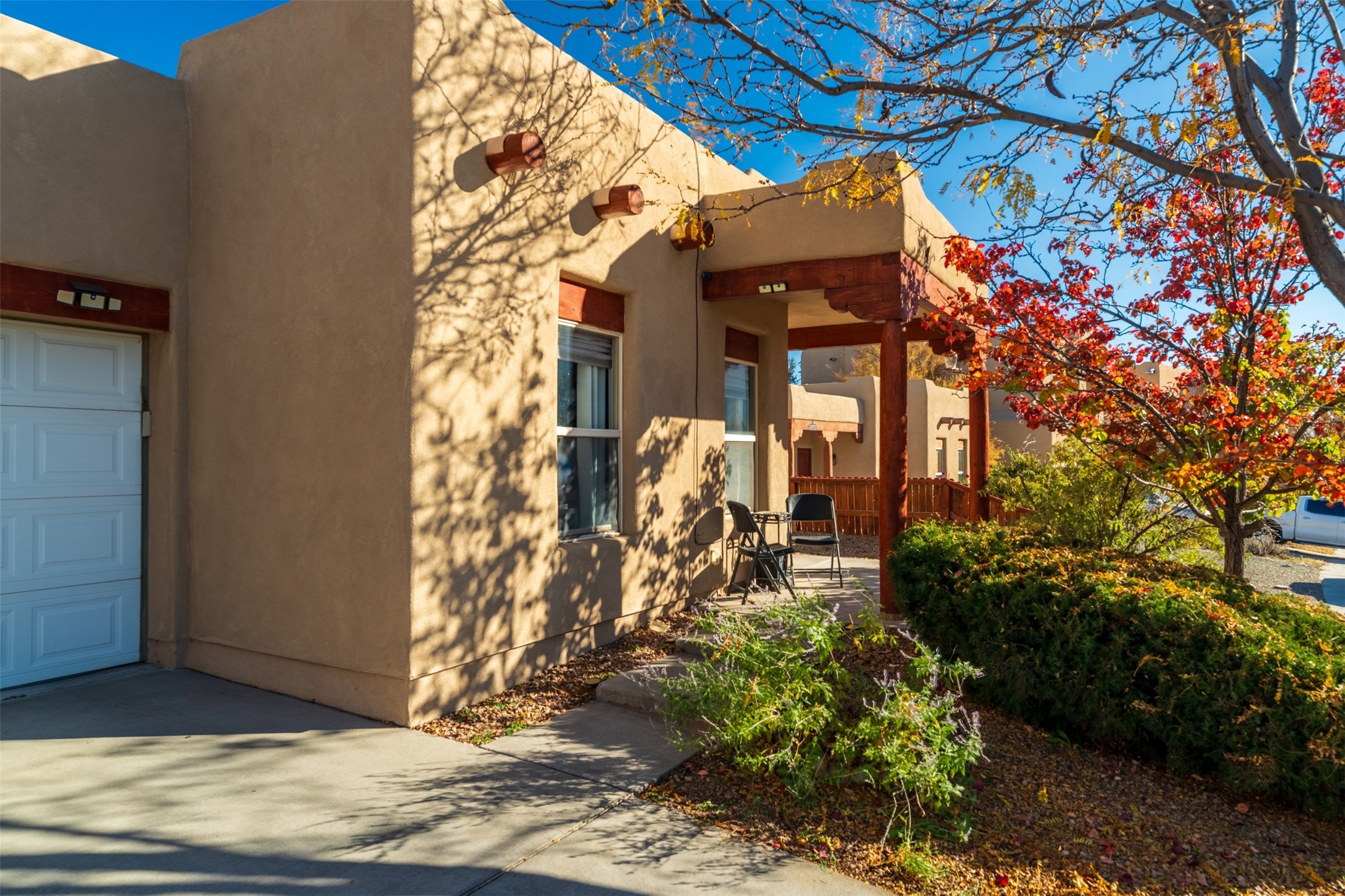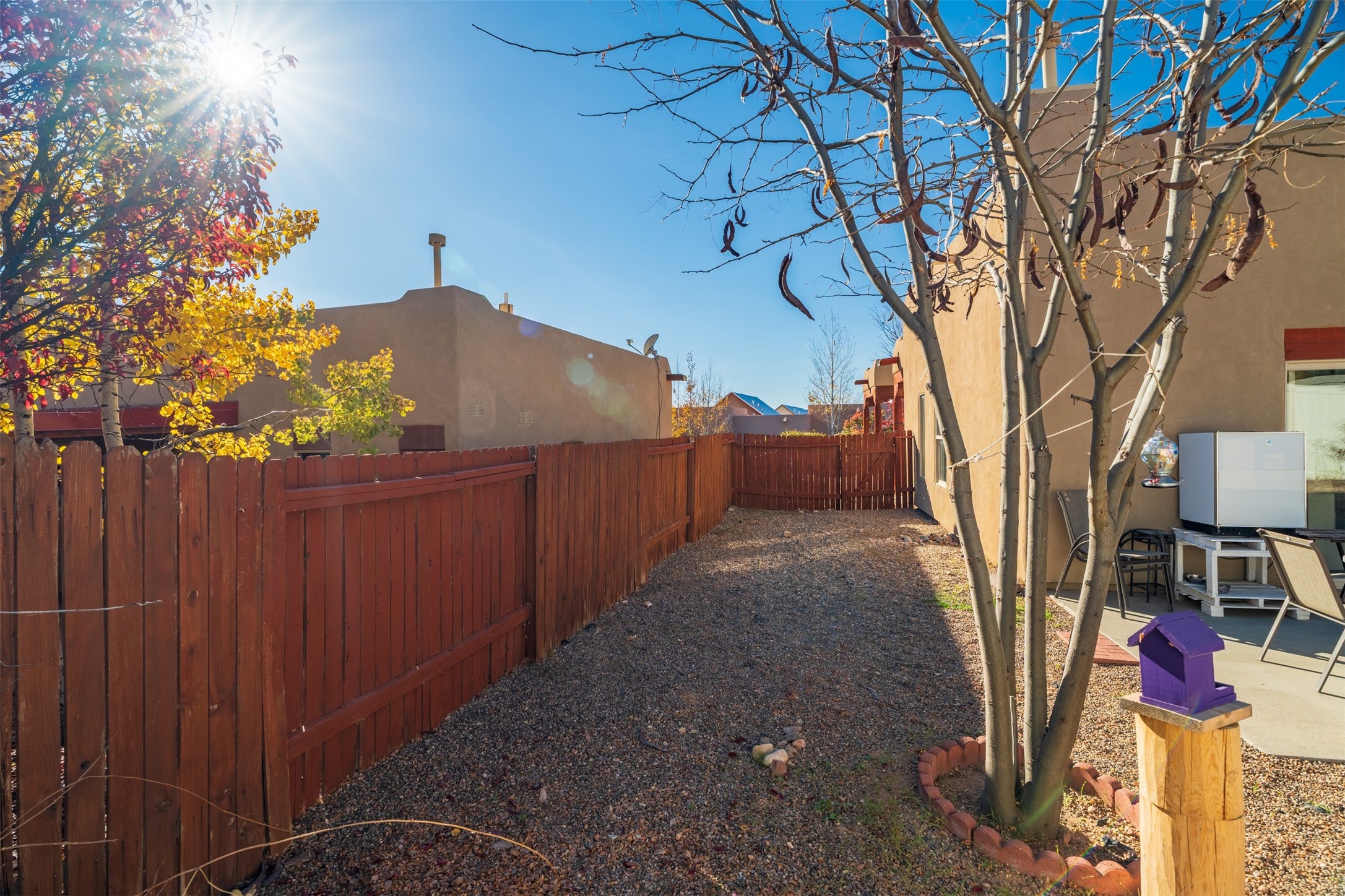 Impeccably maintained and move-in ready, this 3-bedroom, 2-bathroom residence in Tierra Contenta combines comfort, character, and convenience. The expansive living area boasts vaulted ceilings and a welcoming gas kiva fireplace, ideal for both relaxation and entertaining. Constructed in 2006, this single-level home encompasses approximately 1,359 square feet, a two-car garage, and numerous thoughtful updates.Stove, refrigerator, and microwave were recently replaced, and a mini split was installed in 2021, providing enhanced year-round comfort. Roof maintenance was completed in 2024, ensuring peace of mind and longevity.The recently landscaped yard features rose bushes, an apple tree, pine, locust, and sycamore trees, providing a tranquil outdoor retreat. With Pueblo-style stucco exterior, tile and laminate flooring, forced-air heating, and evaporative cooling, the property offers both functionality and aesthetic appeal. Situated near schools, parks, and shopping, this home presents an exceptional opportunity in a vibrant and expanding Santa Fe community.