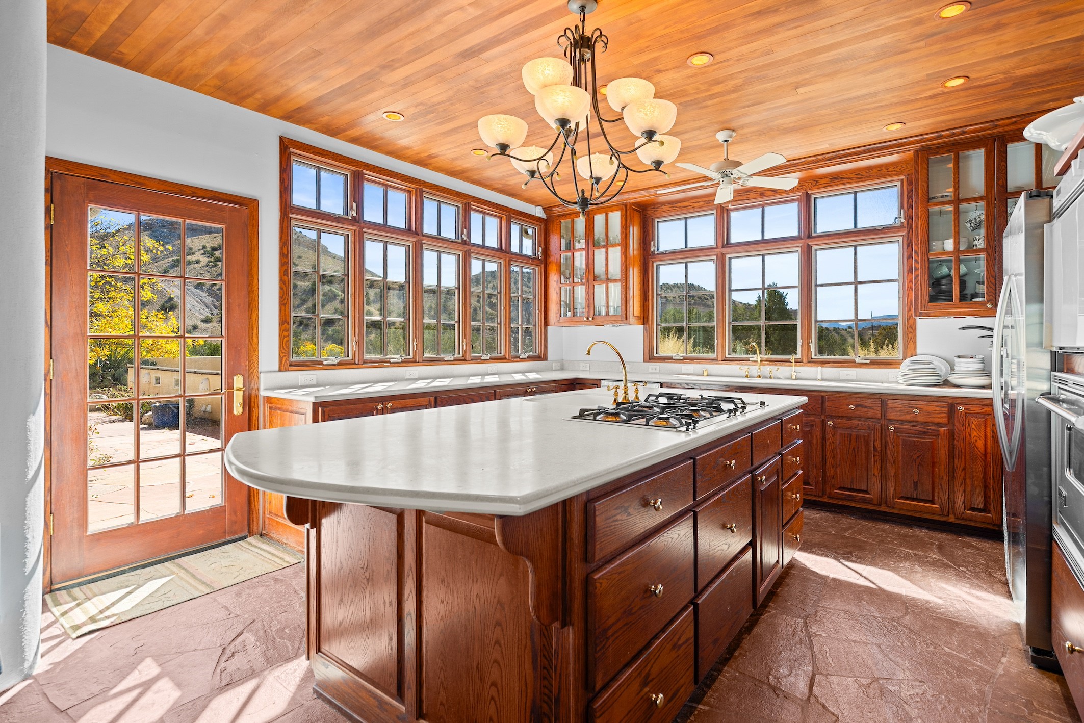 Shirley MacLaine's Plaza Blanca Ranch, set in the stunning landscapes of Abiqui, New Mexico, is where the beauty of the natural world and spiritual peace converge. The ranch, spanning 7,451 acres, is tucked into the dramatic, otherworldly scenery of northern New Mexico's high desert, and it is surrounded by the kind of striking geological features that have inspired artists, photographers, and writers for generations.Plaza Blanca is perhaps best known for its unique white sandstone formations at the ranch's entrance, which rise sharply from the earth to evoke both the surreal and the sublime. These striking "white place" cliffs were immortalized by the painter Georgia O'Keeffe, who was deeply inspired by the area. This legendary ranch also has thousands of acres of piion/juniper forest interspersed with native grasses. The ranch offers sweeping views of the surrounding Chama River Valley, with its red rock mesas, distant mountains, and vivid sunsets that fill the sky with a spectrum of colors.The large 9,000+ square foot hacienda-style home, originally completely off-grid, now features grid-tied solar and wind power, a courtyard, and water supplied from an artesian water well. A caretaker's home, barn, and workshop are all conveniently situated near the hacienda.The expansive ranch shares a 7 mile border with the Carson National Forest, and the terrain features a variety of geologically significant features, with elk, mule deer, and other wildlife cruising the property. The ranch offers the chance to explore thousands of acres for geological anomalies and Native American petroglyphs, several of which have been discovered on the property. Plaza Blanca Ranch has been owned by Ms. MacLaine since 1990, making this a rare opportunity to acquire an iconic property.