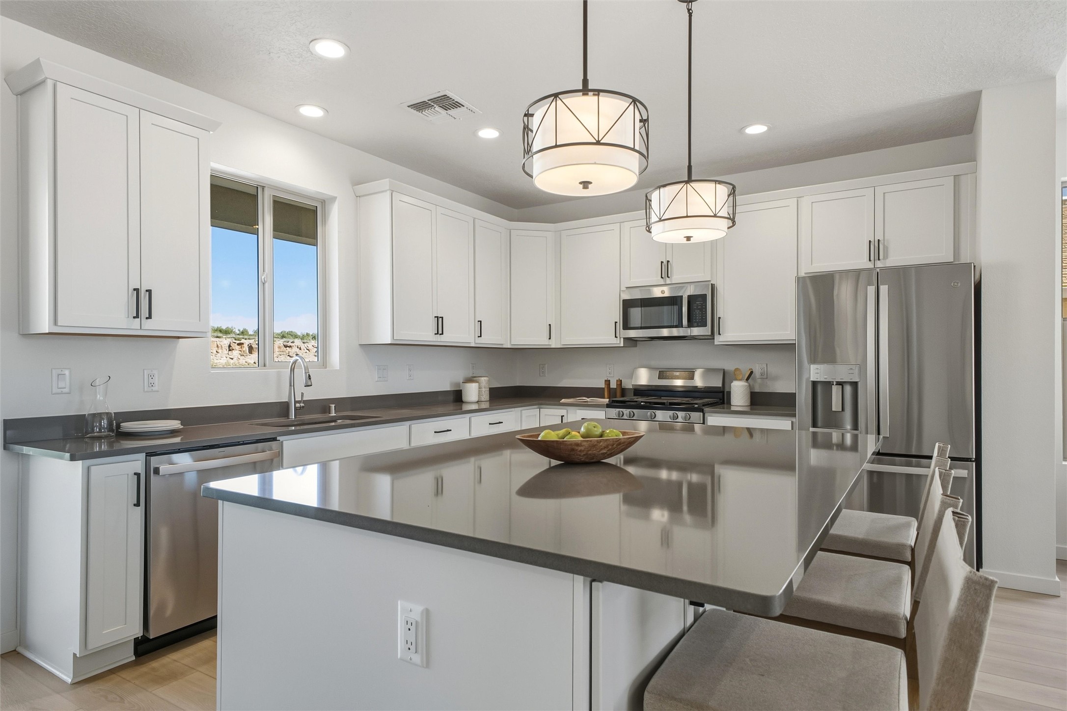 Step into modern comfort with this stunning brand-new 3 bedroom, 2 bathroom home, thoughtfully designed with energy efficiency and long-term peace of mind at the forefront. This move-in-ready residence features an open, light-filled layout with beautiful contemporary finishes, sleek fixtures, and quality craftsmanship throughout.The spacious kitchen flows seamlessly into the dining and living areas, creating an inviting space perfect for everyday living, enjoy the convenience of a 2-car garage, and the security of a 2-10 warranty. Step outside to a fully landscaped backyard--a rare turnkey treat--where you can relax and soak in the scenic views right from your own space.With modern design, efficiency, warranty, and a truly move-in-ready presentation, this home is the perfect blend of style, comfort, and value. Your new beginning starts here.