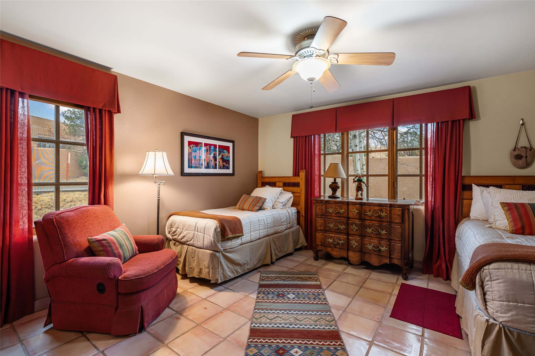 Experience timeless Santa Fe Style and classic charm in this beautifully maintained lock-and-leave condo located within one of Santa Fe's premier golf resort communities. The inviting residence offers a functional, well-designed layout enhanced by authentic architectural details. Enjoy serene mornings in the lovely front courtyard, and unwind in the evenings on the alluring rear portal, perfect for outdoor dining or quiet relaxation. Great separation of bedrooms, this two bedroom two bathroom home is ideal with a light and bright kitchen nook which could easily function as an office or ideal relaxation area. Optimally situated on a corner lot and walkable to the clubhouse. Set within a resort known for its impeccably kept grounds, residents have access to an array of top-tier amenities, including a state-of the-art pool and fitness areas, pickleball and tennis courts, 24 hour hosted security for peace of mind and much more. Whether you're seeking a full-time residence or the ideal low-maintenance get away, this exceptional property captures the essence of Santa Fe living with comfort, convenience and style. Home ownership at Quail Run includes all of its fabulous amenities.