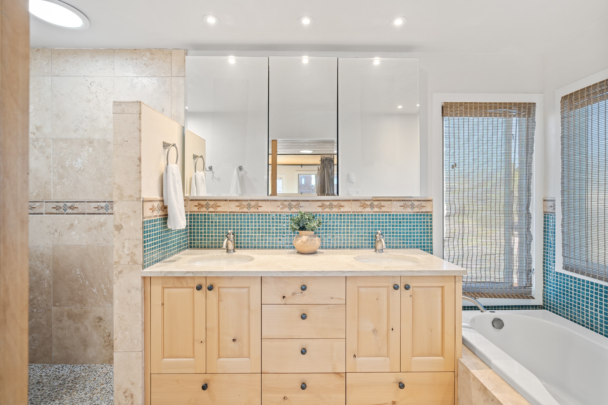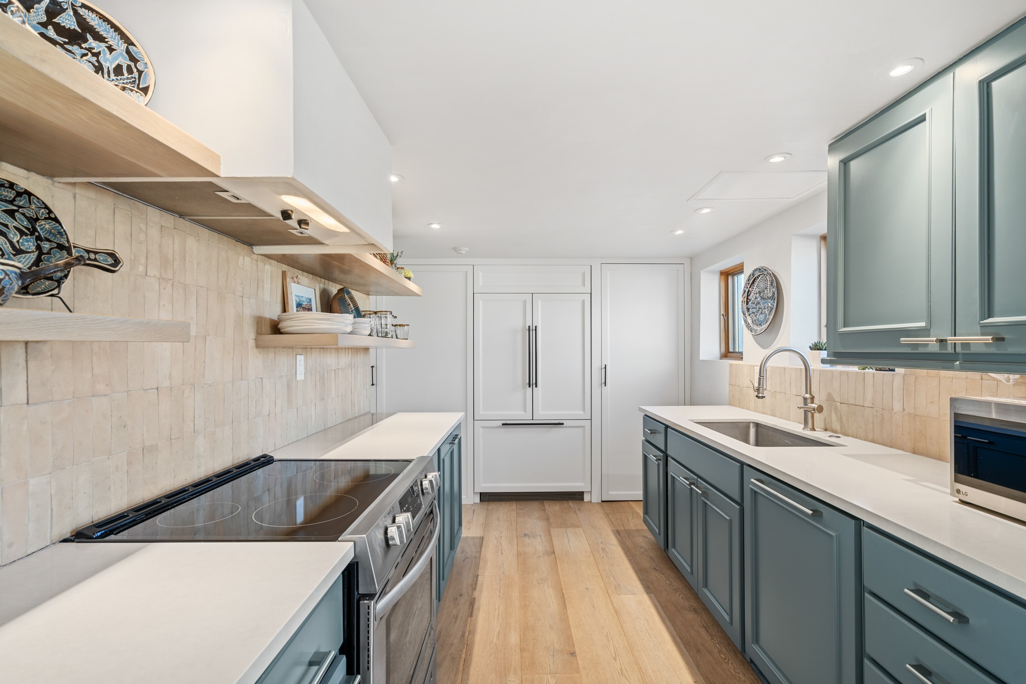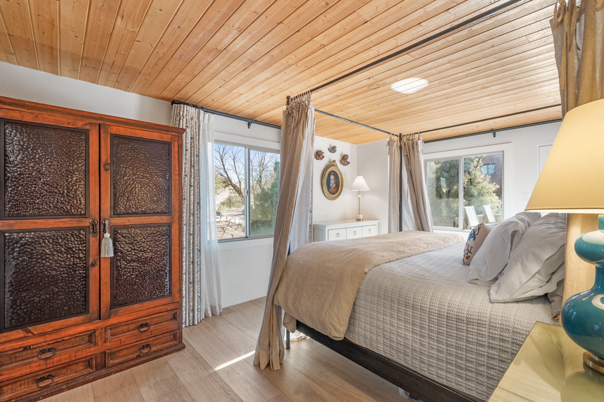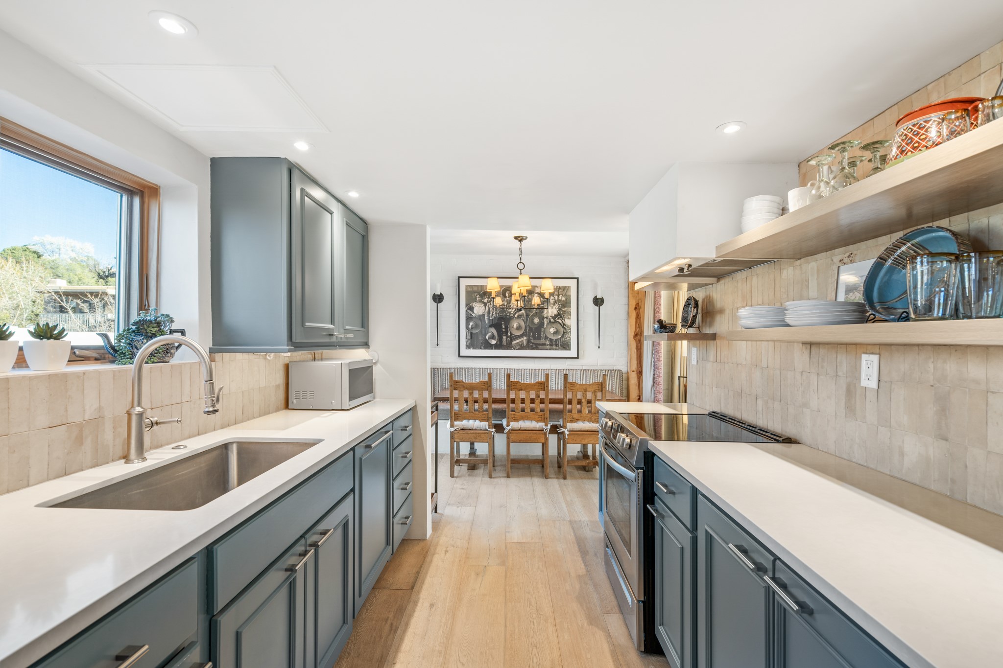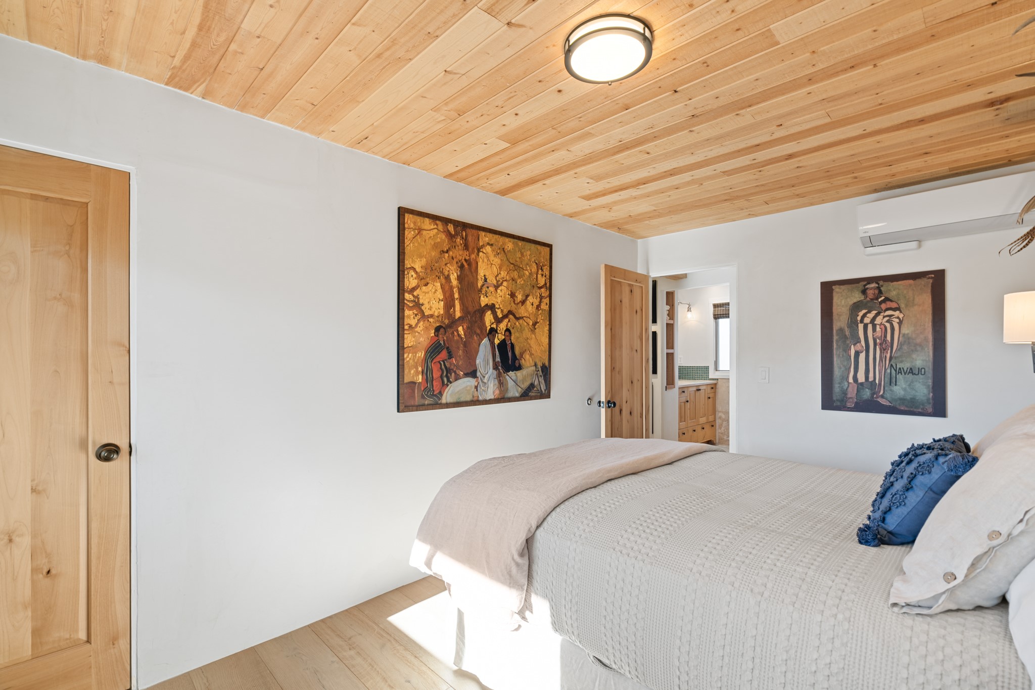 Exceptional Location & Impeccable Renovation in the Heart of Santa FeDiscover a beautifully transformed end-unit residence just moments from the Santa Fe Plaza, Canyon Road, Fort Marcy Park, and miles of scenic walking trails. This light-filled, open-concept home offers effortless living, plentiful parking, and two private outdoor spaces with sweeping mountain views, including breathtaking Jemez sunset views from the upstairs balcony.Every detail has been thoughtfully curated in this complete professional renovation. The home features engineered wood flooring, hand-troweled plaster walls throughout, custom solid wood doors, and new wood beams added to both levels for authentic Santa Fe warmth. The kitchen and half bath showcase new quartz countertops, custom cabinetry, paneled appliances, and modern fixtures. The kiva fireplace has been elegantly re-tiled, and new solar tubes illuminate the bathrooms and stairway.Additional upgrades include a tankless water heater, mini-splits, new light fixtures, and travertine tile in the bathroom. A professionally landscaped yard with irrigation enhances both beauty and ease of maintenance. The property also features a new roof with a 25-year warranty, offering peace of mind for years to come.With abundant windows, mountain views, and two inviting outdoor living spaces, this home offers an exceptional blend of comfort and convenience. Ideally located near downtown and Fort Marcy Park, which includes a gym with classes, pickleball courts, a pool, playground, and dog park, provides endless lifestyle opportunities. Luxury vacation rentals are permitted, offering outstanding flexibility for both owners and investors.