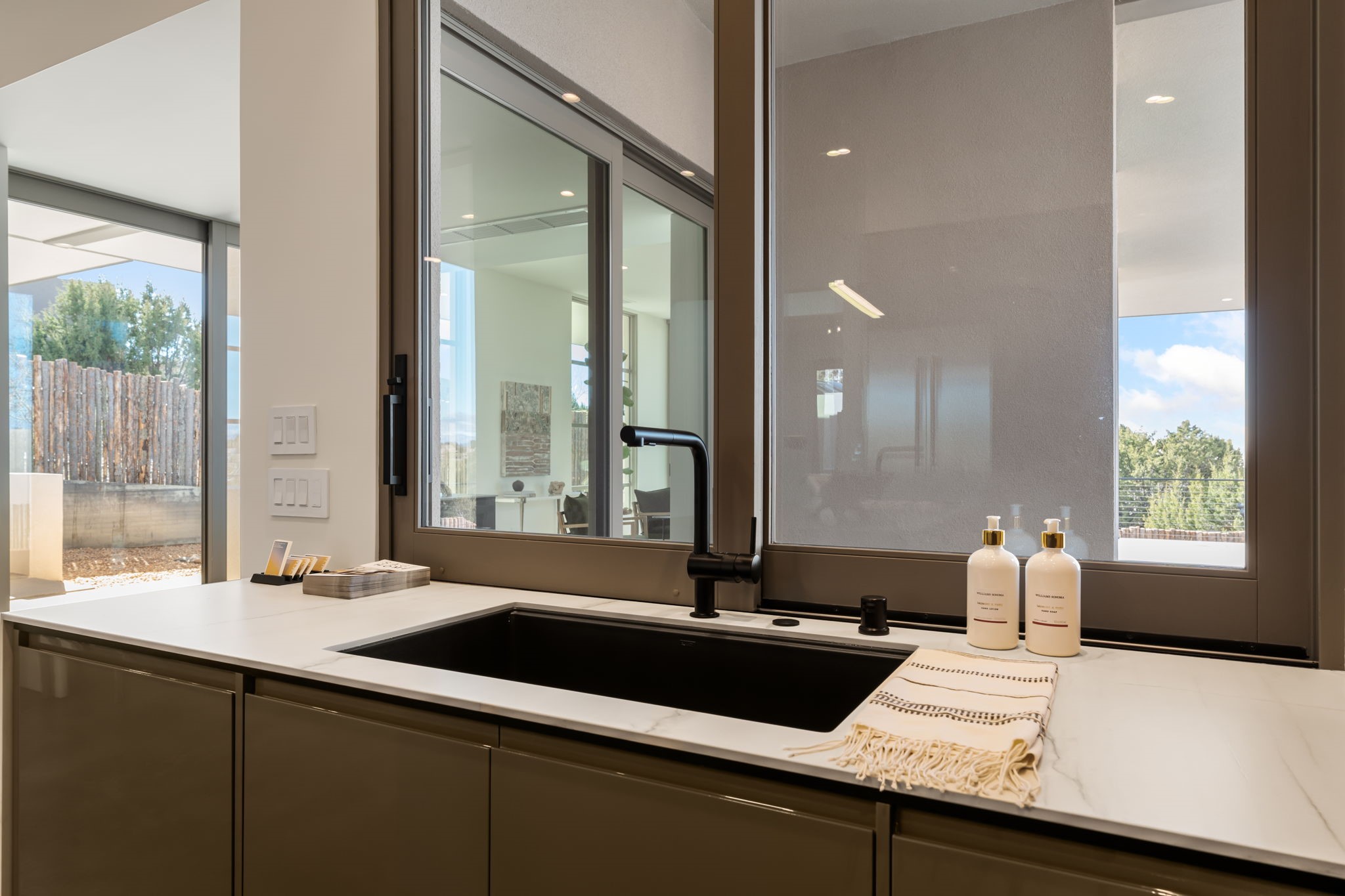 Mesa Modern | Move in now! Experience refined Contemporary Southwestern living in this stunning new construction home by Acacia Builders, a family owned and operated firm renowned for crafting sophisticated, high quality residences. Nestled in the desirable Aldea de Santa Fe community, this 3-bedroom + office home blends modern design with timeless craftsmanship. Just completed, the home Features: Sleek concrete flooring throughout, lux radiant in-floor heating, expansive picture windows that capture western views of the Jemez Mountains, and clean architectural lines that define contemporary elegance. Thoughtfully designed using Eco Friendly, ICF construction materials (insulated concrete forms) and a floorplan to maximize light and space, this residence will offer an ideal balance of form and function -- perfect for both serene living and stylish entertaining. With a legacy rooted in quality, attention to detail, and innovation, Acacia Builders delivers a home where every design choice reflects a deep commitment to excellence and modern aesthetics. Now is your opportunity to own a future-forward home in one of Santa Fe's most sought-after communities.
