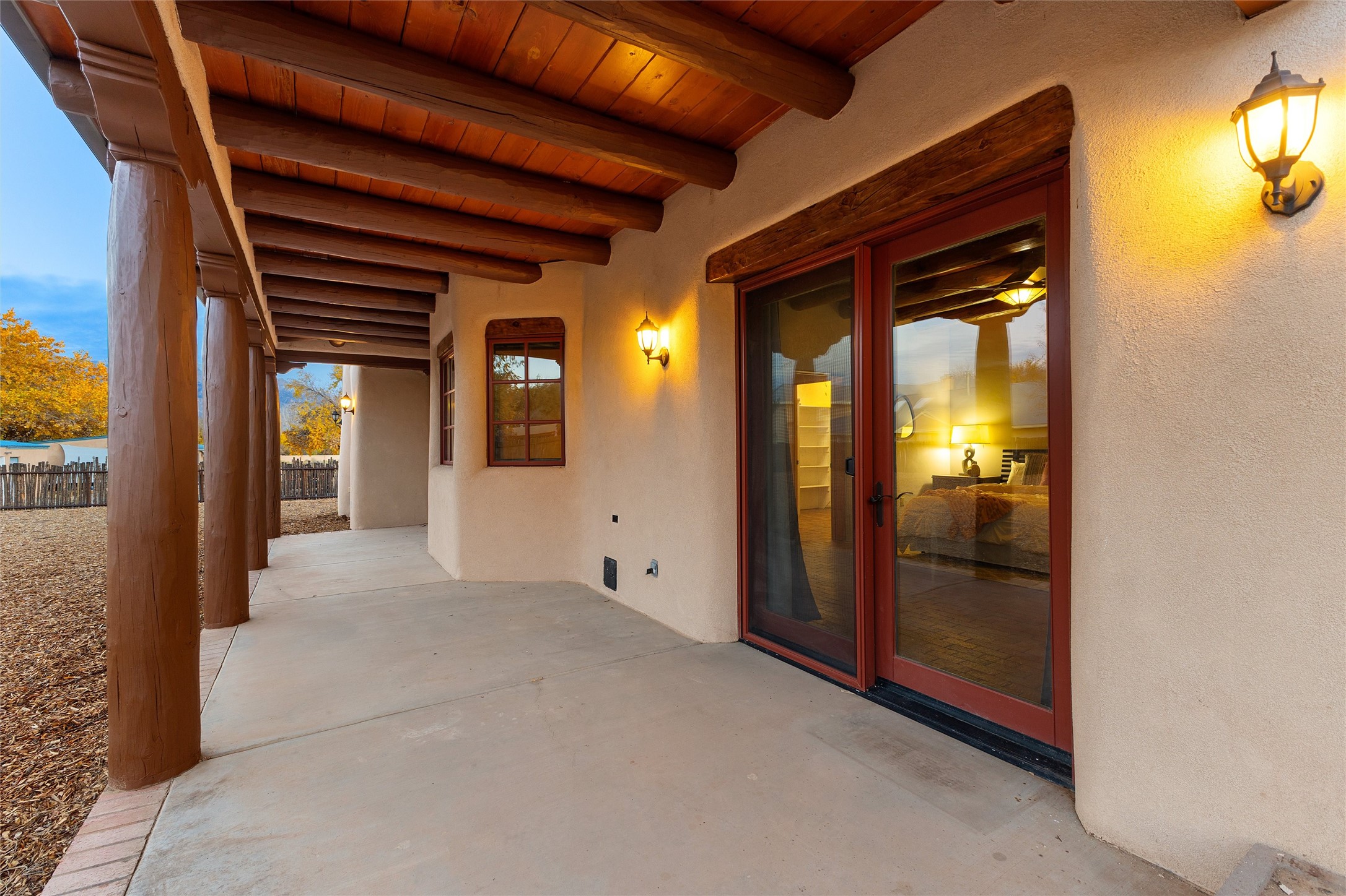 Timeless Corrales, New Mexico living with room to breathe. This expansive 6,491 sq ft, quintessential Santa Fe-style estate marries the soul of an original 150-year-old farmhouse--thick adobe walls, hand-hewn vigas, and soaring ceilings--with a thoughtful 2009 renovation that brings modern comfort and reliability. Tucked on a quiet lane, the home rests on 1.69 serene, level acres that frame lovely Sandia Mountain views and invite an easy rural lifestyle--plenty of usable space for horses, gardens, or future additions. Inside, light-washed halls and artful nichos create gallery-like display walls for sculpture and canvases. Multiple living and gathering areas open effortlessly to two lush, grassy courtyards--perfect for coffee at sunrise, al-fresco dinners at dusk, or relaxed weekend play. An updated kitchen and baths blend warm Southwestern finishes with contemporary function, while long, shaded portals extend everyday living outdoors. Generous bedrooms and flexible rooms accommodate quiet work, fitness, media, or guest needs; host a crowd or savor a private retreat with equal ease. With historic character preserved, modern conveniences in place, and a setting that feels both pastoral and connected, this is a rare convergence of history, scale, privacy, and natural beauty--right in the heart of Corrales.