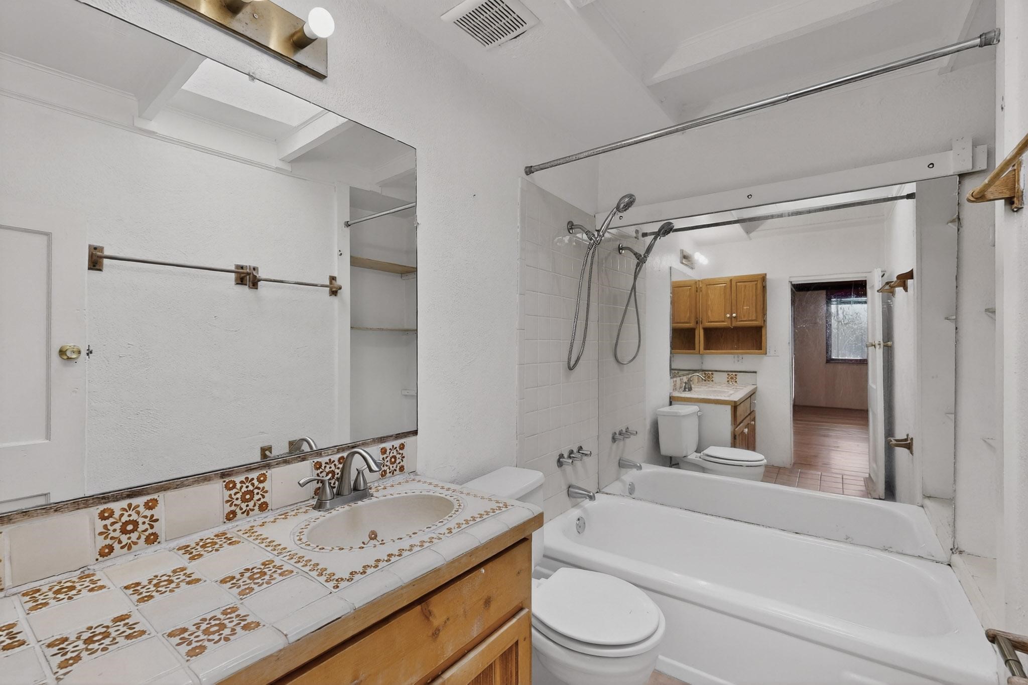 Discover an exceptional investment or live/rent opportunity just minutes from the Santa Fe Plaza and the vibrant Railyard District. This versatile duplex features two spacious 1BR/1BA units totaling 1,320 sq ft, each with its own distinct character, private outdoor space, and two dedicated parking spots. A shared laundry room conveniently connects the units while maintaining privacy. A spray foam roof (10y) with fresh elastomeric coating (2y) and acoustic-insulated separation between units adds comfort, efficiency, and peace of mind. Live in one home and rent the other, or maximize income potential by leasing both--this property offers flexibility for owners, investors, or multi-family living. UNIT A: Warm and artistic, Unit A welcomes you with a large living room featuring a wood stove and hardwood floors reclaimed from a basketball court--a true conversation piece. Custom shoji doors create a stylish division between the living and bedroom spaces. The open-concept kitchen includes a gas stove and blends seamlessly with the living area. Custom coved ceilings, numerous skylights, and unique colorful accents make the interior attractive, and the private fenced outdoor patio is perfect for morning coffee or evening relaxation. UNIT B: Bright and inviting, Unit B boasts a spacious living room with parquet hardwood flooring and abundant natural light. The kitchen showcases unique sheet-metal paneling for a contemporary, artistic touch. The bedroom features serene American Clay plaster walls, adding texture and warmth, with an en-suite bathroom boasts slate tile, walk-in shower, and custom skylights. A large private yard offers ample outdoor living potential--gardening, pets, or entertaining. A 220V hookup in the yard makes your hot tub or workshop vision possible. With its unbeatable location, character-rich interiors, and strong rental flexibility, 617 Paulin St is a rare find in the heart of Santa Fe. A must-see for investors and homeowners alike. Property to be sold as-is.