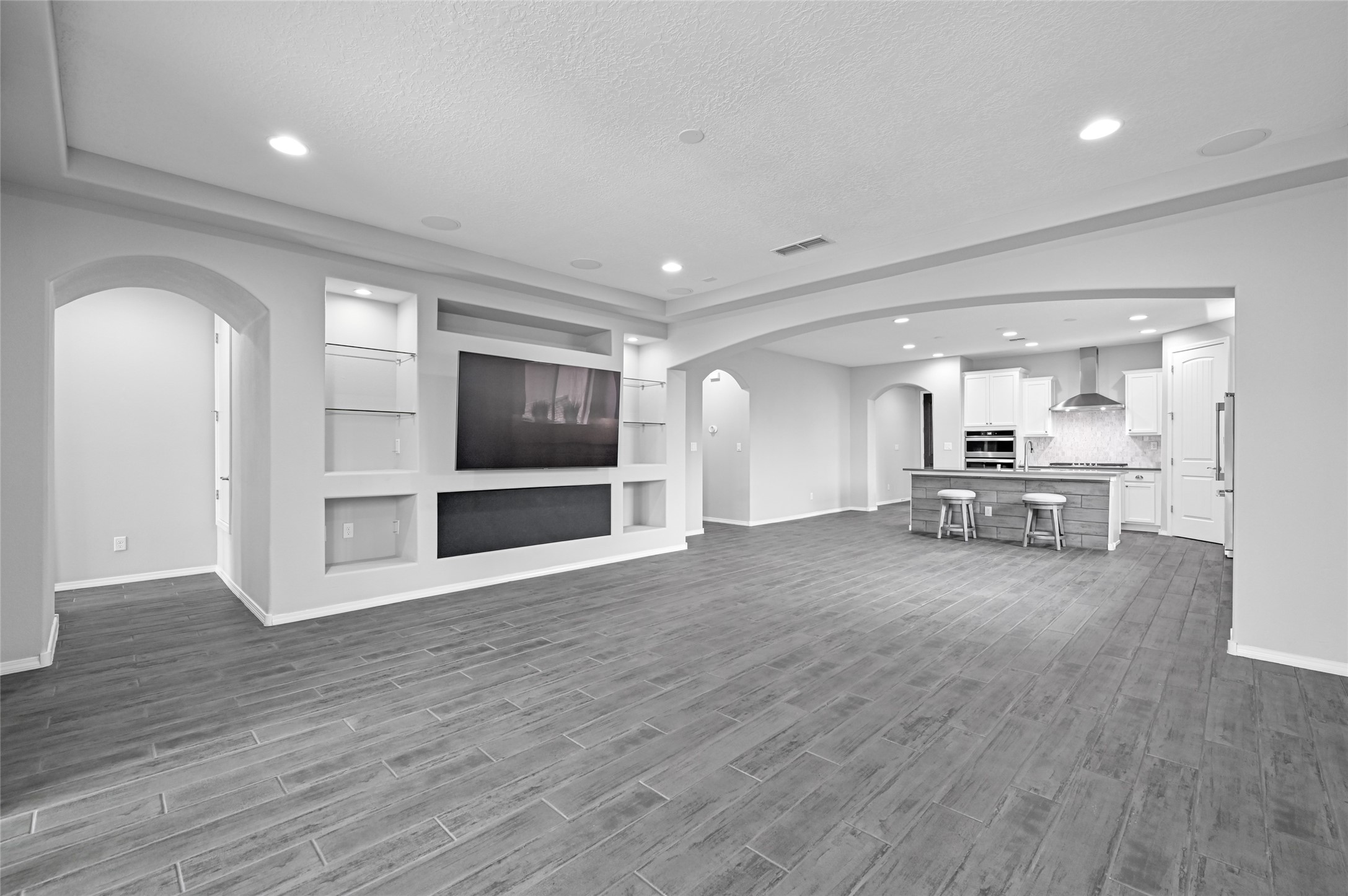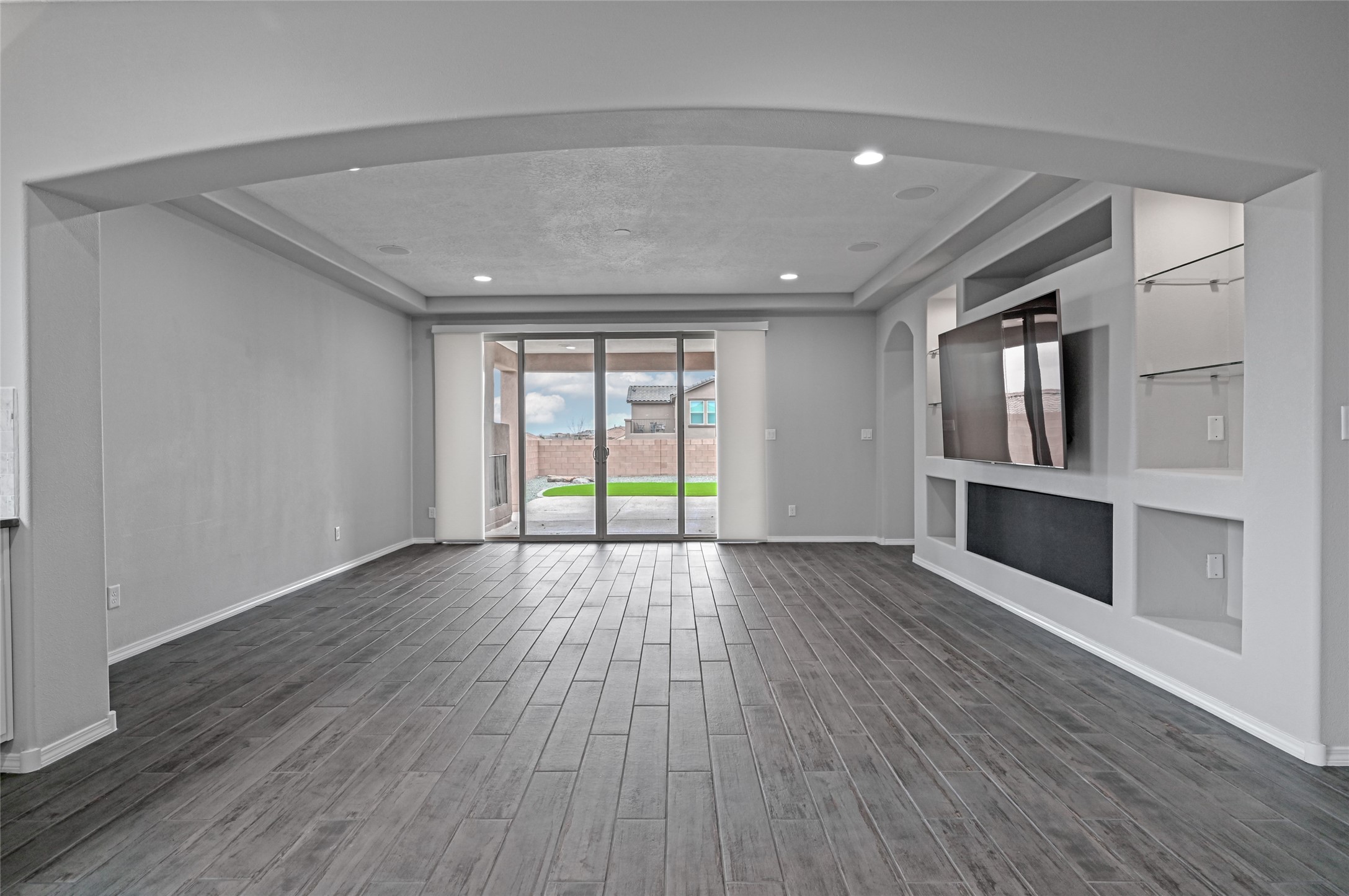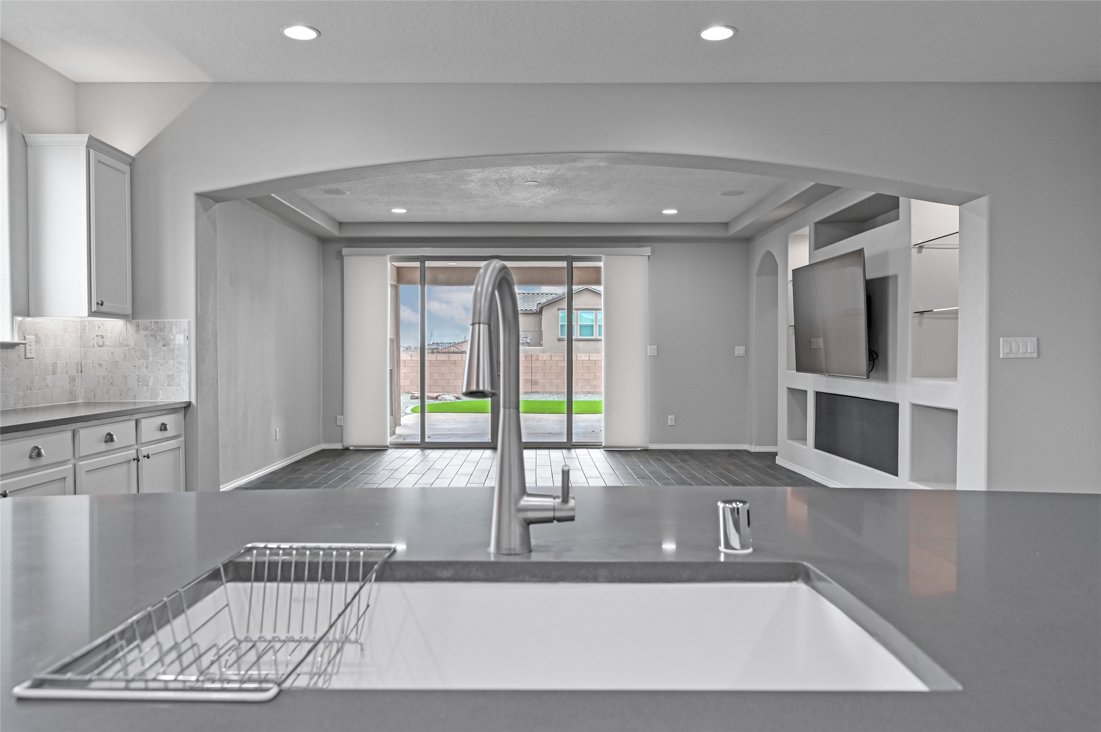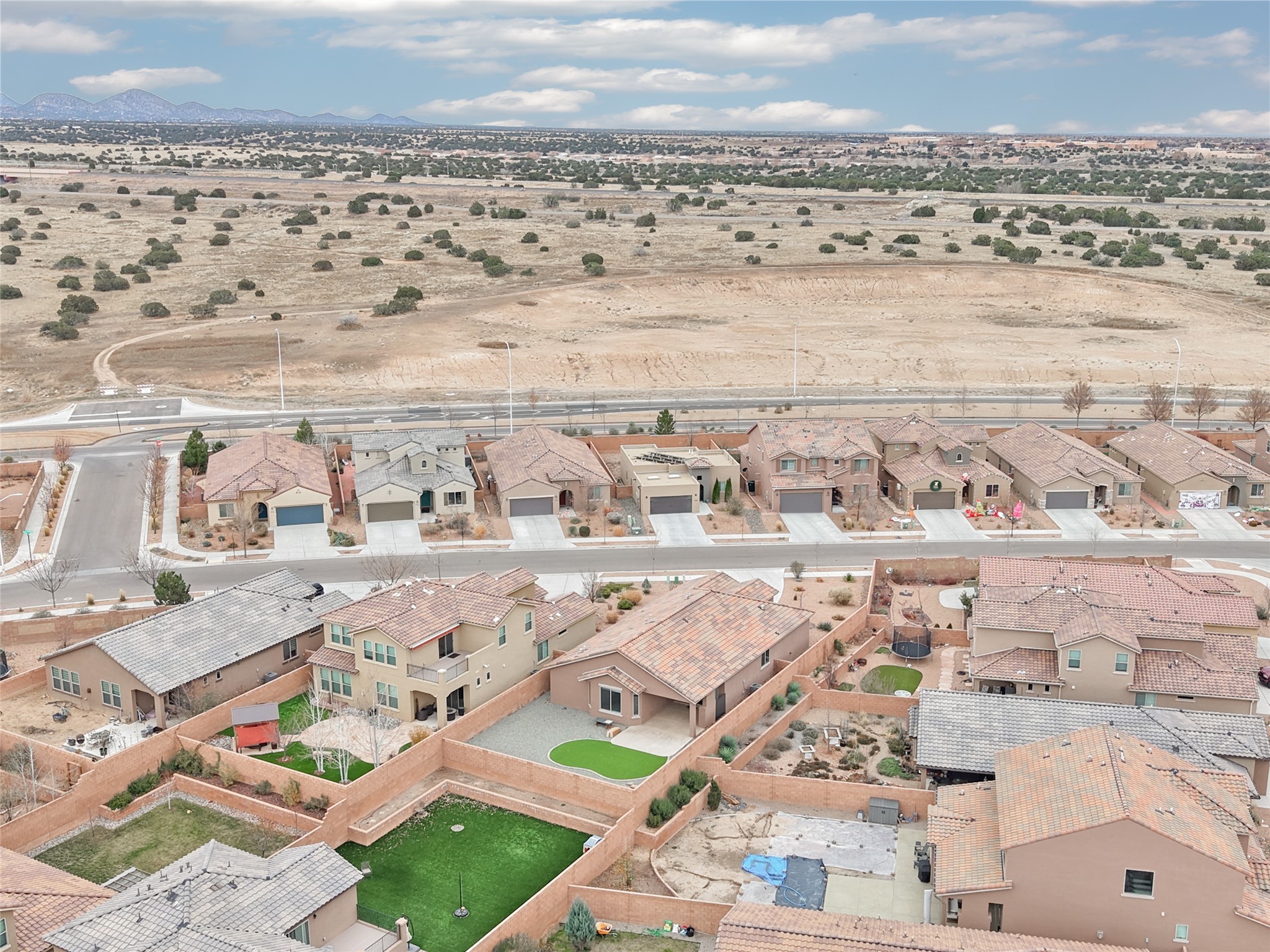 Built by Pulte in 2019, this beautifully maintained single-level 2,184 sq. ft. home is sited on a premium 0.20-acre lot, offering privacy and captivating sunset views. Thoughtfully designed, the open-concept floor plan creates seamless flow between the kitchen, living, and dining areas. An elegant archway subtly defines the living and dining spaces while framing a view of Santa Fe's expansive skies from the kitchen--a warm architectural detail that adds both beauty and function. The kitchen is a true standout, with extensive counter space, abundant cabinetry, stainless steel appliances, and a generous island with seating for four. The island's sink is perfectly positioned for enjoying the views or staying connected while entertaining. Off a shared hallway, two guest bedrooms enjoy access to a full bathroom with double vanities. The spacious primary suite includes a large walk-in shower, dual vanities, a substantial walk-in closet, and views of the private backyard.The backyard is designed for low-maintenance enjoyment, featuring green turf that never needs mowing and a spacious portal with a built-in gas fireplace--perfect for outdoor dining or evening relaxation. Additional highlights include a mudroom/laundry room with side-by-side washer/dryer and sink, and an attached 2-car garage. Newer in age yet timeless in design, this home stands out for its premium lot with views and thoughtful design--checking all the boxes for comfortable, elegant Santa Fe living.