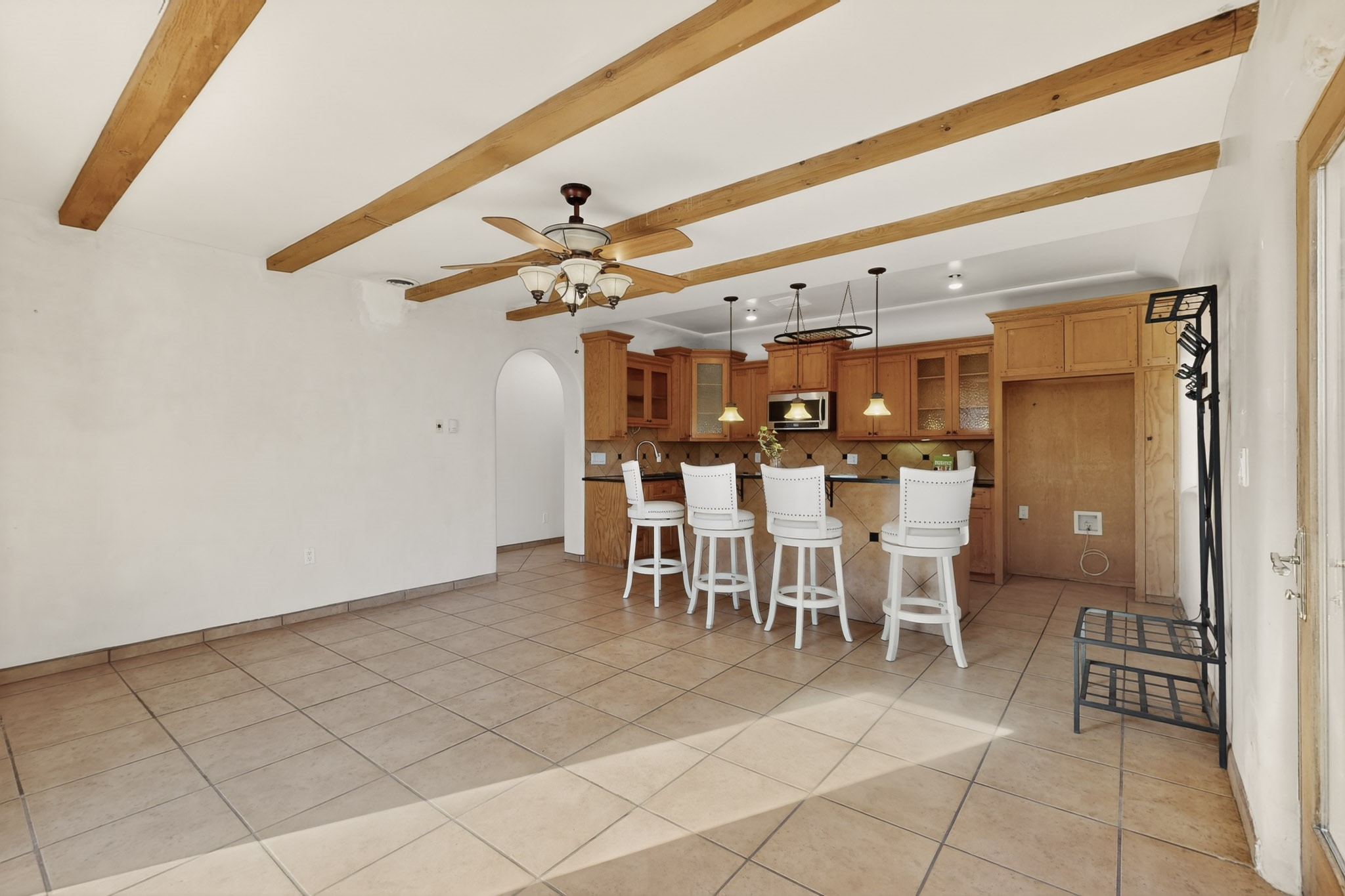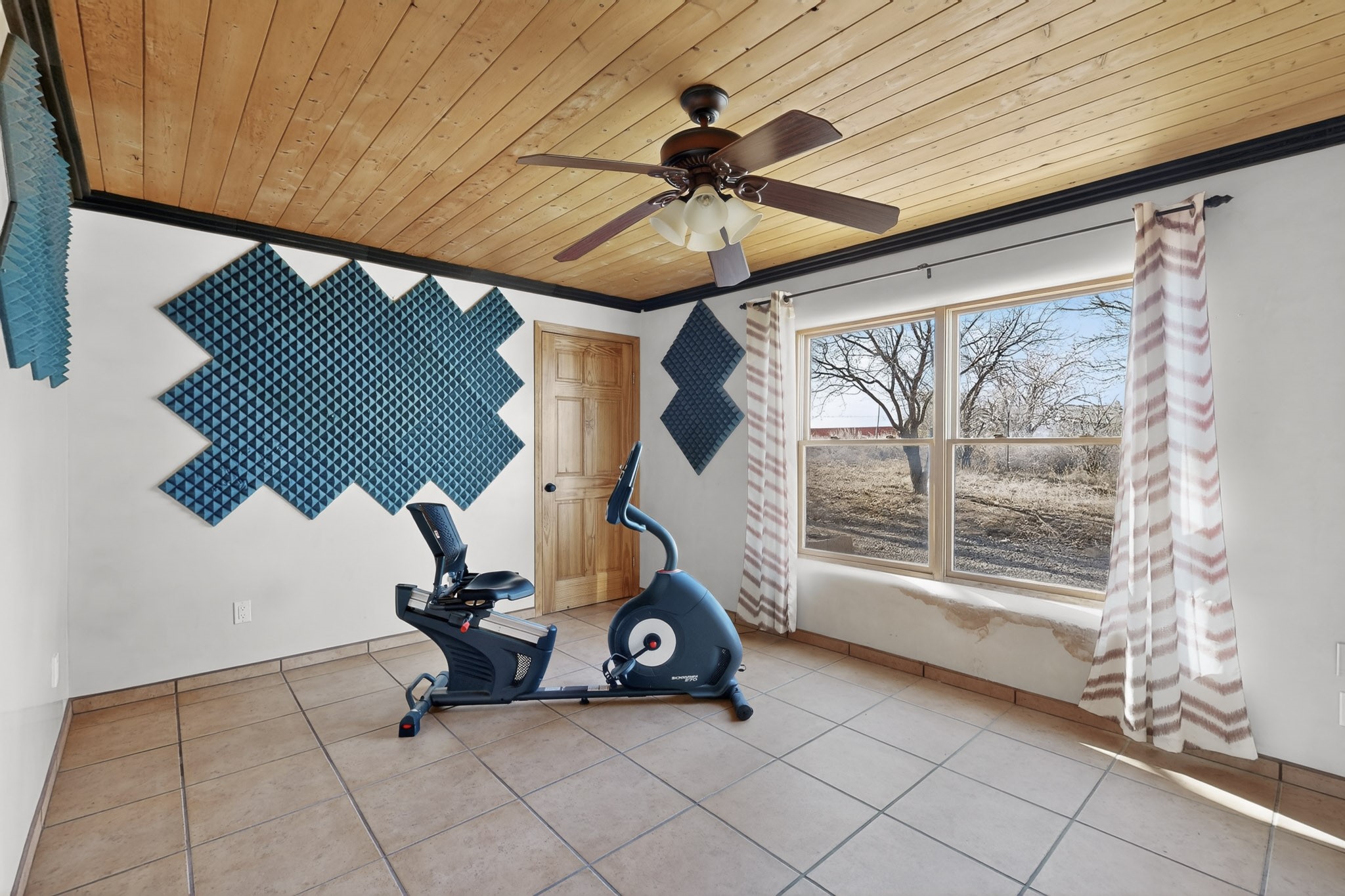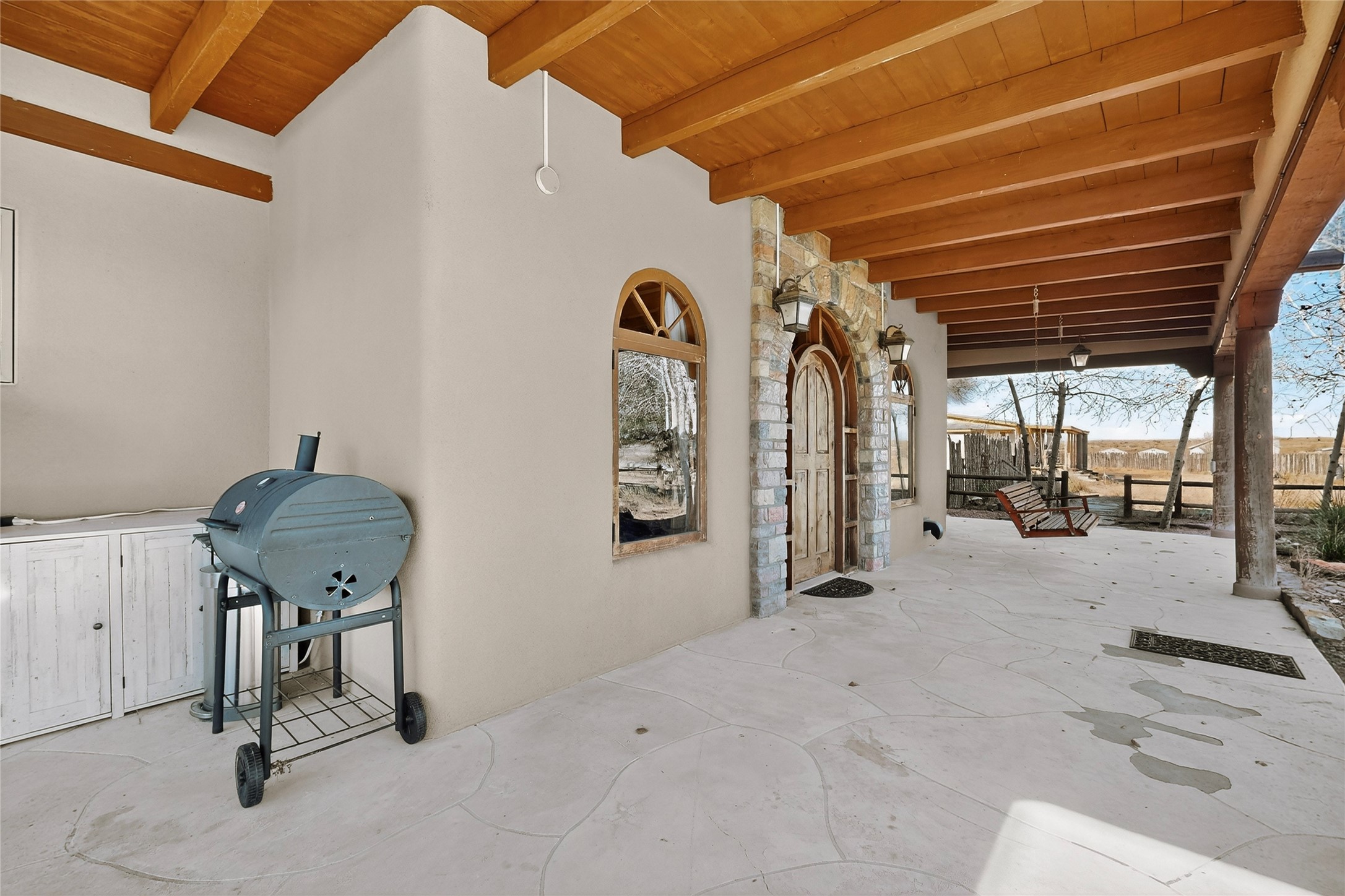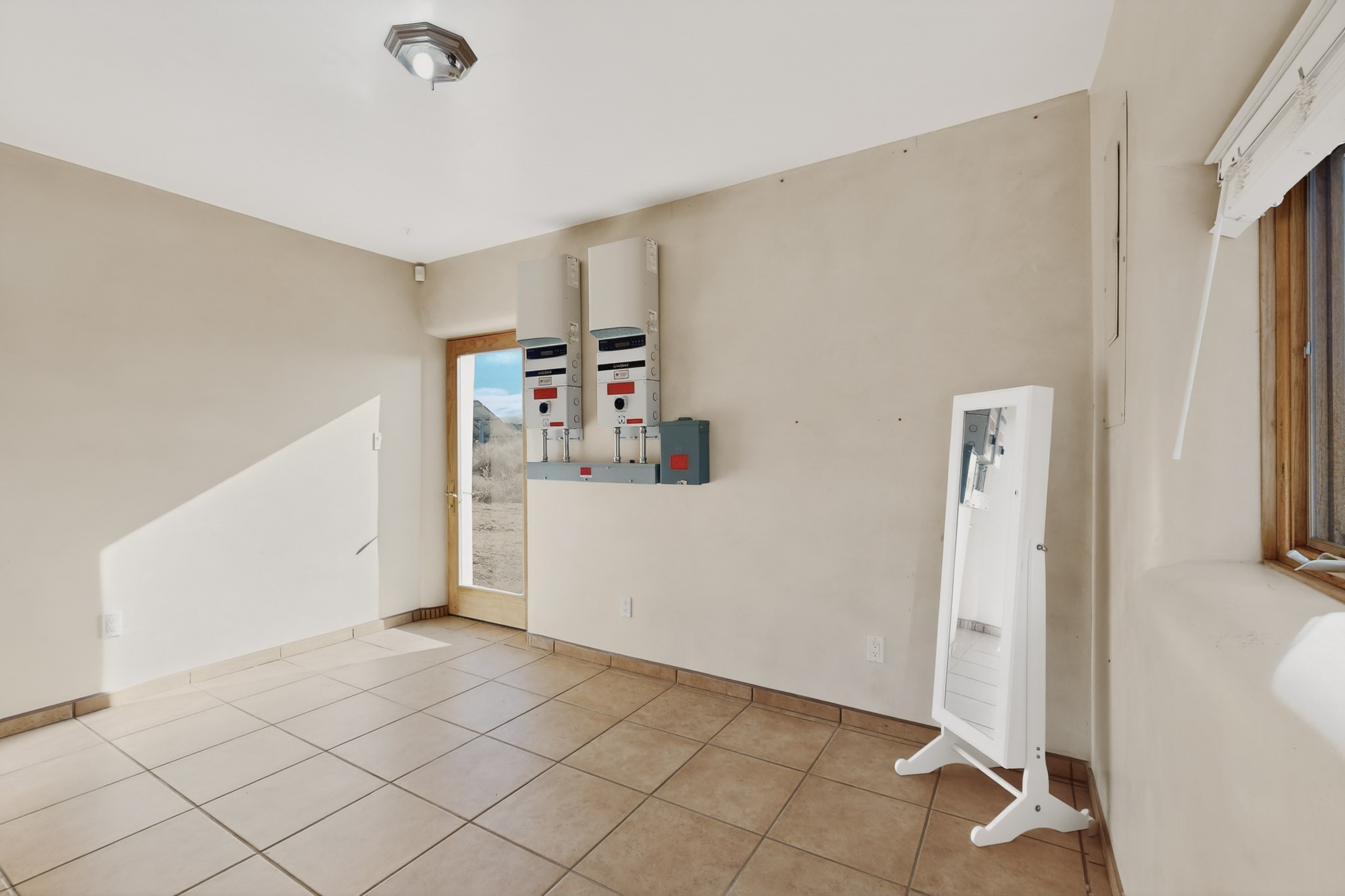 Experience Northern New Mexico living at its finest on this exceptional 2.5-acre property featuring a spacious 4-bedroom, 2-bath, 2,800 sq ft main home and a fully equipped 3-bedroom, 2-bath manufactured guest house. The impressive, custom-built main residence highlights timeless Southwest charm with plaster walls, vigas, a kiva fireplace, beautiful artistic touches, and warm, inviting living spaces.Sustainable living is built right in with a fully paid-off solar panel system, offering energy efficiency and long-term savings. Outdoors, enjoy incredible views of the mountains, peaceful moments by the tranquil koi pond, or explore the expansive grounds. You can also take advantage of the versatile detached shop/garage--ideal for projects, hobbies, or additional storage.An exceptionally productive private well provides reliable water for both homes and the acreage, enhancing the property's self-sufficiency. Potentially providing as high as 40 to 50 gallons per minute, the pump has been governed to produce at 25 GPM, which easily accounts for any residential, or even livestock need. Additionally, an in-ground 1200 gallon tank provides water to the pressure tanks through an automatic softener. Water is absolutely not an issue at this incredible property. Perfect for multi-generational living, rental income, or extended-stay guests, this rare offering blends comfort, functionality, ample space, and true Southwest appeal. Schedule your private tour today!