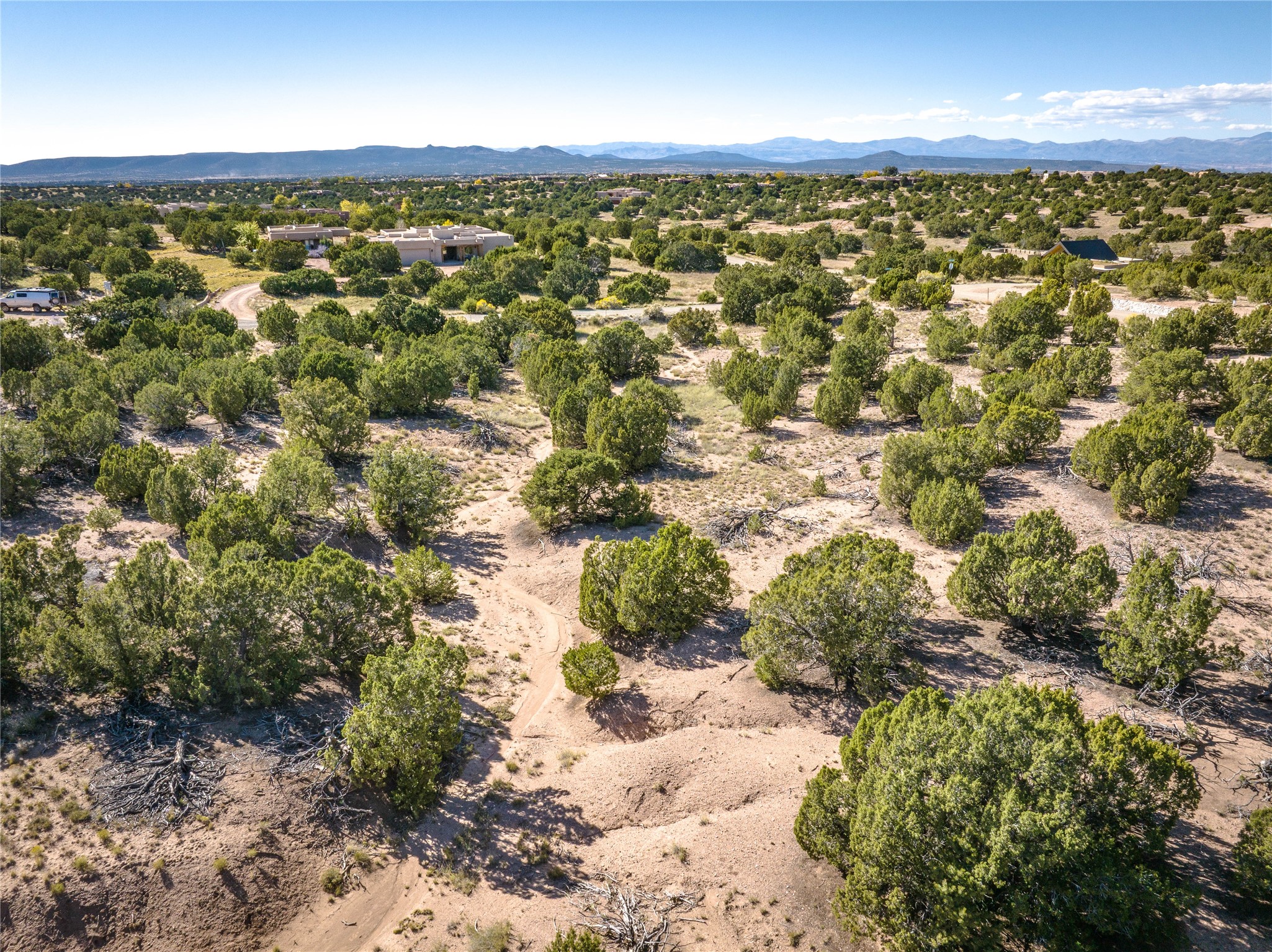 Mountain Views, La Tierra Trails & 2.5+ Private Acres in Cuatro DiezImagine waking up to sweeping mountain vistas in every direction--Sangre de Cristo sunrises and Jemez sunsets--all from your own 2.5+ acre sanctuary filled with pion, juniper, and golden desert light. Nestled on a peaceful cul-de-sac in the Cuatro Diez subdivision, this special homesite feels wonderfully tucked away yet sits just moments from southwest cuisine and the La Tierra trail system--perfect for morning hikes, sunset strolls, and everyday connection to the outdoors.A shared well, natural gas, and nearby electric and phone lines offer ease and flexibility as you plan your dream build. With Hwy 599 just minutes away, you're perfectly positioned to enjoy Santa Fe's rich lifestyle amenities. Within an easy drive, savor modern-Southwestern cuisine or for those who love culture and community, the vibrant Railyard Arts District and historic Santa Fe Plaza await with galleries, shops, events, and local flavor.Here, rural serenity blends seamlessly with convenient access to everything Santa Fe has to offer--creating a place where you can truly live, explore, and enjoy the best of Northern New Mexico.