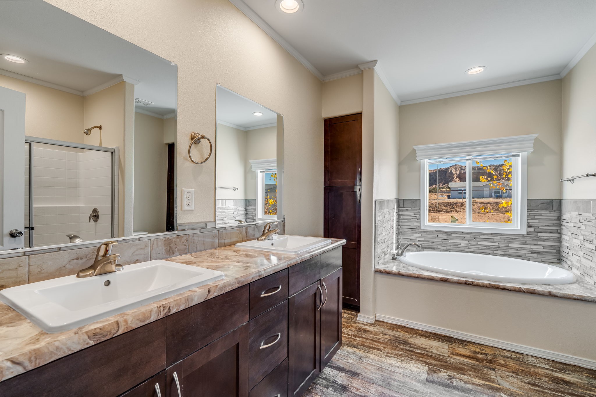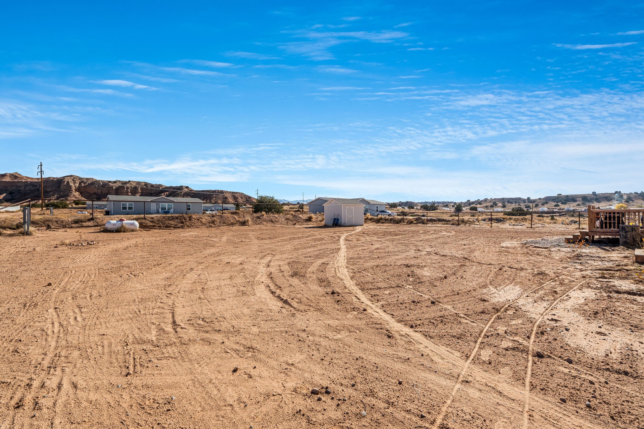 Enjoy wide open views of the Espaola Valley from this elevated .93-acre property. This 2020 modular home offers a comfortable layout with an open living, dining, and kitchen area designed for everyday living and entertaining. The kitchen features abundant cabinet space, an oversized pantry, and like-new appliances. A separate utility room provides additional storage and access to the backyard.The primary suite includes a walk-in closet and full bath with double sinks and a large soaking tub. Two additional bedrooms are located on the opposite side of the home for added privacy, each with its own walk-in closet. Refrigerated air keeps the home cool in the summer, and crown molding, recessed lighting, and modern finishes add a polished touch.The fully fenced property includes a metal pipe fence surrounding the entire lot and offers both sunrise and sunset views, along with nearby access to local trails. Convenient commute to Los Alamos and serviced by Santa Fe County water.