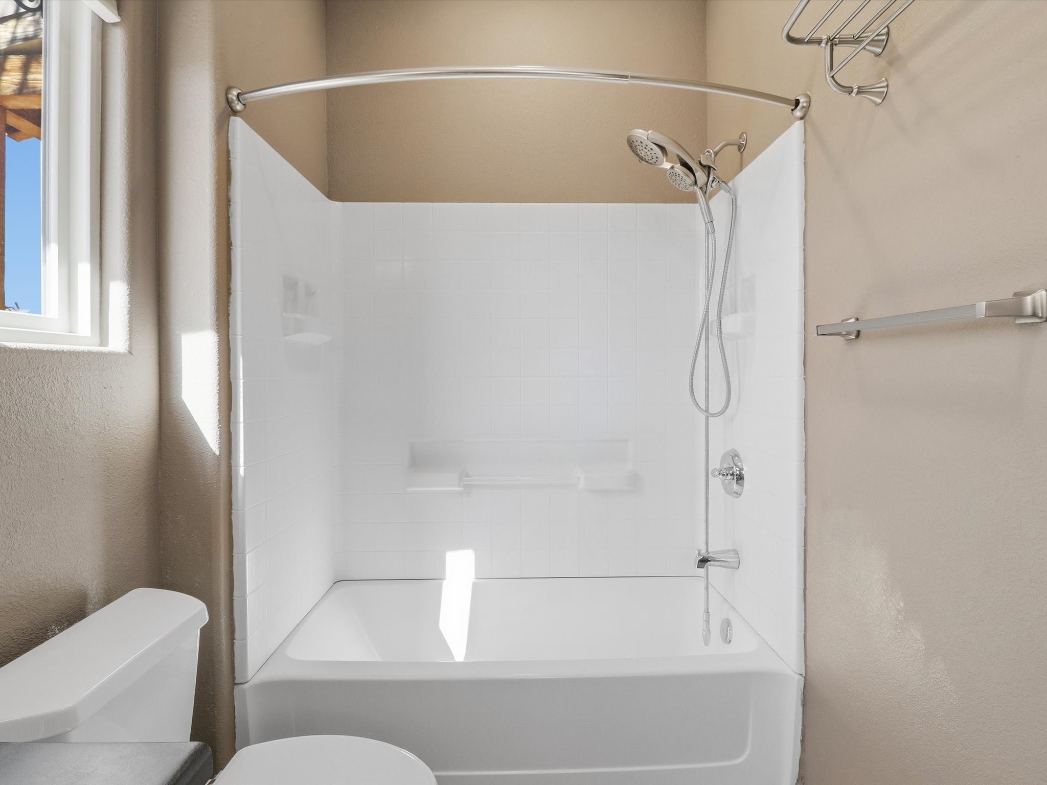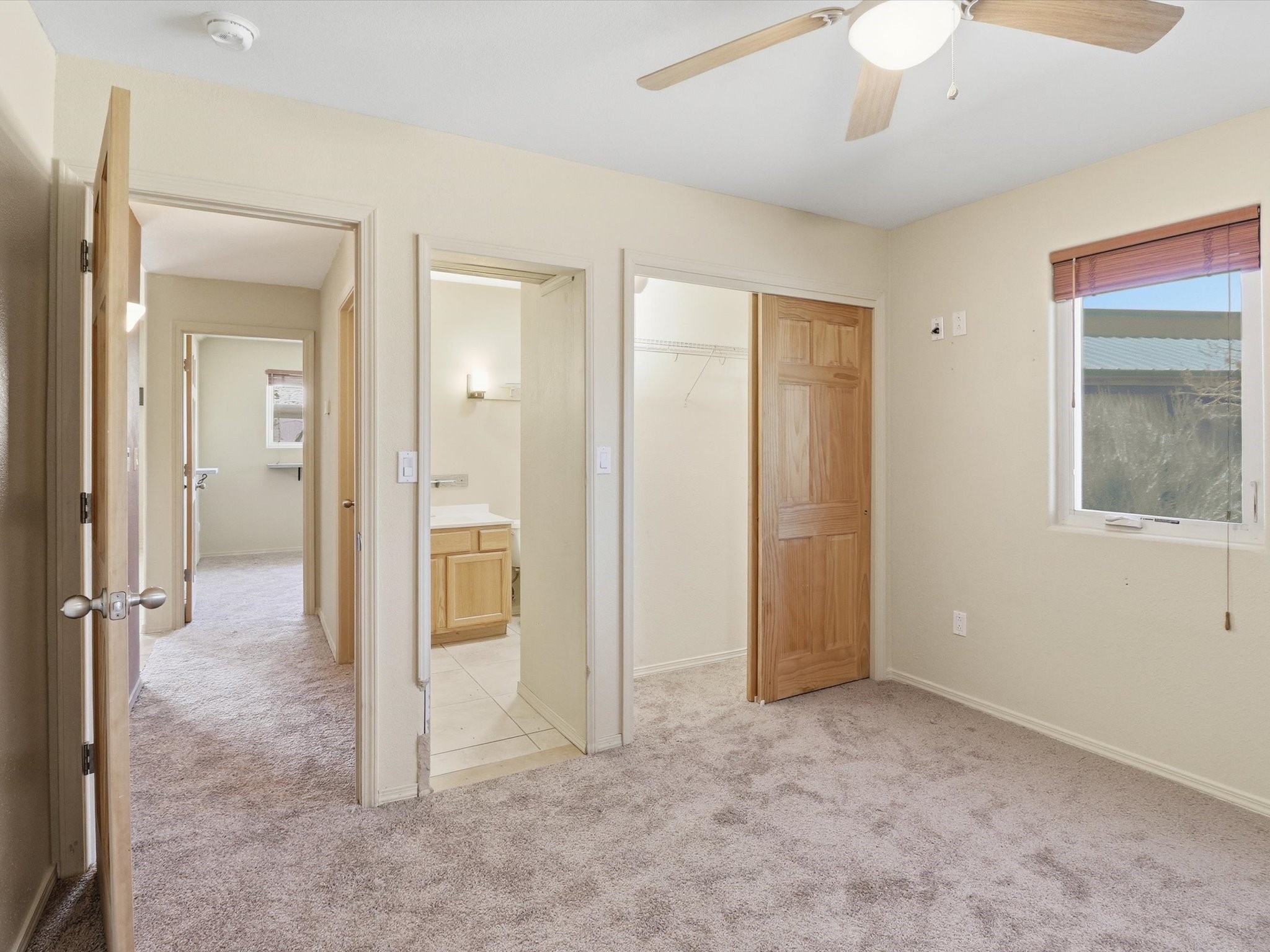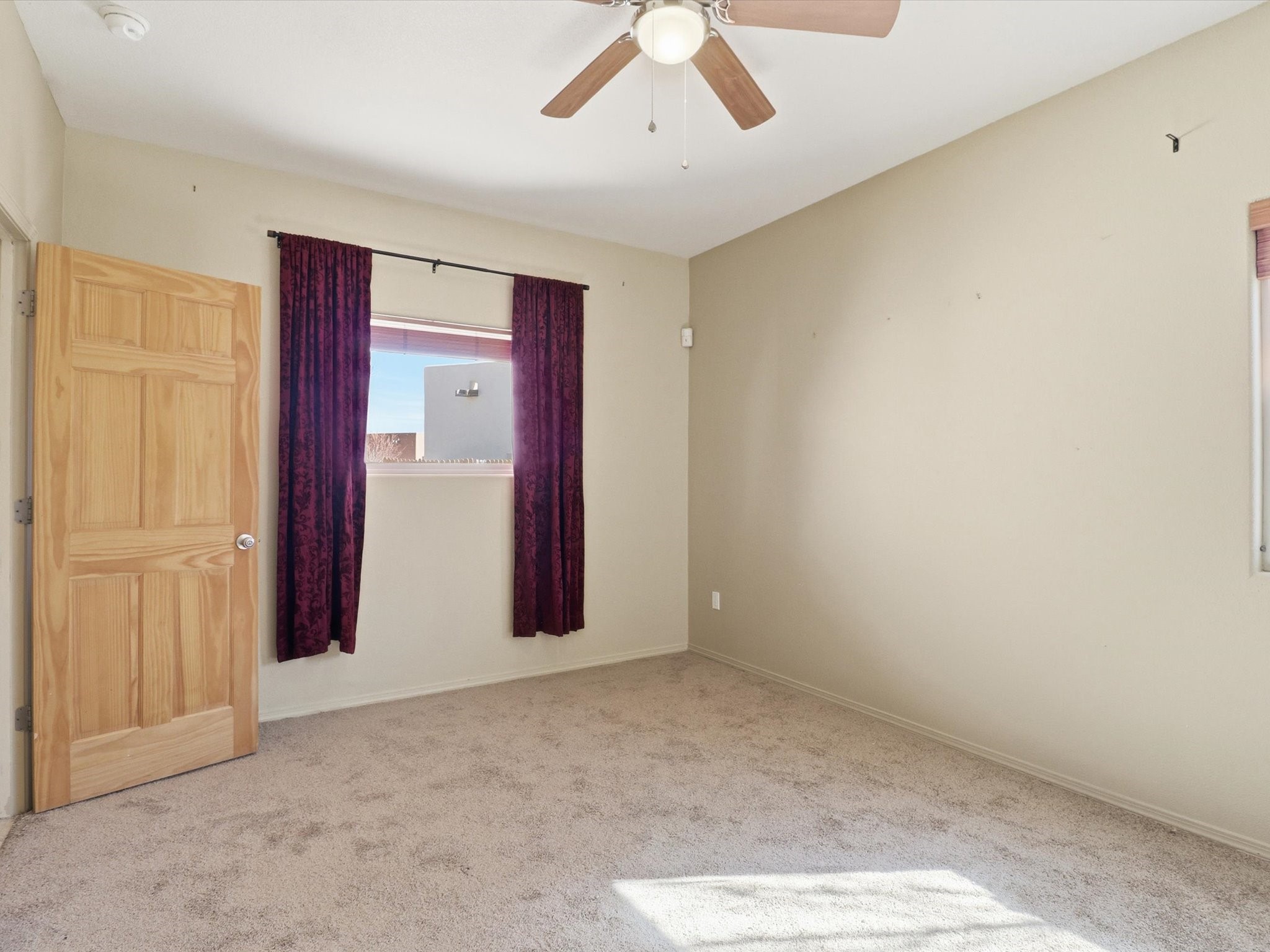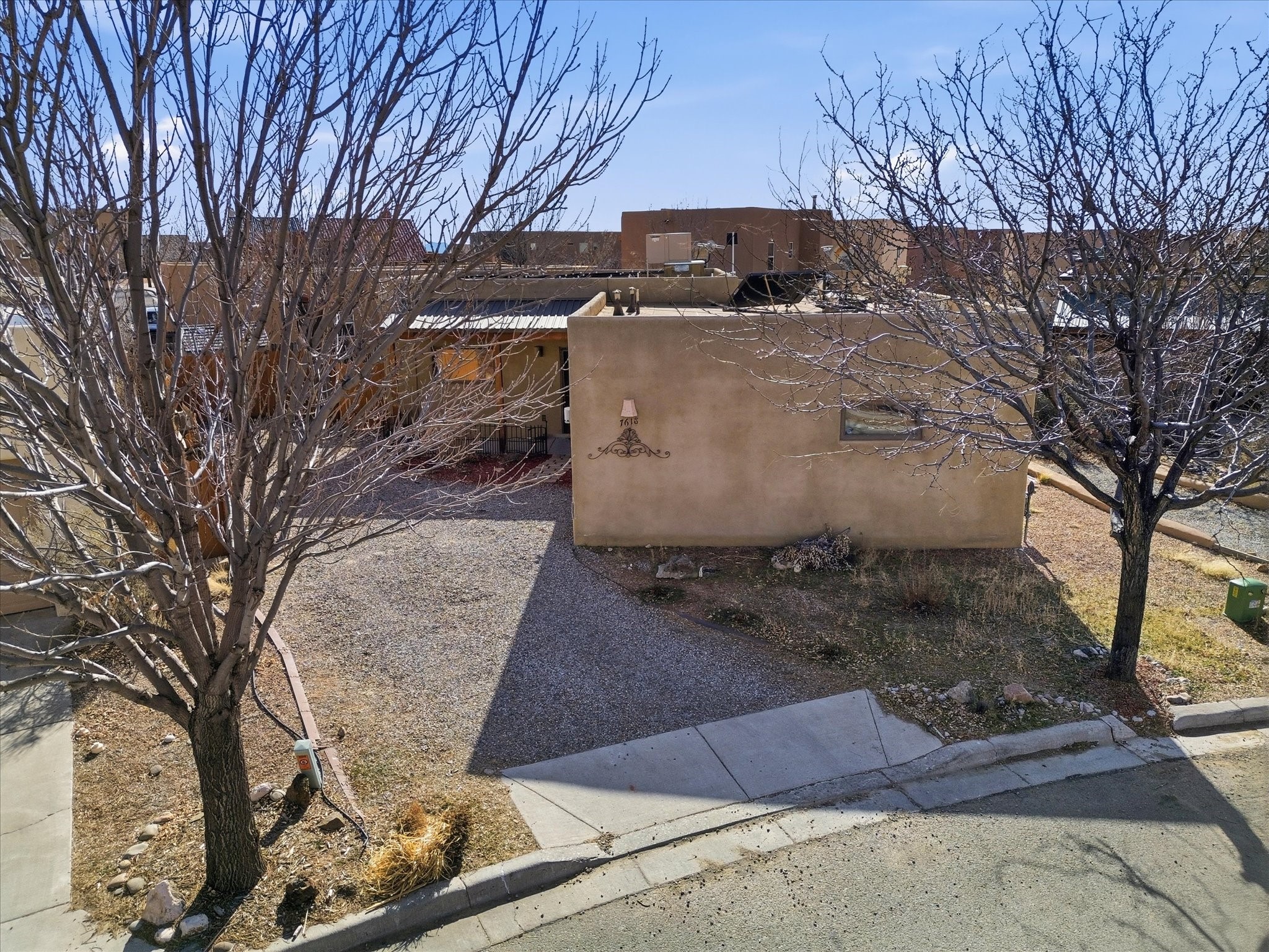 Not far from Santa Fe Country Club, this home offers a blend of comfort, style, renewable energy and Affordability. The practical open floor concept seamlessly connects the kitchen, living room, and dining area, allowing natural light to fill the space and creating a warm, inviting atmosphere.From the main entrance, you're greeted with thoughtful flow--to your right, a private kitchen area featuring ample cabinets for storage, a dishwasher, gas stove, and fridge, and direct access to the laundry room, making daily chores effortless. From the kitchen, step straight into the living space, which opens through a small, covered portal to the backyard with a flagstone patio and pergola, ideal for outdoor gatherings or peaceful afternoons in the garden. The home's two wings provide privacy and functionality: Primary suite: A serene retreat with an attached bathroom and open walk-in closet, offering comfort and style in equal measure. Second wing: A hallway leading to two additional bedrooms and a full bathroom with direct access from the second bedroom, perfect for family or guests. Additional highlights include radiant heating to keep you cozy during chilly winters, tile flooring to keep feet cool in summer, and an attached garage accessible via the kitchen through the pantry/washroom for easy grocery unloading. Located close to Highway 599 for convenient commuting to Santa Fe downtown, Los Alamos, Albuquerque and airport access, this home is a true Santa Fe gem, combining indoor-outdoor living, natural light, and thoughtful design in a tranquil neighborhood setting.