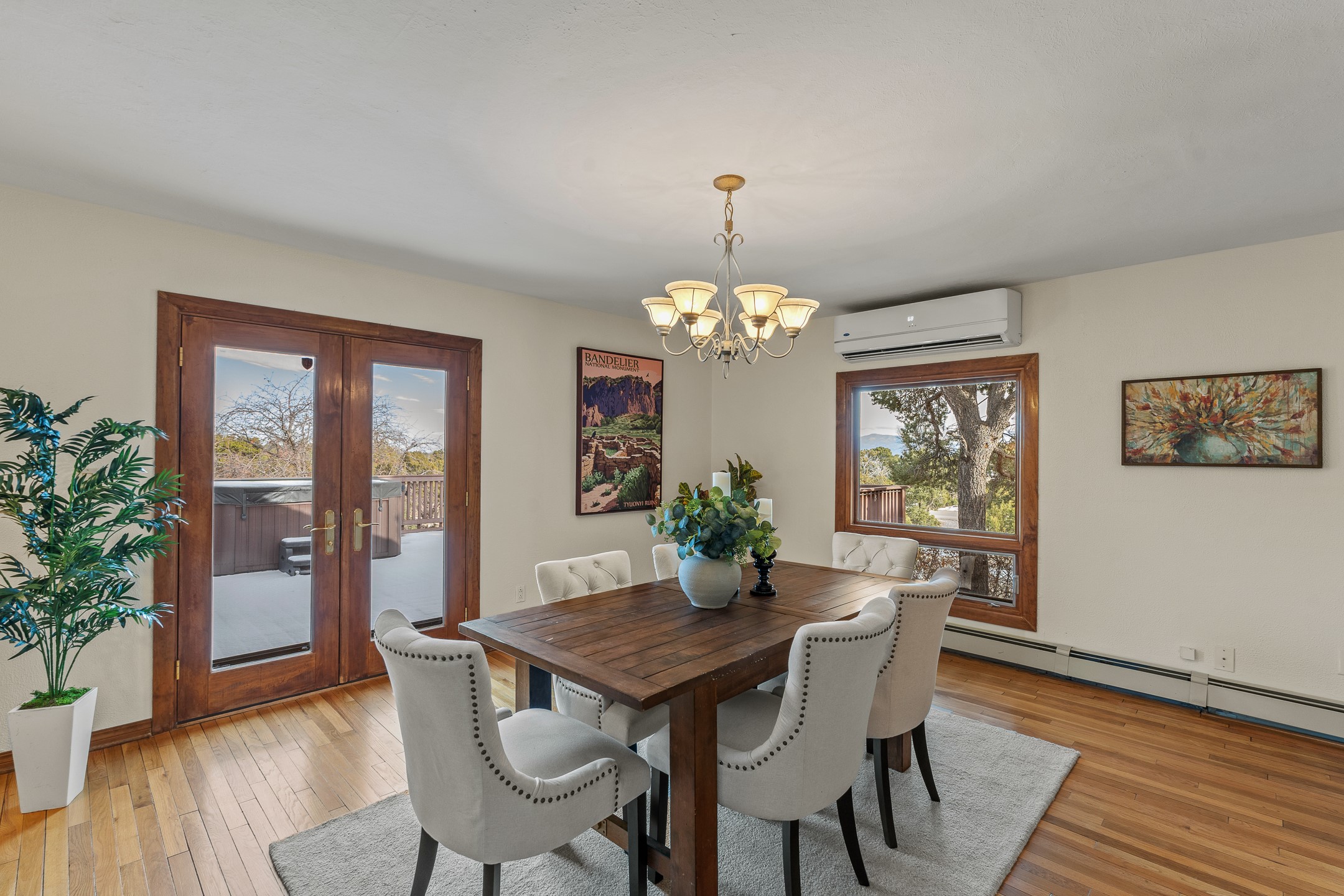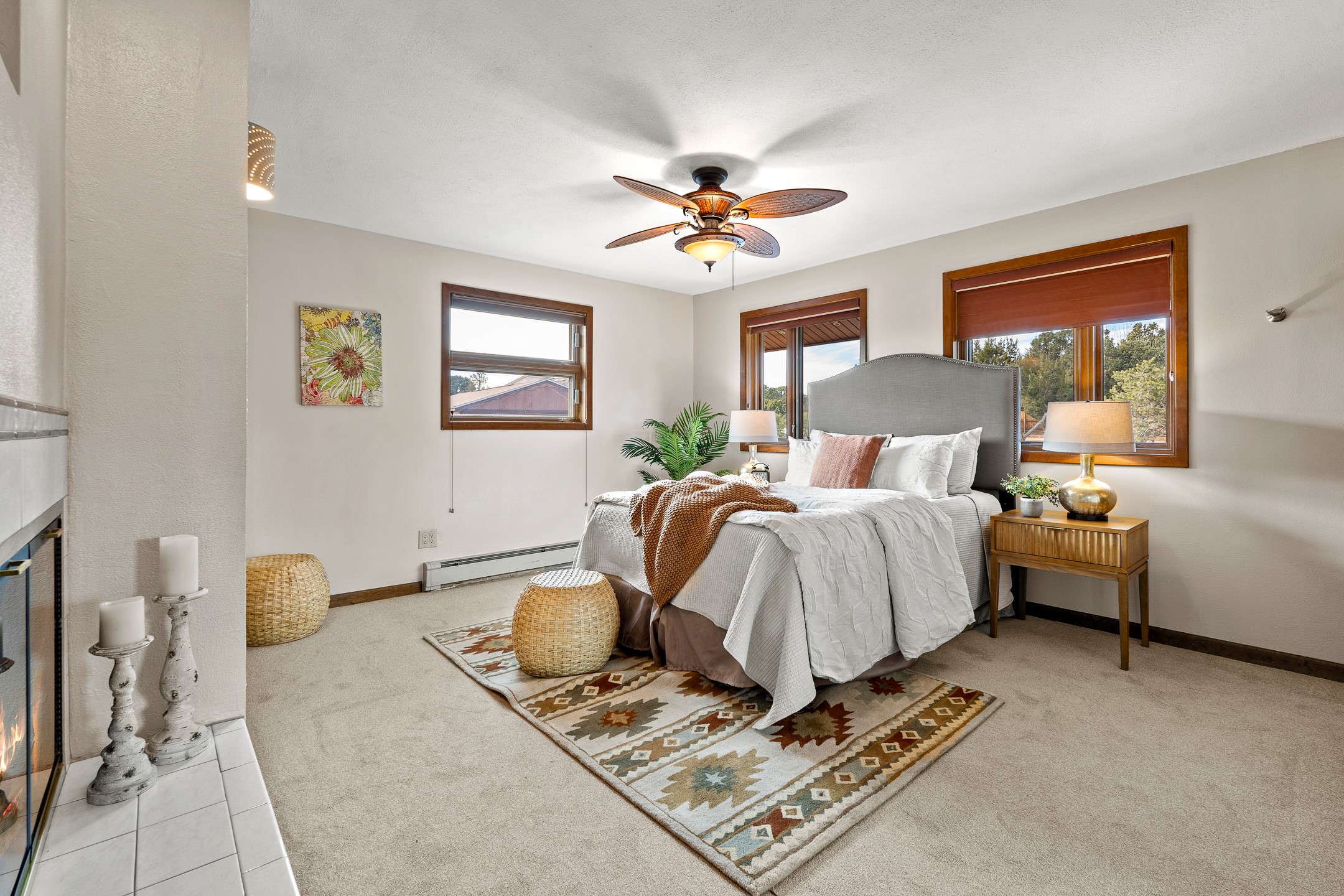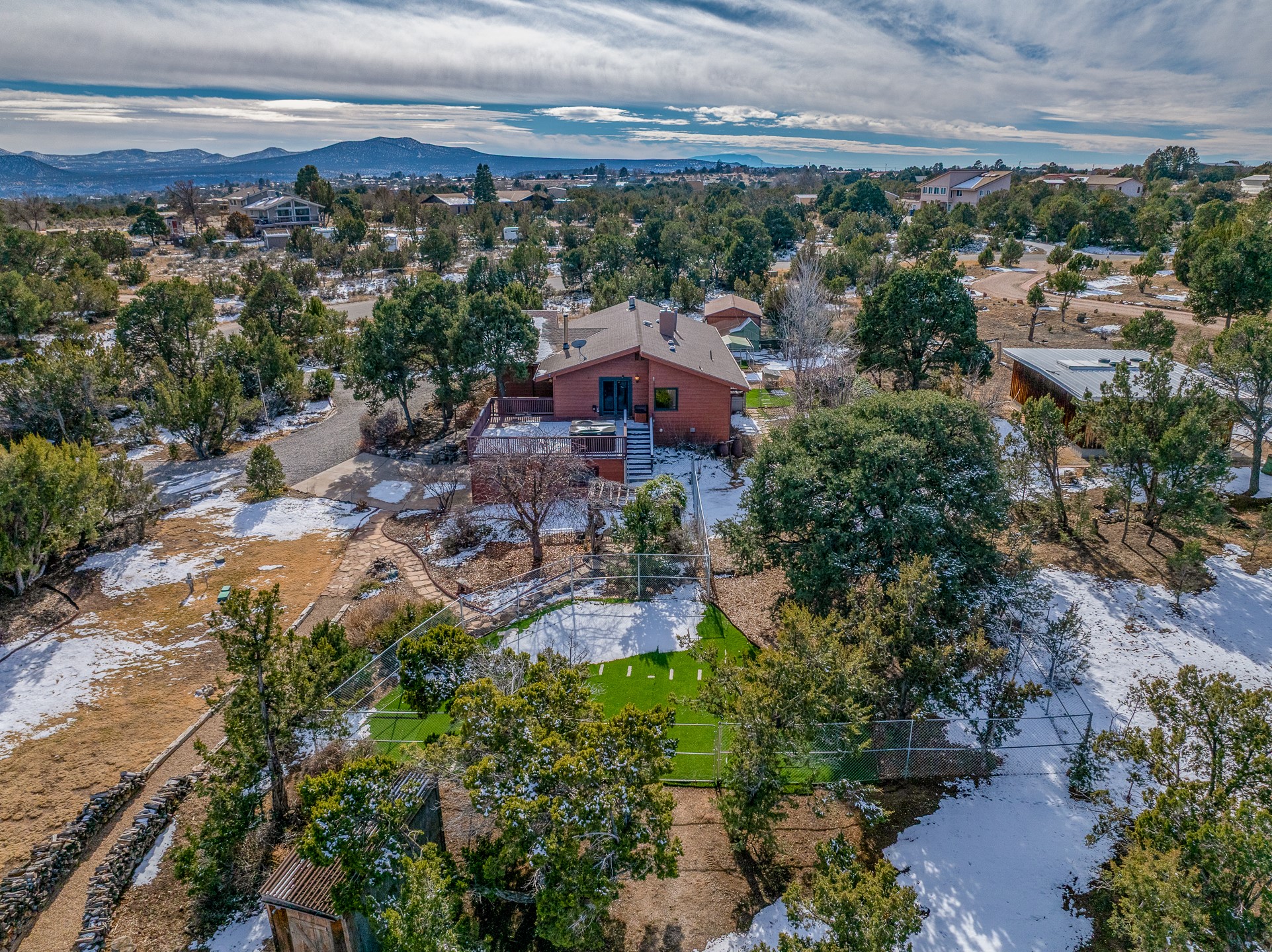 Beautifully upgraded 3,280-sq-ft home with a floor plan that provides two homes in one, set on 2+ acres, and showcasing breathtaking views of the Sangres. Welcome to 129 Piedra Loop!As you open the front door, you're immediately immersed in natural light pouring through overhead skylights, and greeted by a cheerful atrium/solarium just off the foyer. Upstairs, a loft with stunning interior views offers the perfect cozy reading retreat or flex space. Rich hardwood floors flow into the upper living area, where an ornate wood-burning fireplace anchors the open-concept layout. Adjacent to the living room is a spacious formal dining area that opens to a large Trex deck with hot tub--ideal for both summer entertaining and dark-sky stargazing.The chef's kitchen is both warm and functional, featuring a breakfast nook, custom oak cabinetry, granite countertops, a Wolf gas range, Sub-Zero refrigerator, and a corner sink positioned to take in the incredible view while preparing your gourmet meals.The south wing of the upper level is devoted to a generously-sized primary suite, thoughtfully divided by a partial wall and a stunning inset double fireplace encased in glass on three sides. The bedroom offers west- and south-facing windows to capture sunsets and mountain light, while the adjoining space--with east- and south-facing windows--makes an ideal office, gym, or private retreat. The updated ensuite bath includes a modern walk-in shower. A full guest bathroom on the main level provides added convenience for everyday living and entertaining.The lower level contains a kitchenette, laundry room, two bedrooms, and a full bathroom, providing you with multi-generational living options. Recessed lighting, stone tile, and radiant in-floor heating for quiet comfort extend throughout the lower level. A large open-concept living area features a stacked-stone hearth with wood-burning fireplace and the kitchenette, and a wine cellar is adjacent to the kitchenette. The south wing houses two generously sized bedrooms and a full bathroom with dual vanities. An extra-wide garage rounds out the lower level.Outside, enjoy privacy among mature trees and juniper, complemented by low-maintenance zero-scape landscaping. Two dog runs with synthetic turf keep pets comfortable and clean. The back of the property includes a spacious barn plus multiple outbuildings, parking areas for RVs and large trailers, and storage sheds--rounding out an exceptional package for those seeking space, views, and versatility. A carport with a Tesla charger is also available for your electric vehicles. Schedule your showing today before this one is gone!