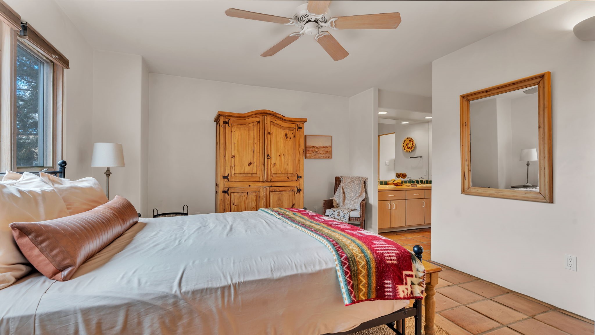 Experience an enchanting Southwestern retreat in one of Santa Fe's most exclusive neighborhoods.This stunning 3 bed, 3 bath home has soaring ceilings with exposed vigas and exquisite Saltillo tile floors, set within an open, light-filled space enhanced by expansive windows.The inviting living area centers around a kiva fireplace and flows into a chic dining area and state-of-the-art kitchen outfitted with stainless steel appliances. Perfect for rental opportunities with all furniture, household items, artwork, and dcor ensures a truly turnkey move-in experience. Adding to its appeal are a private gated entrance, lush mature landscaping, 2 car garage, all ideally located just minutes from shopping, dining, and downtown Santa Fe. -SELLER CREDIT OFFERED WTH WELL QUALIFIED OFFER