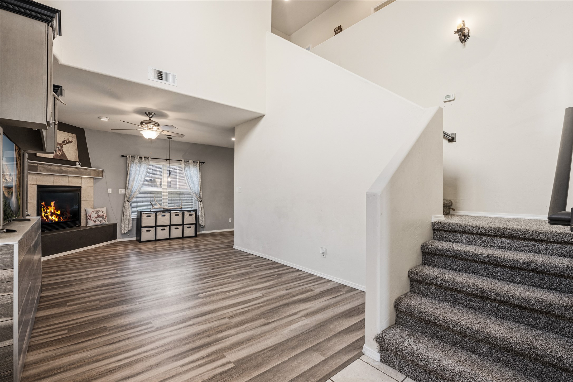 Light-filled home with soaring high ceilings, a bright kitchen with a convenient half bath off the kitchen and dining area, and an open layout made for easy living. Enjoy a private backyard, a built-in bunkbed in one of the guest bedrooms, a balcony off the master suite, and a spacious two-car garage. Minutes from trails, shops, and schools; this home combines charm, function, and comfort in every corner. Schedule your showing today!