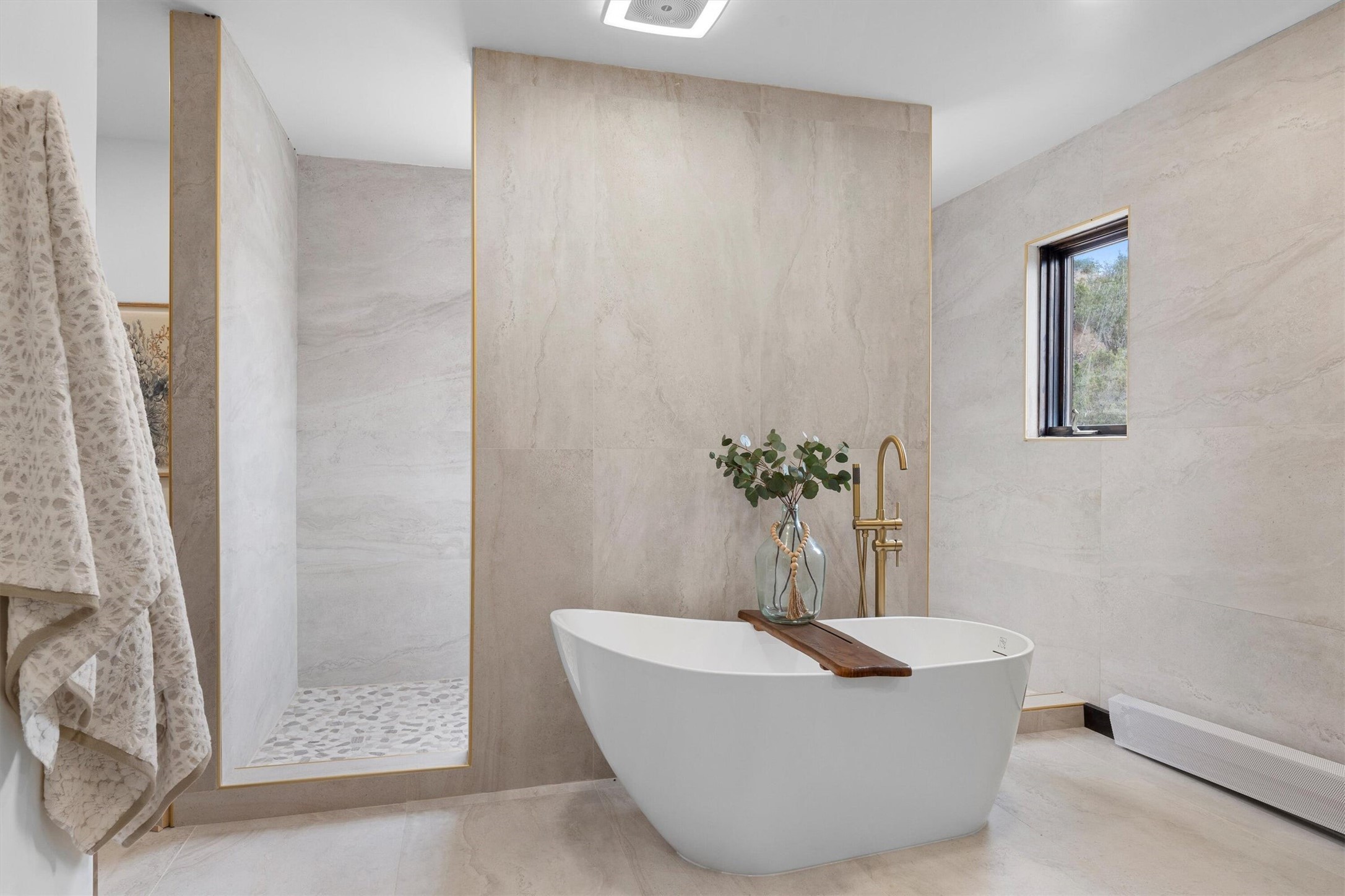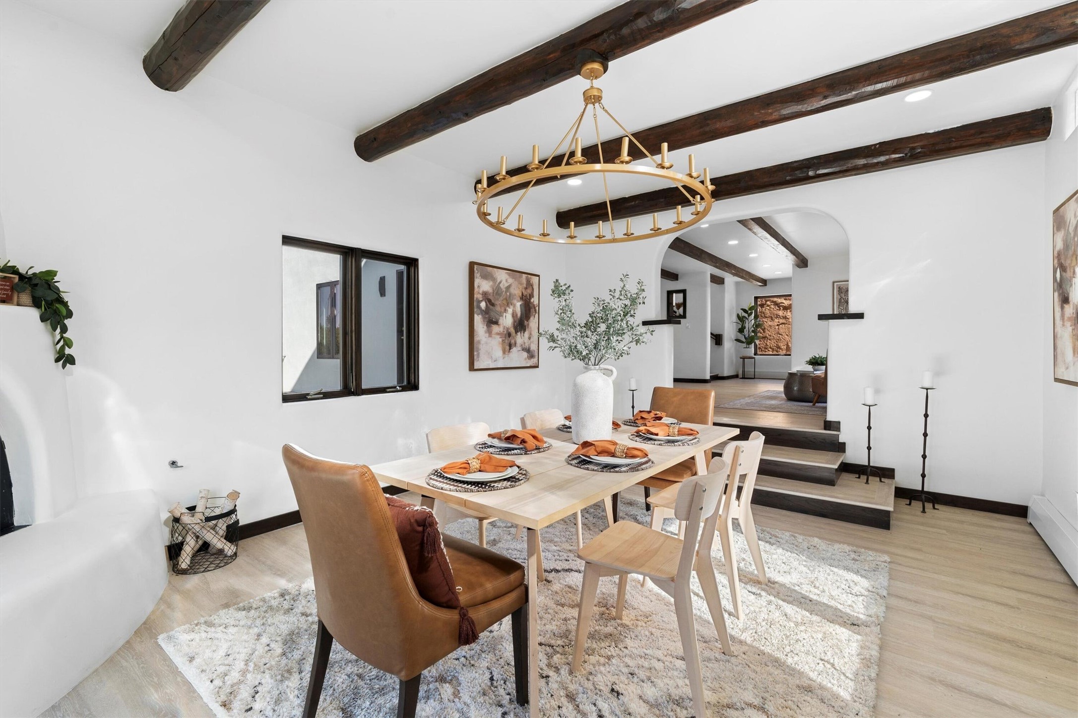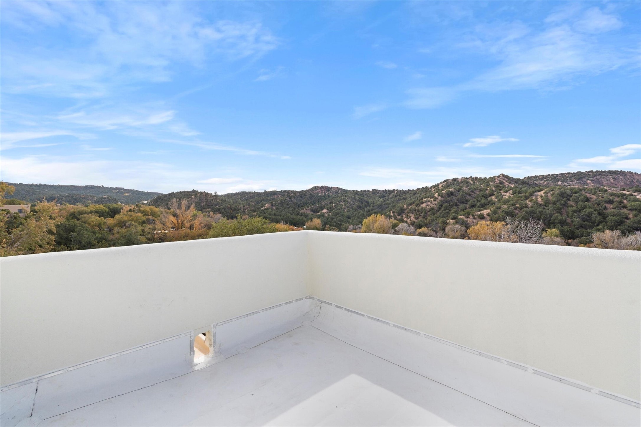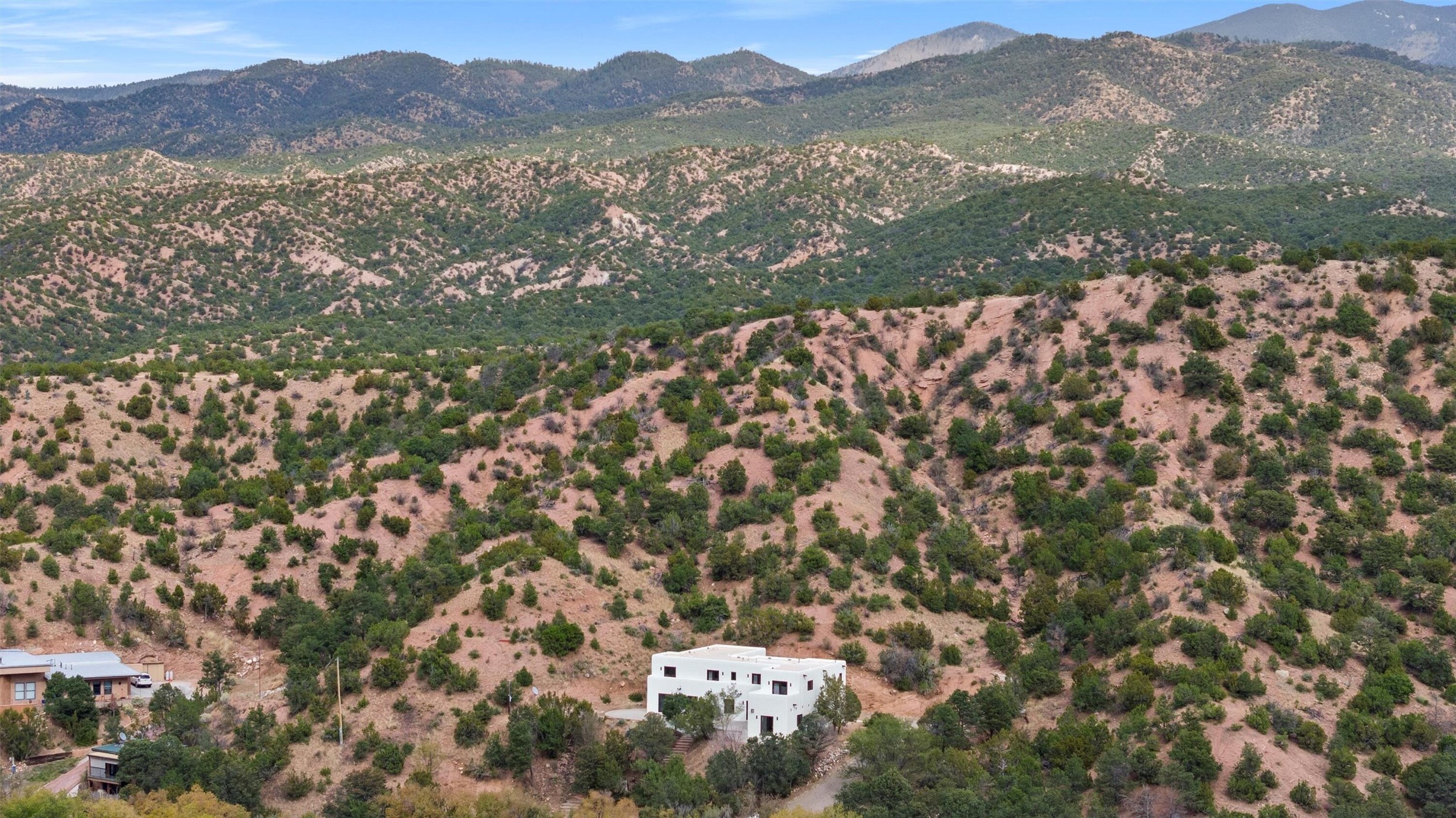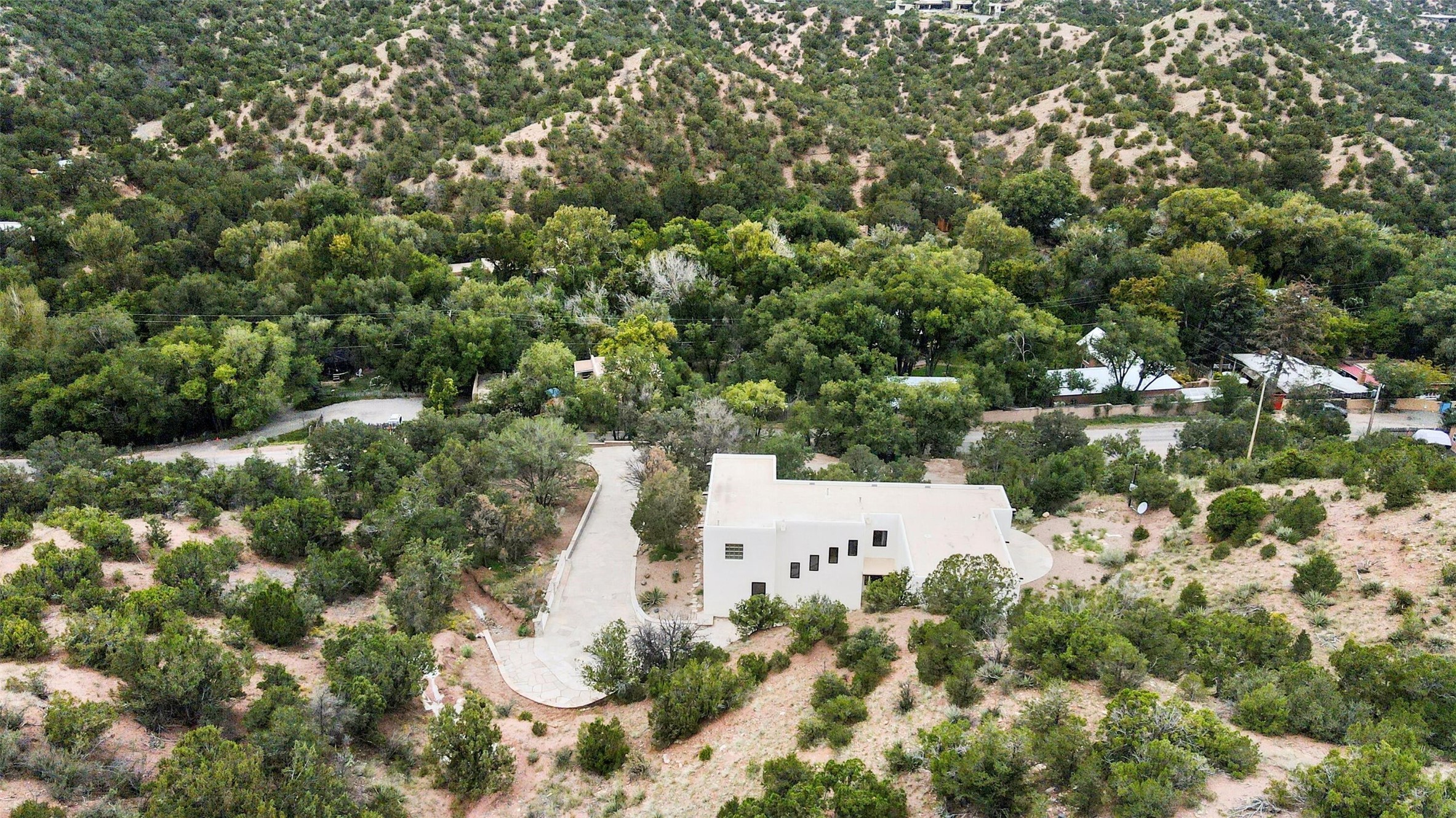 This updated Southwest-style home is waiting for you! Step inside to discover a stunning custom-built gourmet kitchen featuring a generous 8-foot island and elegant quartz countertops, complete with all-new stainless steel appliances. The home showcases beautiful vigas throughout and offers an open living space highlighted by a cozy Kiva gas fireplace, perfect for relaxation or as a flexible area tailored to your needs. French doors lead to an inviting open patio, where you can soak in breathtaking views of the Jemez Mountains. This residence boasts two primary suites, each with spacious walk-in closets, and a convenient stackable washer and dryer located in the main primary bedroom closet in addition to the large laundry room located on the first floor.Each full bathroom is designed with double vanities, custom knotty alder cabinets, and stylish LED-lit vanity mirrors. Enjoy the convenience of a laundry chute on the second floor and an attached two-car garage, with ample parking available for guests on both the upper and lower levels. Best feature is the new stone paved private driveway!Situated in a prime location, this home is adjacent to the renowned Bishops Lodge Resort, Spa, and Horse Stables, offering an unparalleled lifestyle of comfort and leisure. Geotechnical report available to your realtor.