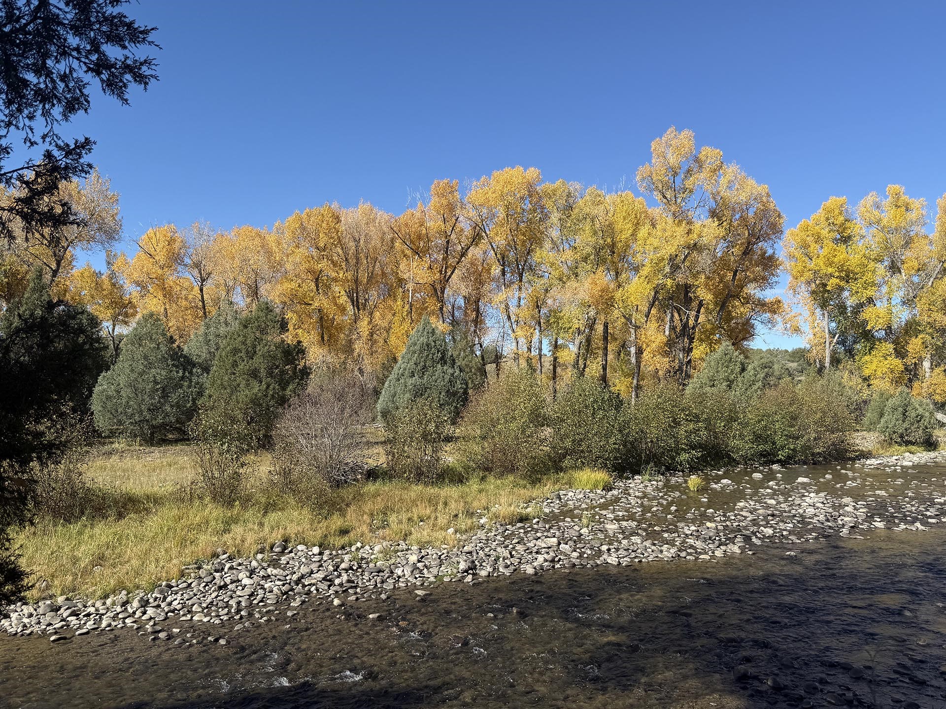 El Barranco Ranch on the Chama River consists of 440 gorgeous acres, blessed with 1.5 miles of both sides of the Chama River in Northern New Mexico. The El Barranco trio of fly fishing, agriculture, and big game hunting is difficult to match on one property. The ranch offers excellent fly fishing on the trout-rich Chama River, which winds through a beautiful setting of cottonwoods. Fly fishing is a prominent feature, but the opportunity to hunt elk or mule deer cannot be overlooked. The ranch borders the vast, undeveloped acreage of the Jicarilla Apache Nation, as well as the renowned elk and mule deer habitat that exists on those lands. Elk and mule deer routinely visit El Barranco's hayfields and river bottom to feed and water. The ranch is eligible for and has received multiple hunting vouchers. It is not unusual at El Barranco in the early fall to hunt elk or mule deer in the morning, fish for large brown and rainbow trout in the middle of the day, and then enjoy another evening hunt. There is more value than just the first-class recreational aspects of the ranch. Substantial senior water rights lead to great hay production and cattle grazing, which has been the primary focus of the current owners. Farm work can be done hands-on or by retaining existing hay and grazing leases. At a time when live water fishing properties and senior water rights are hard to find, a rare recreational and agricultural opportunity awaits the buyer of this gold medal property. Buyers seeking additional acreage should consider the 270 acre El Barranco East property, located across the highway.