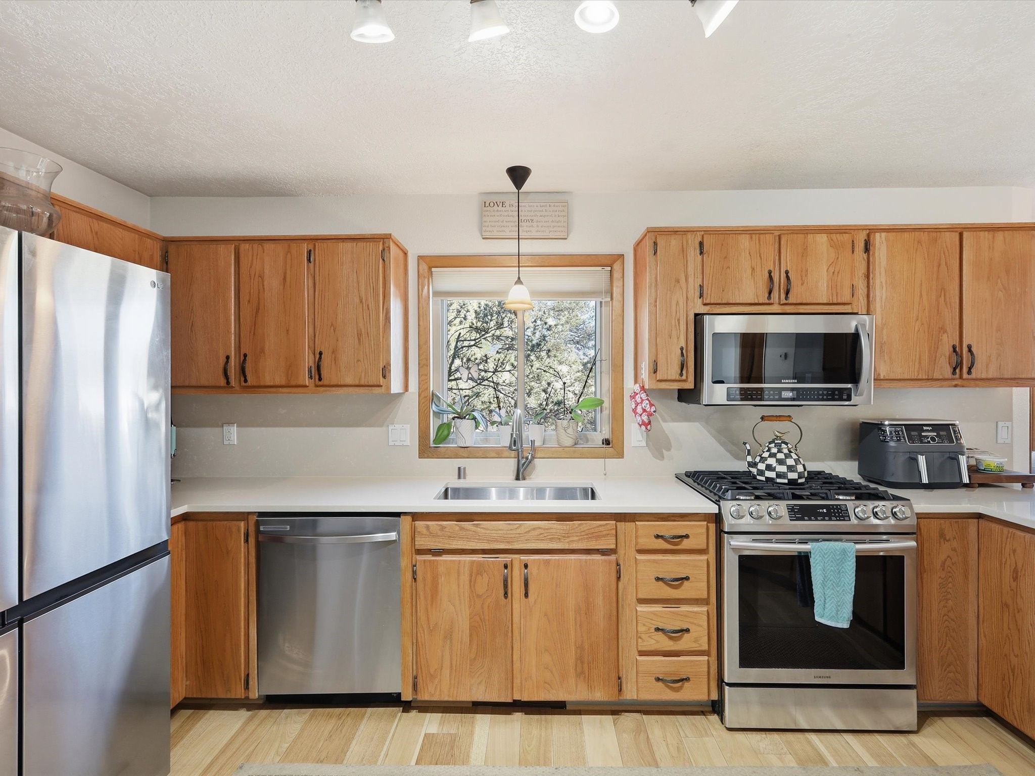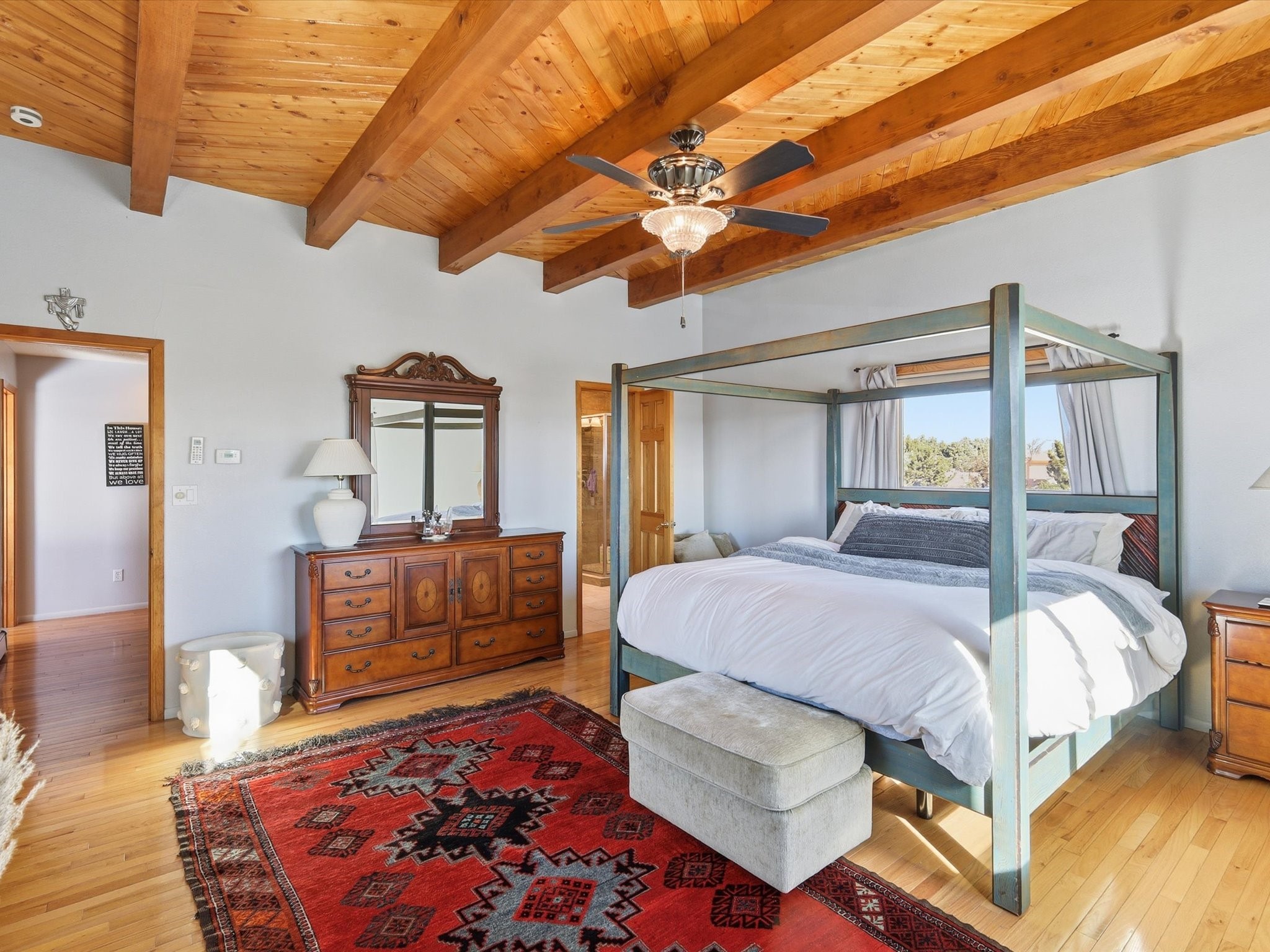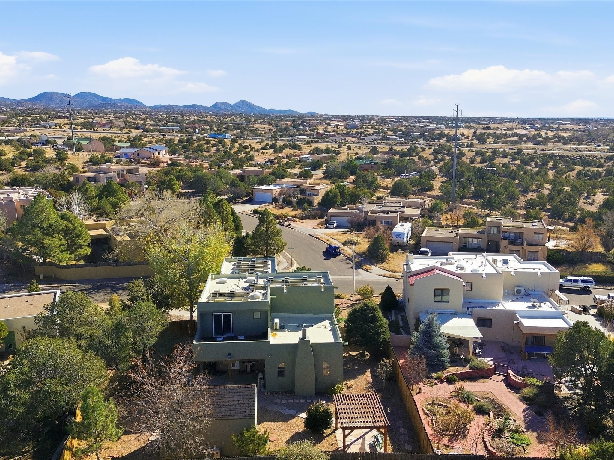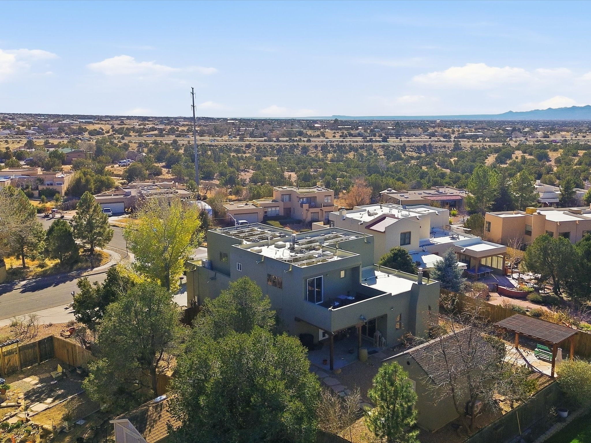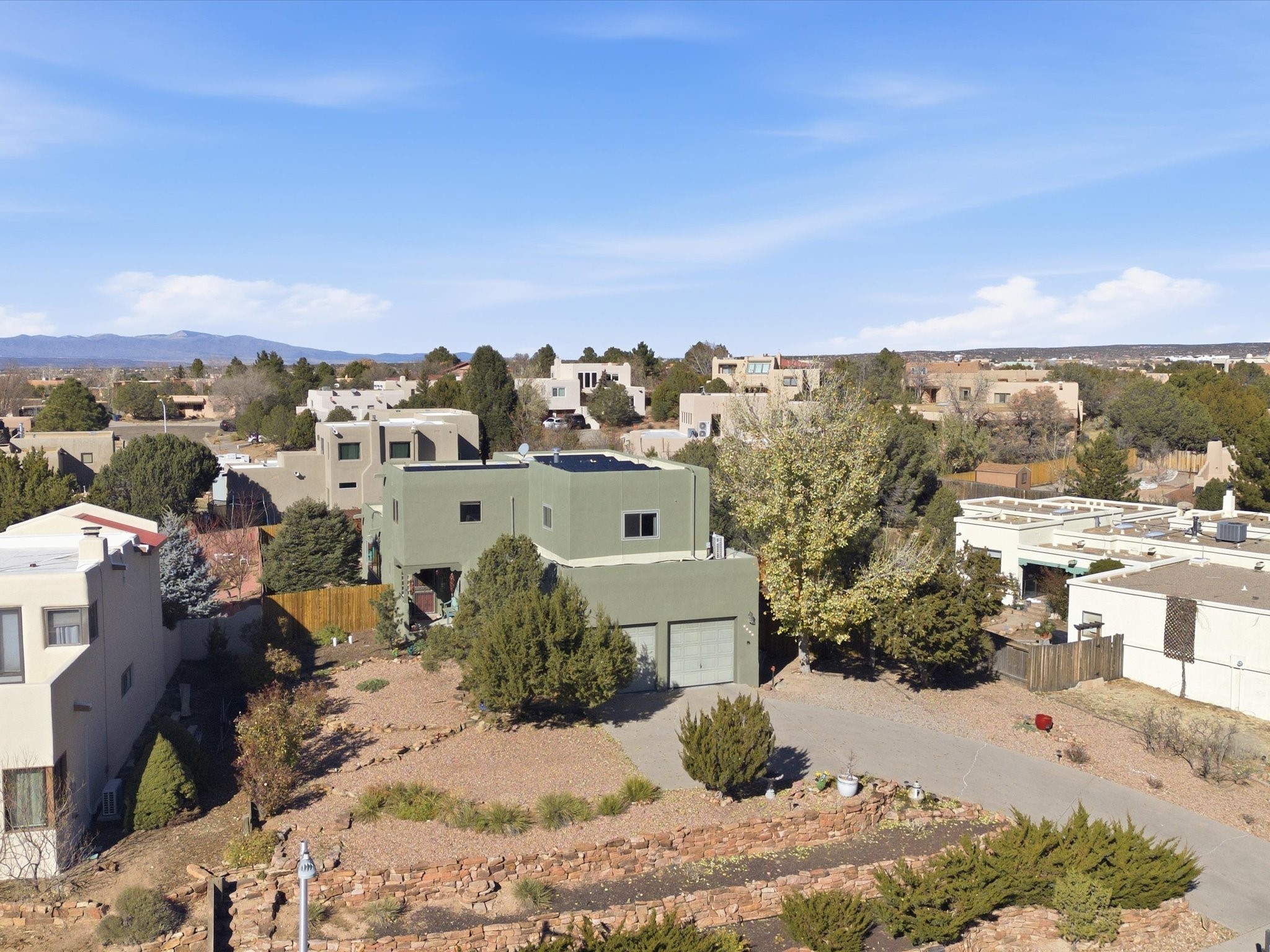 Renovated and truly move-in ready, this thoughtfully updated Santa Fe home offers peace of mind and great upgrades throughout the entire property. Improvements include a brand-new Gaco roof-sealant refinishing, a new stucco exterior, an upgraded heating and cooling system, solar panels, and a new water heater--providing both energy efficiency and long-term savings. Inside, the home features refreshed living spaces with refinished cabinetry, hardwood floors, quartz countertops, and fully remodeled bathrooms that blend modern comfort with classic Santa Fe charm. Every renovation was carefully completed to enhance functionality, durability, and timeless style. A detached studio adds exceptional versatility and value, complete with its own heating and cooling system--ideal for a home office, art studio, guest quarters, or flexible additional living space.