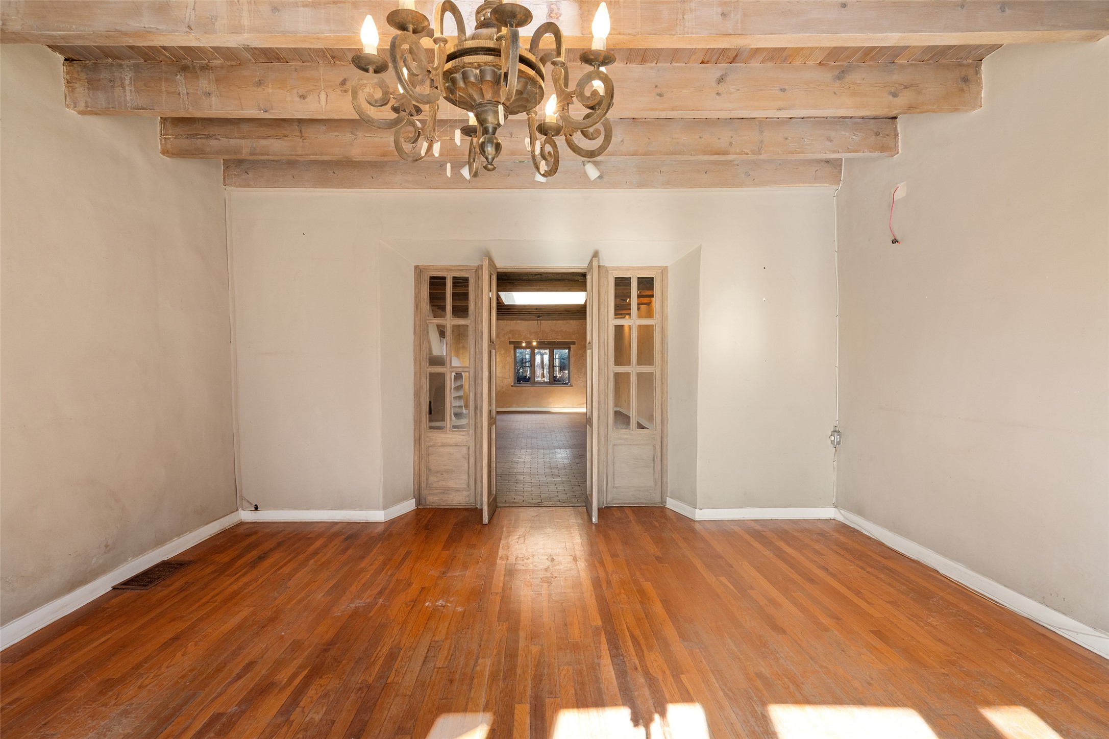 This historic Hacienda embodies the essence of old-world New Mexico charm and the deep, layered history of Galisteo, with the spirit of this venerable adobe reflecting the lore, legend, and mystery of the Galisteo Basin. Dating back to the 1800s, the property served as the headquarters of Don Jos Ortiz y Pino's sheep empire--a gathering place and general store--and later, beginning in the late 1970s, as the iconic Quartermill Farm - home, studio, and gallery of acclaimed potter and visual artist Priscilla Hoback, offering decades of creative nourishment to the local arts community.Nestled in the heart of Galisteo Village, still celebrated for its vibrant artistic culture, the long portal of the former gallery lines a central village road, while behind it sits the substantial adobe main house, rich with both intimate and grand spaces that speak to another era.The hacienda is composed of two wings--one with a single bedroom and bath, the other with three bedrooms and two baths--along with a large library, grand living room, formal dining room, several distinctive fireplaces, and an abundance of authentic architectural details. The generous inner courtyard is a place of quiet beauty with an ancient willow shading the koi pond. Together with the central kitchen and spacious living room, the layout suggests a home once designed for gatherings, celebrations, and meaningful connection. The grounds feature mature trees, fruit trees, flower gardens, and multiple outbuildings. This is a rare and significant property now ready for its next chapter. The home requires restoration and thoughtful renovation, offering a discerning buyer the opportunity to reimagine and revive an important piece of Galisteo history. For those with vision and appreciation for heritage, the potential is extraordinary--an invitation to become the next steward of this remarkable estate and to make your own mark on Galisteo's enduring story.