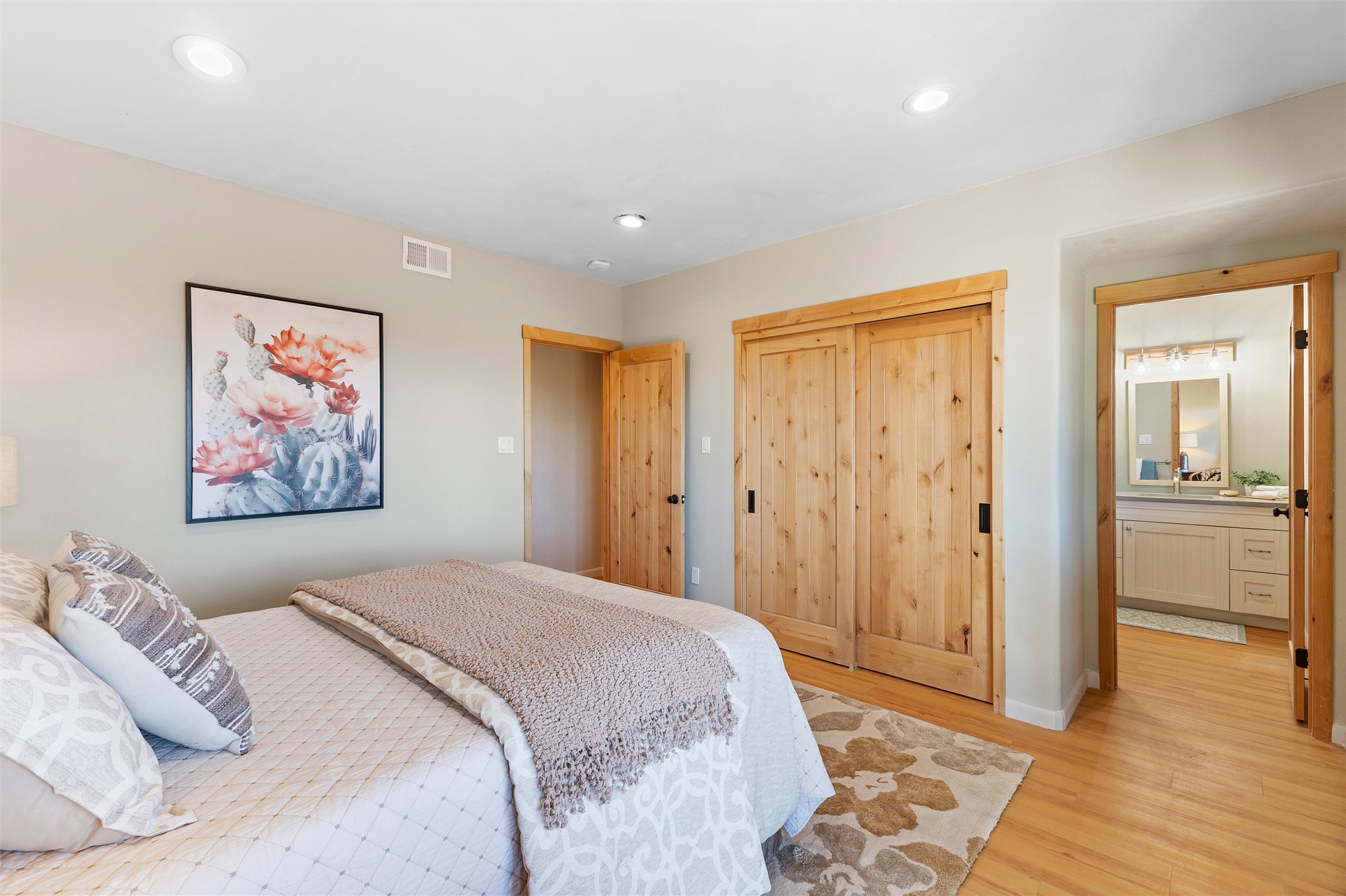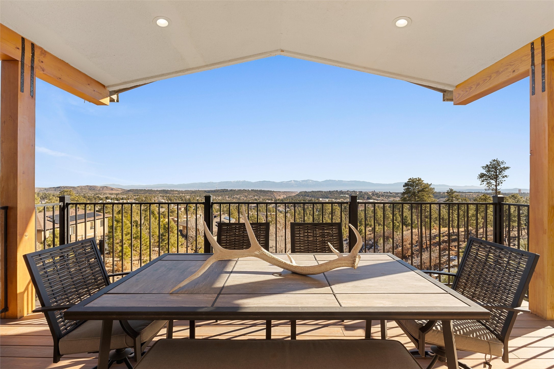 Tucked at the end of a quiet cul-de-sac in one of Los Alamos' most desirable neighborhoods, 1610 Solana is a truly rare offering. Set on over one acre (the largest lot in the neighborhood) and backing to National Forest and County land for unmatched privacy and a breathtaking natural backdrop. With arguably the best views in town, you'll enjoy sweeping vistas of the townsite, the Sangre de Cristo range, and more from multiple spaces throughout the home.Finished in 2022, this stunning residence offers over 3,500 square feet of modern, beautifully crafted living space and all of the contemporary amenities today's buyers expect. The primary suite is a showstopper with a private deck walkout, an enviable walk-in closet, and a spa-inspired ensuite highlighted by a copper soaking tub.Designed for comfortable main-floor living, the upper level includes two additional bedrooms, one with its own ensuite plus an additional full bath. Venetian plaster walls add softness and sophistication to the main living areas, while multiple gathering spaces provide room to relax or entertain with ease. Head outside to the wrap-around deck with a covered porch, the perfect place to take in the views in every season.The walkout basement expands your options with another spacious family room, a guest bedroom with attached bath, and a versatile bonus room ideal for an office or additional guest space, complete with a Murphy bed.An oversized two-car garage offers generous storage and flexible space for a home gym or workshop, and the large laundry room with attached mudroom just off the garage keeps daily life organized and effortless.New, modern, spacious, and surrounded by nature, 1610 Solana delivers the Los Alamos lifestyle at its finest.