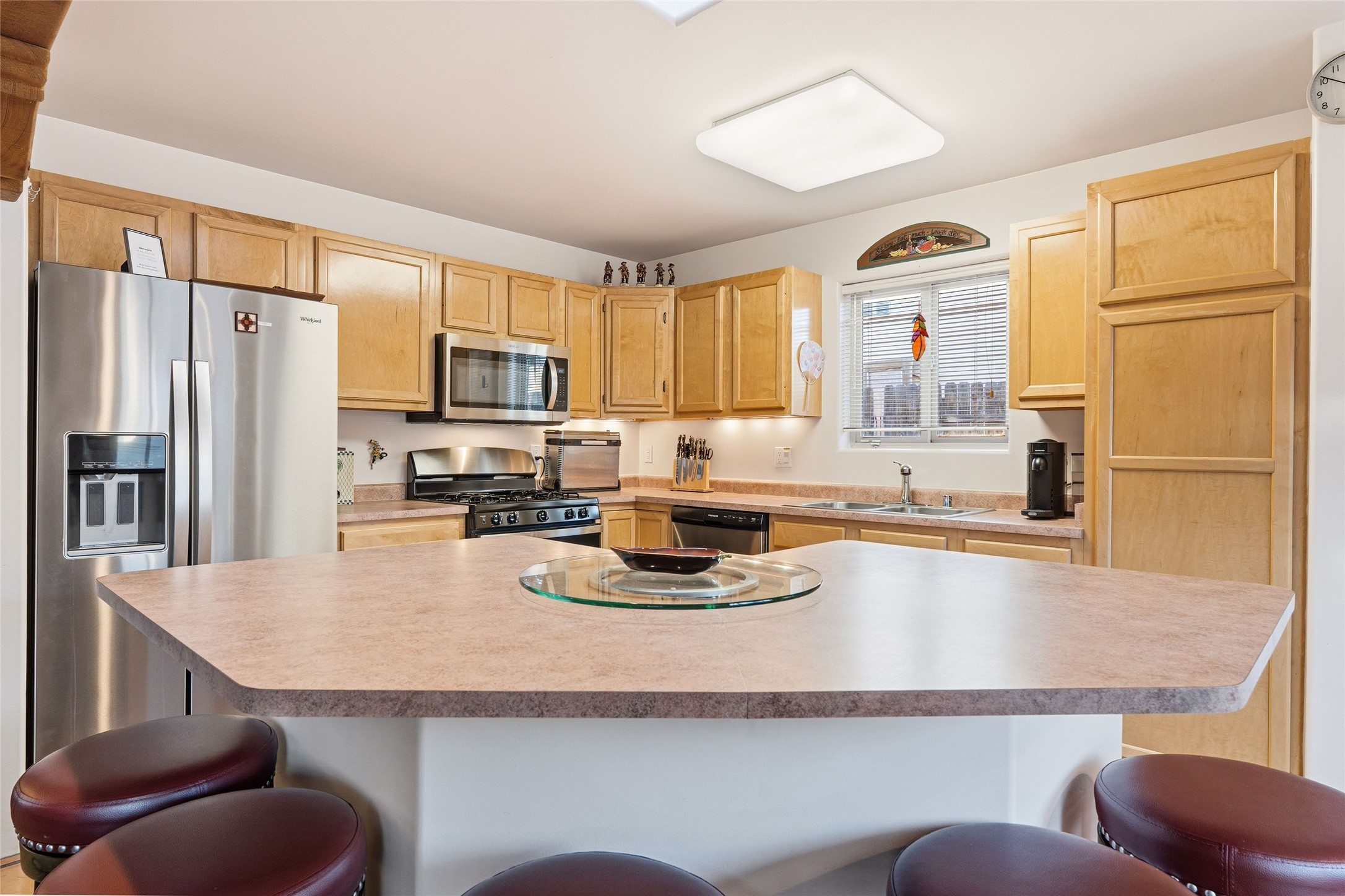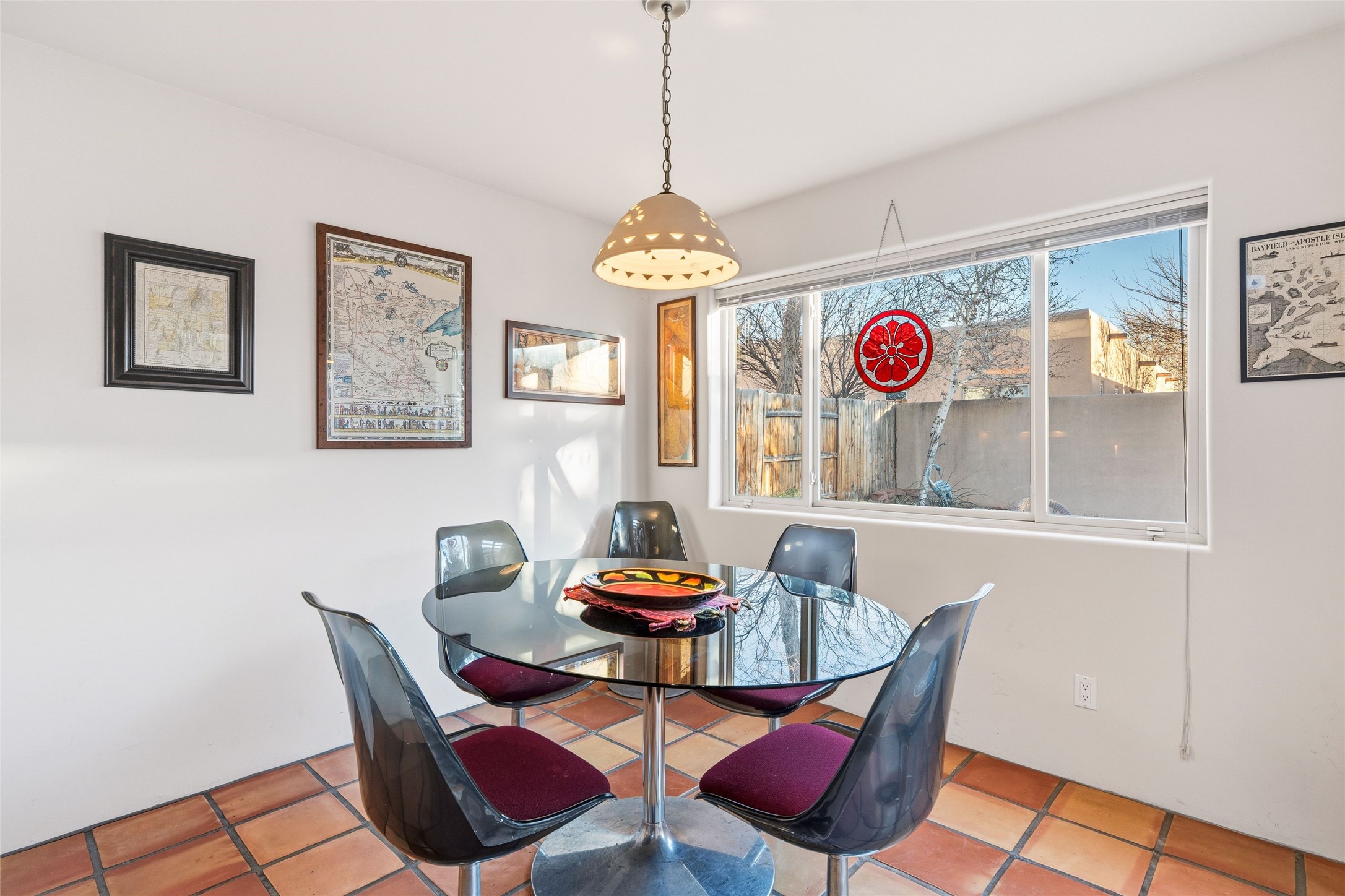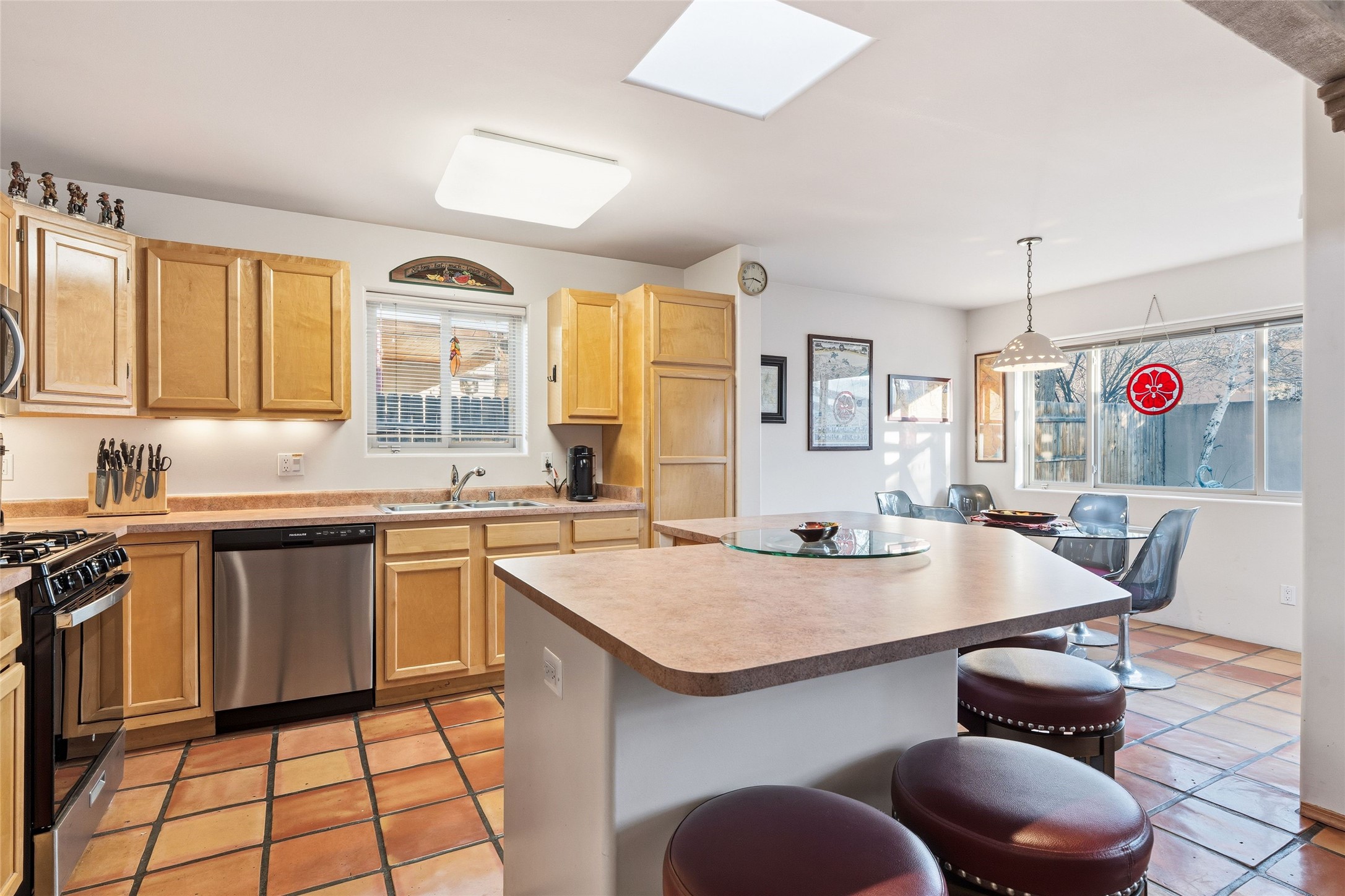 Desirable Pueblos del Sol Home in the Coveted Pion School Zone. This inviting 1,386 sq. Foot, 3-bedroom, 2-bath residence has a new roof (2023) and driveway (2025). Thoughtfully designed for comfortable living, the home features a welcoming living area with high ceiling and beams, anchored by a classic kiva fireplace--perfect for cozy evenings. The thoughtfully laid out kitchen flows around a large center island and into a well-lit dining space that opens up to the back garden. Enjoy recently updated flooring throughout the main living spaces. The primary suite offers an updated bath and direct access to the back portal, creating a seamless indoor-outdoor connection and a peaceful retreat. Step outside to enjoy the generously sized fully-enclosed backyard, ideal for entertaining, gardening, pets, or simply relaxing under New Mexico skies. With its prime location, functional layout, and expansive outdoor space, this home presents a wonderful opportunity in one of Santa Fe's most popular neighborhoods.