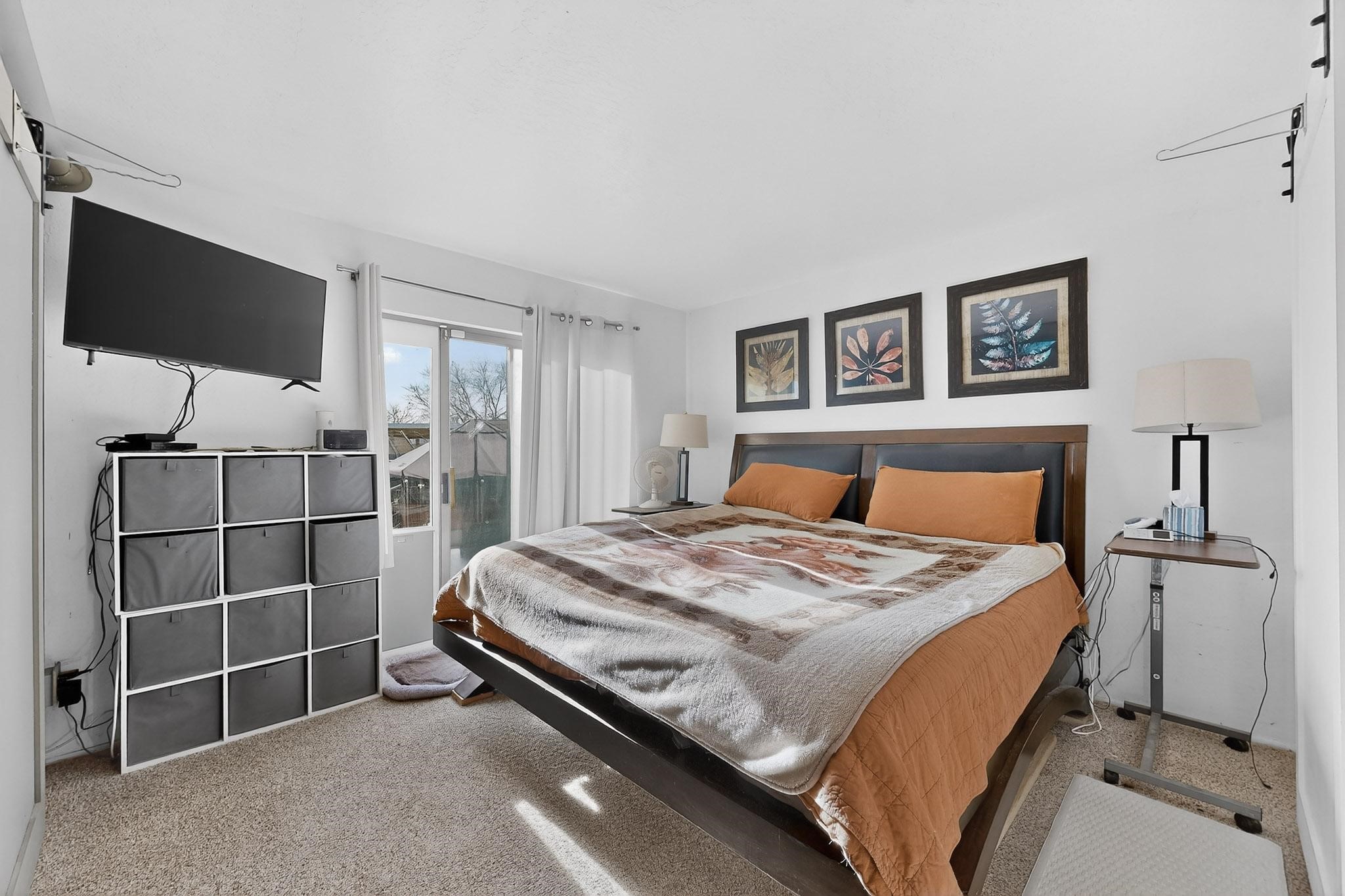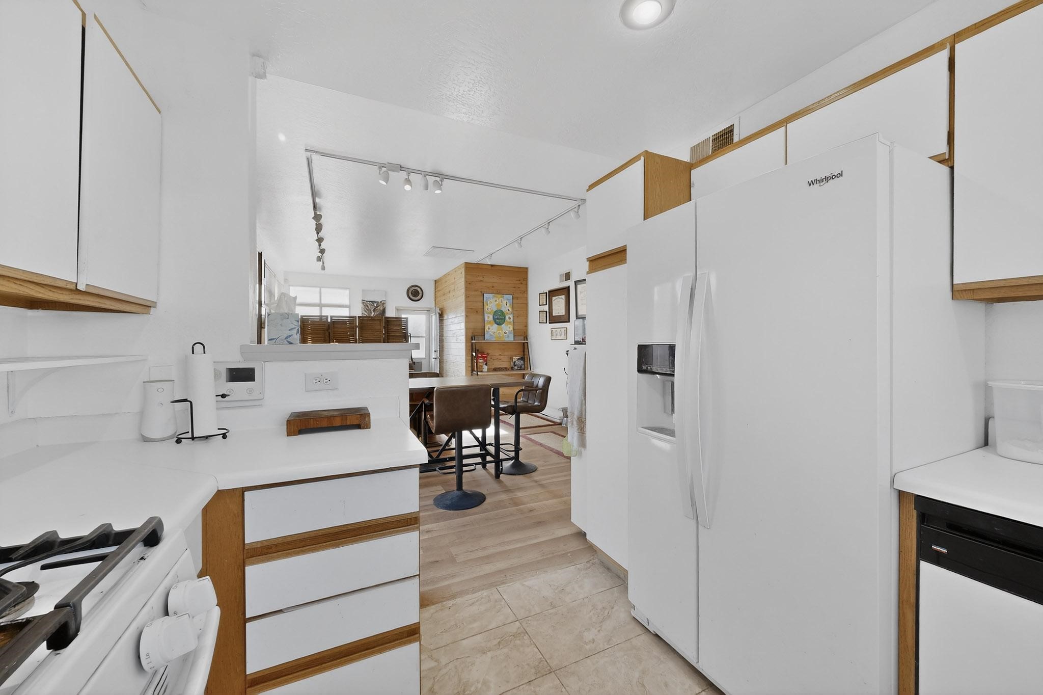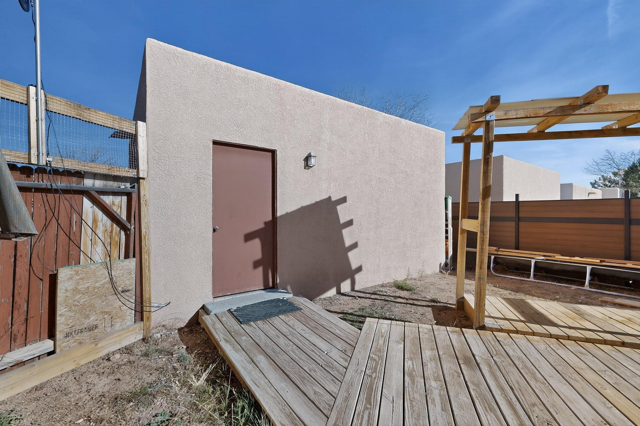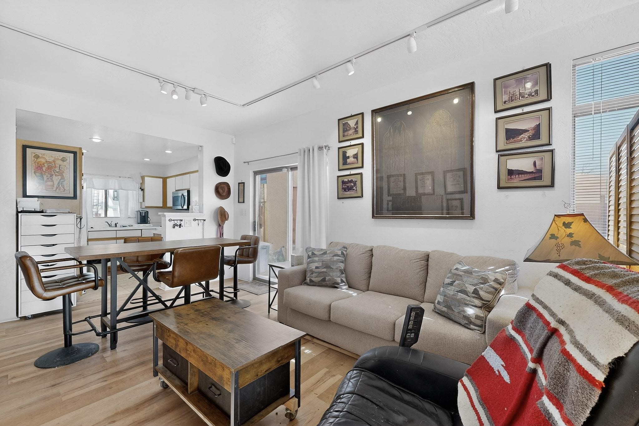 This two bedroom, two bathroom, all one level home with a two car detached garage is the Perfect and Best Value in Santa Fe! The open concept living and dining area is flooded with natural light and has easy to care for flooring. The dining area offers patio access to the east yard and a custom trellis awaiting a porch swing. Quick access to a separated backyard allows for pets to enjoy their own space. Lots of great outdoor areas awaiting your ideas. The primary suite has a custom closet with a sliding barn door, private access to the backyard with a deck and a primary bathroom with a sliding barn door as well, to allow for maximum use of the space. Bedroom #2 sits at the entry of the home with a cul-de-sac view and access to the guest's full bathroom. The stackable washer and dryer save space and are tucked away from view. Lots of great perks, including the refrigerated A/C that was added and the storage shed in the backyard that will convey. The Seller is offering a $3,000 credit towards a carpet allowance and a $2,000 paint allowance with a reasonable and accepted offer.
