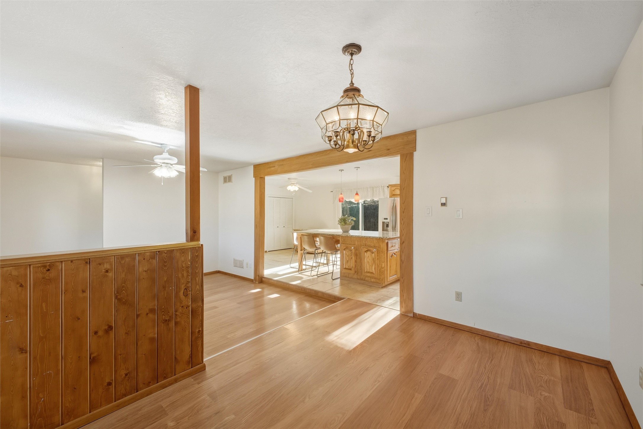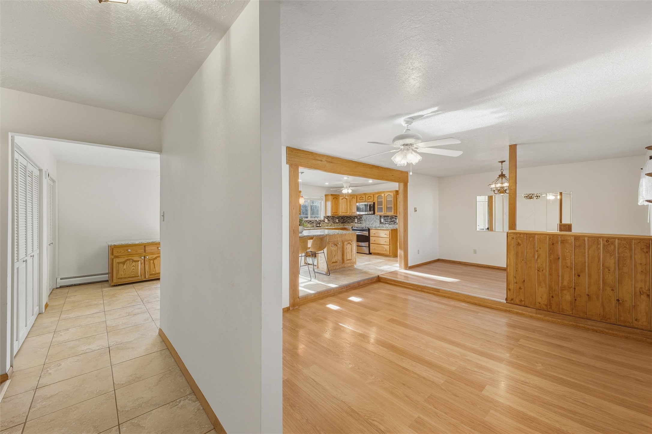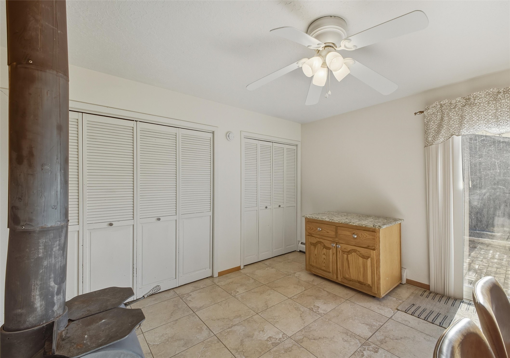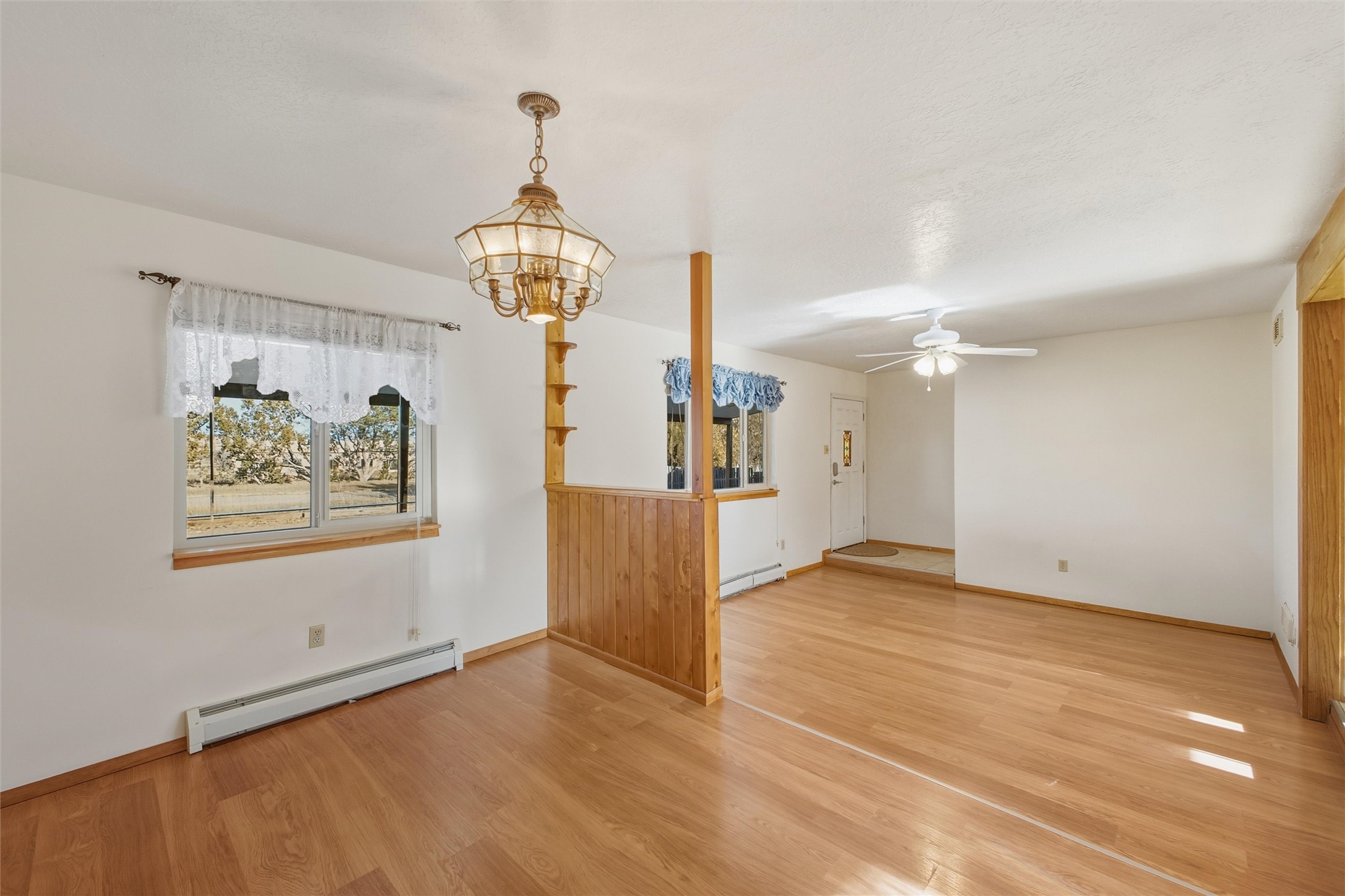 Nestled on over an acre of land with breathtaking mountain views, this updated and well-maintained home offers the perfect blend of modern convenience and rustic charm. From its spacious, light-filled interiors to its serene outdoor setting, this property provides the ideal environment for both relaxation and creativity. With a short commute to Los Alamos and Santa Fe, you can enjoy the peace and privacy of rural living without sacrificing convenience. The heart of the home is the expansive, modern kitchen. Featuring luxurious granite countertops, a large central island with extra storage, and stainless steel appliances, this kitchen is designed for both function and style. Whether you're preparing meals for the family or hosting friends, the layout is perfect for food prep and entertaining, with ample room to gather around the island. A charming wood burning stove located in the kitchen adds warmth and ambiance, creating a cozy focal point for winter mornings and evenings spent cooking and connecting. The kitchen flows seamlessly into the main living areas, offering an open and comfortable layout. The property offers an incredible amount of space for gardening, hobbies, or projects. Mature fruit trees add charm and productivity to the landscape, while the insulated shed provides excellent space for storage or can easily be used as a workshop. The home features an updated bathroom with modern fixtures and stylish finishes, offering both comfort and functionality. This is a rare opportunity to own a well-cared-for home with space to grow, stunning views, and easy access to nearby communities. A perfect balance of comfort, functionality, and location.