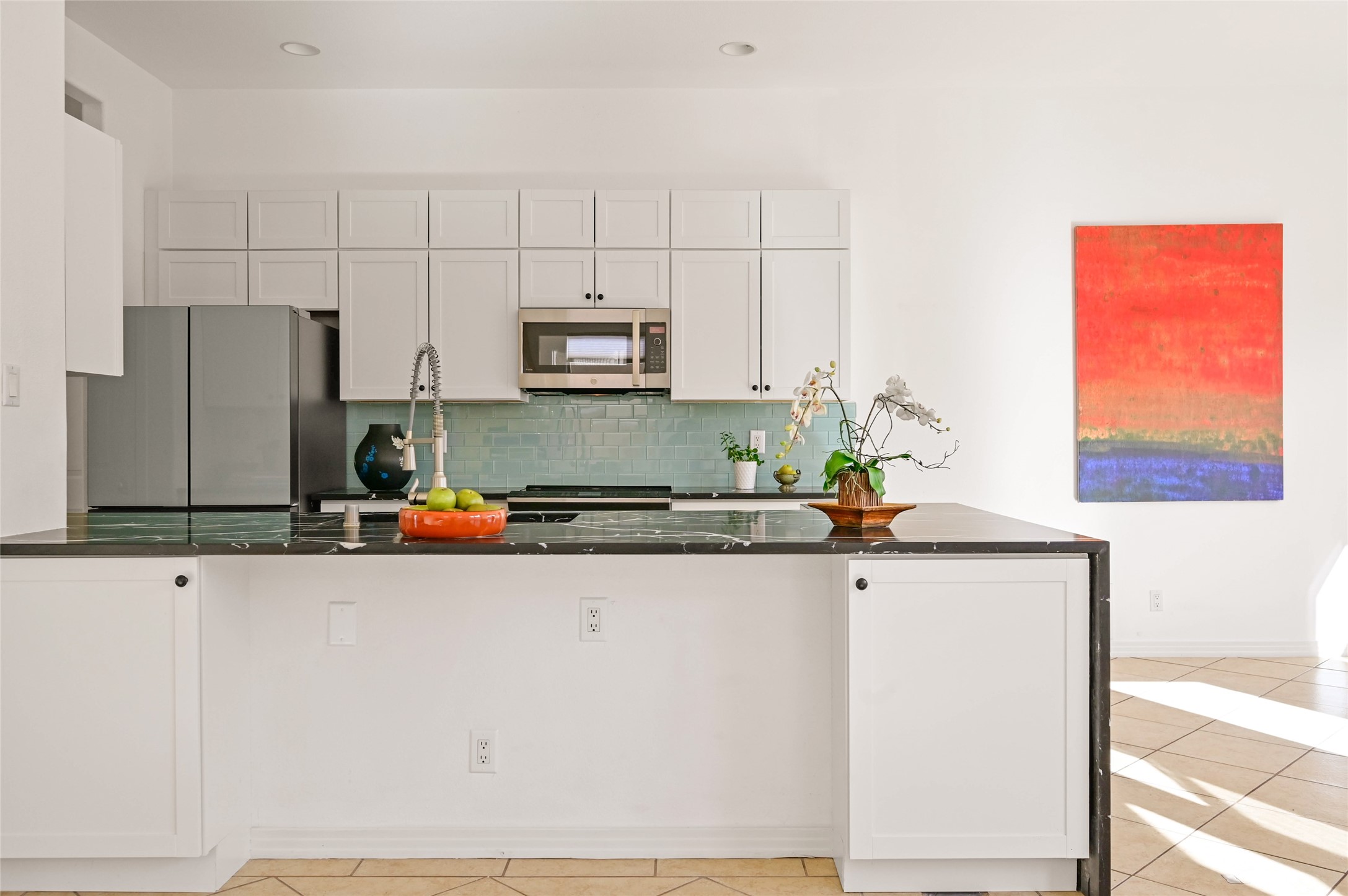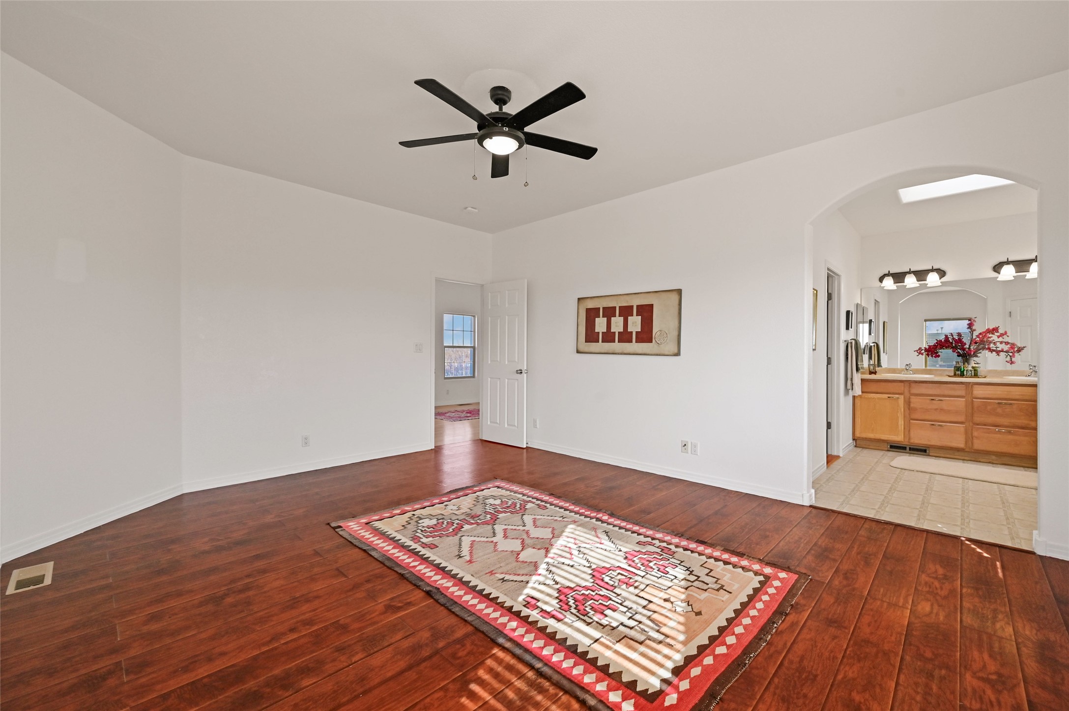 Light and bright two-story home featuring three upstairs bedrooms, two baths, and a versatile bonus room ideal for a home office, second living area, or playroom. Enjoy views from all bedrooms and the bonus room, complemented by attractive wood-look flooring throughout the upper level.The beautifully updated kitchen (2024) showcases newer cabinetry, quartz countertops, stainless steel appliances, and an induction stove any home chef will appreciate. The main level also offers a powder bath, a large laundry room, and access to the two-car garage. Additional upgrades include newer central air conditioning, heating system, and water heater.The spacious primary suite features a large walk-in closet and a well-appointed bathroom with double vanity sinks, a soaking tub, separate shower, and enclosed water closet. The open floor plan, anchored by a charming fireplace, creates an inviting space for relaxing or entertaining. Outdoors, enjoy a fully fenced yard, perfect for gatherings and four-legged friends.Built by BT Homes, this 2117 sqft property has no HOA and is conveniently located near shopping, restaurants, and easy access to 599 and I-25, making commuting to Albuquerque, Historic Downtown Santa Fe, or Los Alamos a breeze.