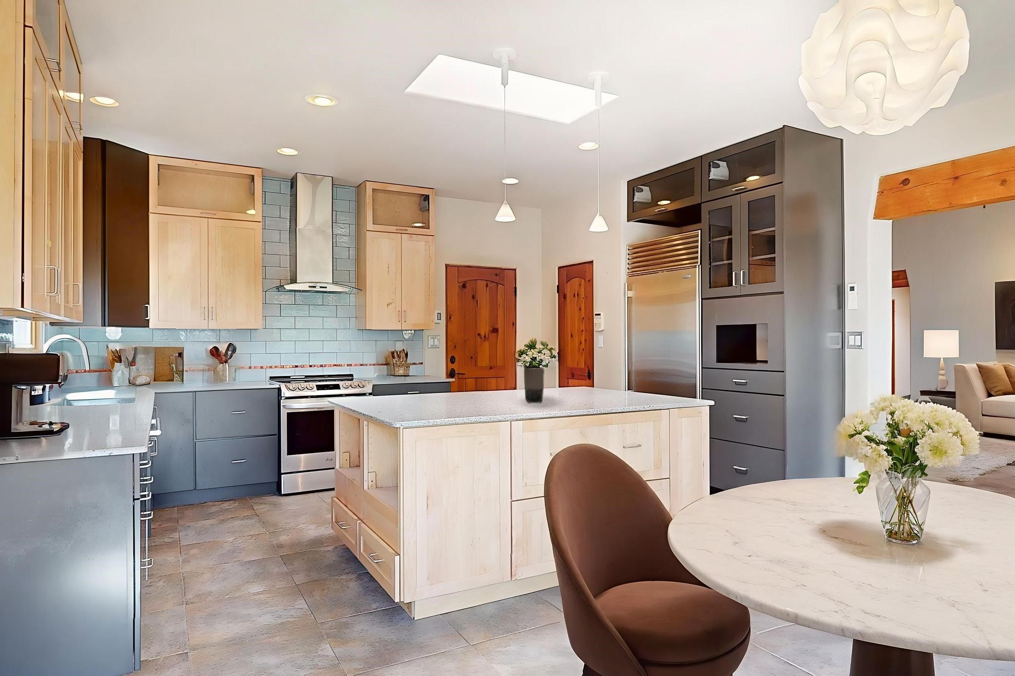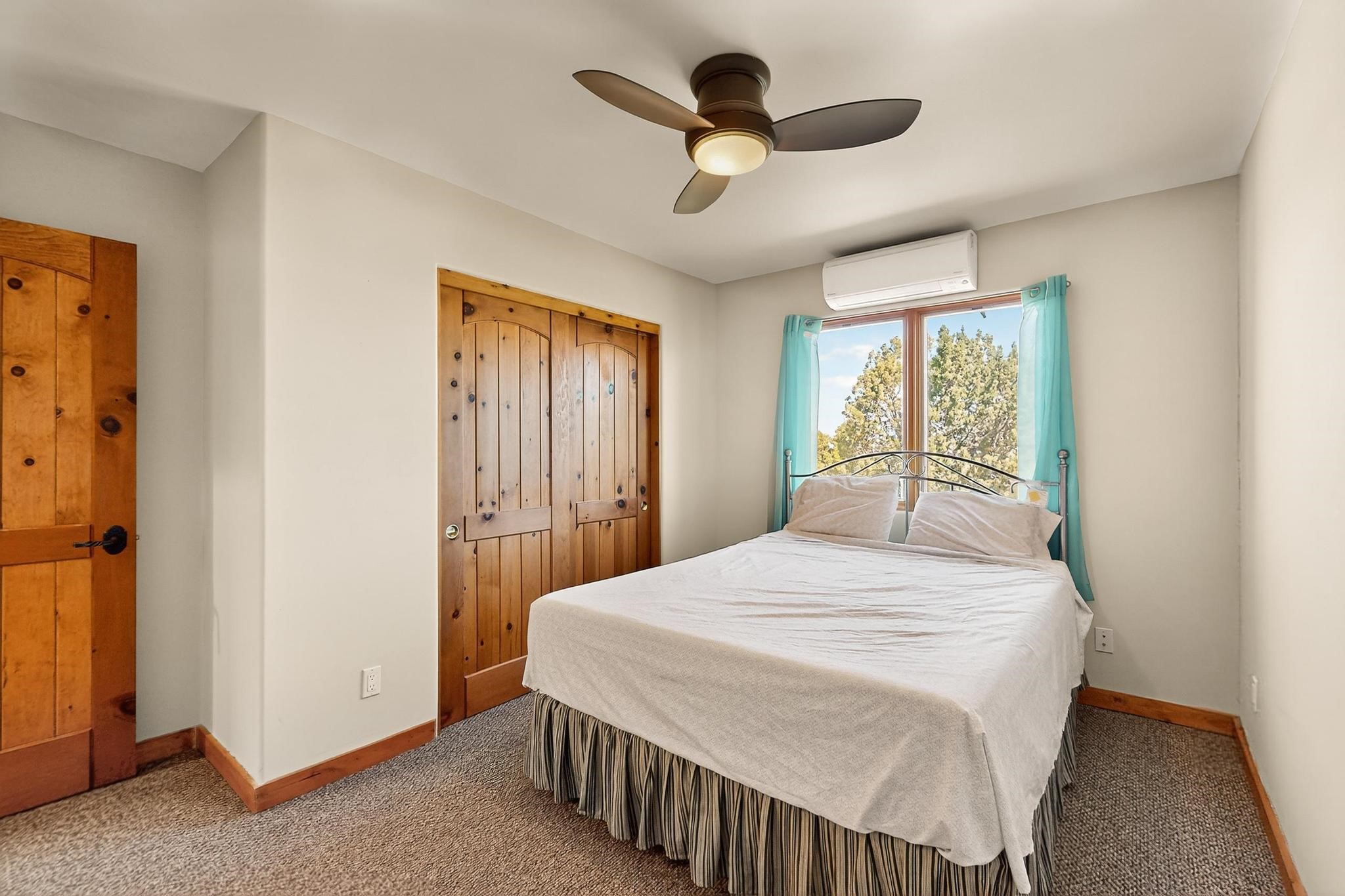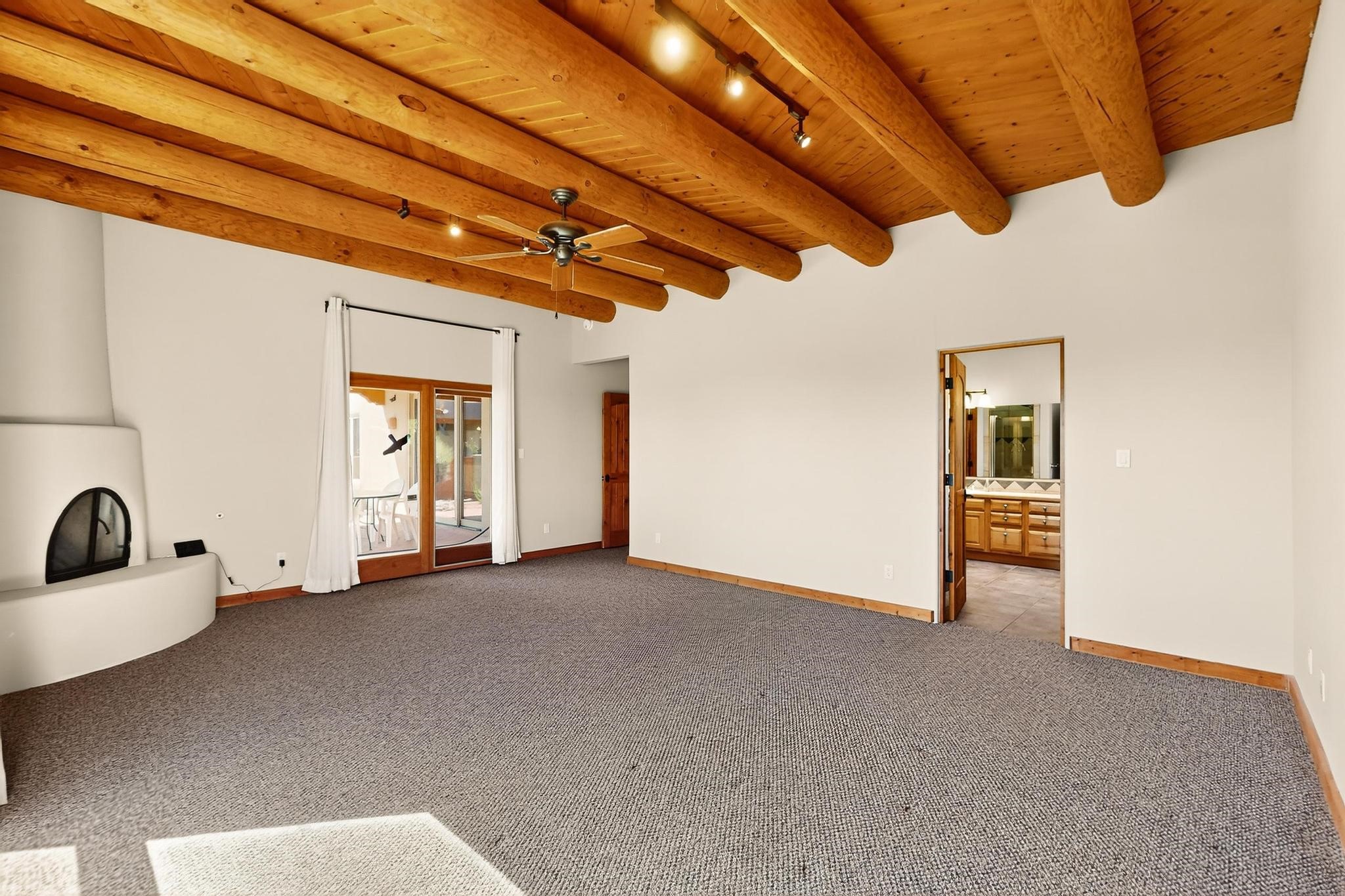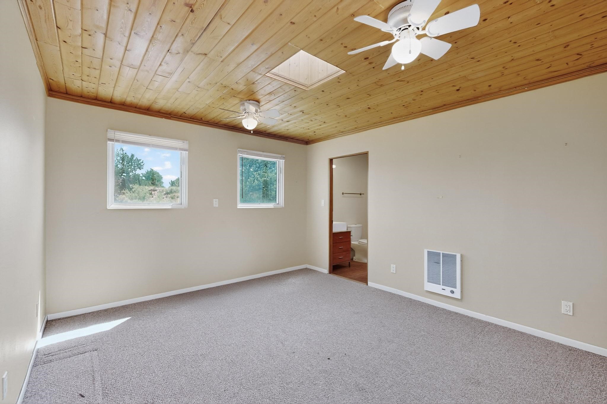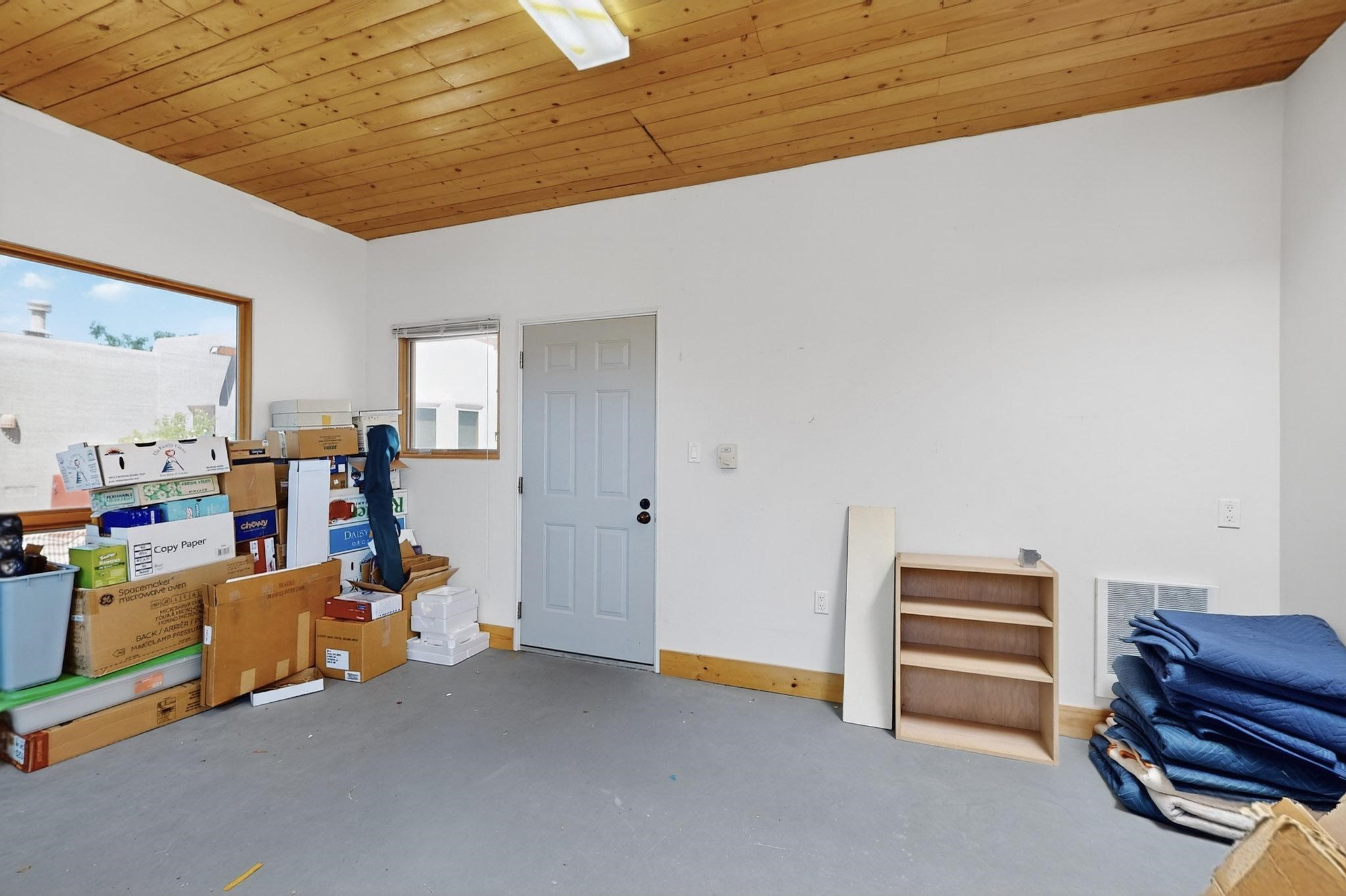 Priced to Sell! Potential multigenerational living. Expansive contemporary pueblo, split bedroom open plan design with high ceilings throughout. The main home includes a formal dining area, spacious great room with kiva fireplace, a large primary suite with kiva fireplace, large walk in closet and spa-like bathroom. Excellent separation from the two guest bedrooms and bath, plus a den/study. The kitchen has been remodeled including an induction range top, custom lighted cabinetry and 2 pantries. The radiant heating is supplemented by 5 mini splits to keep a comfortable temperature summer and winter. There is a large heated storage room/workroom for hobbies and toys plus an oversized 2 car garage with extra storage. Behind the home sits a detached 478 sq.ft. heated 2 room studio/guest with a 3/4 bathroom for extra guests/office or studio with a separate septic system. A lovely walled garden with a 3rd kiva fireplace for enjoyment plus a large portal for morning or evening outside entertainment. Enjoy the historic railway and rail trail bordering the back of your land. Plenty of guest parking with a paved driveway and easy access to Eldorado amenities, local shopping only minutes into Santa Fe.